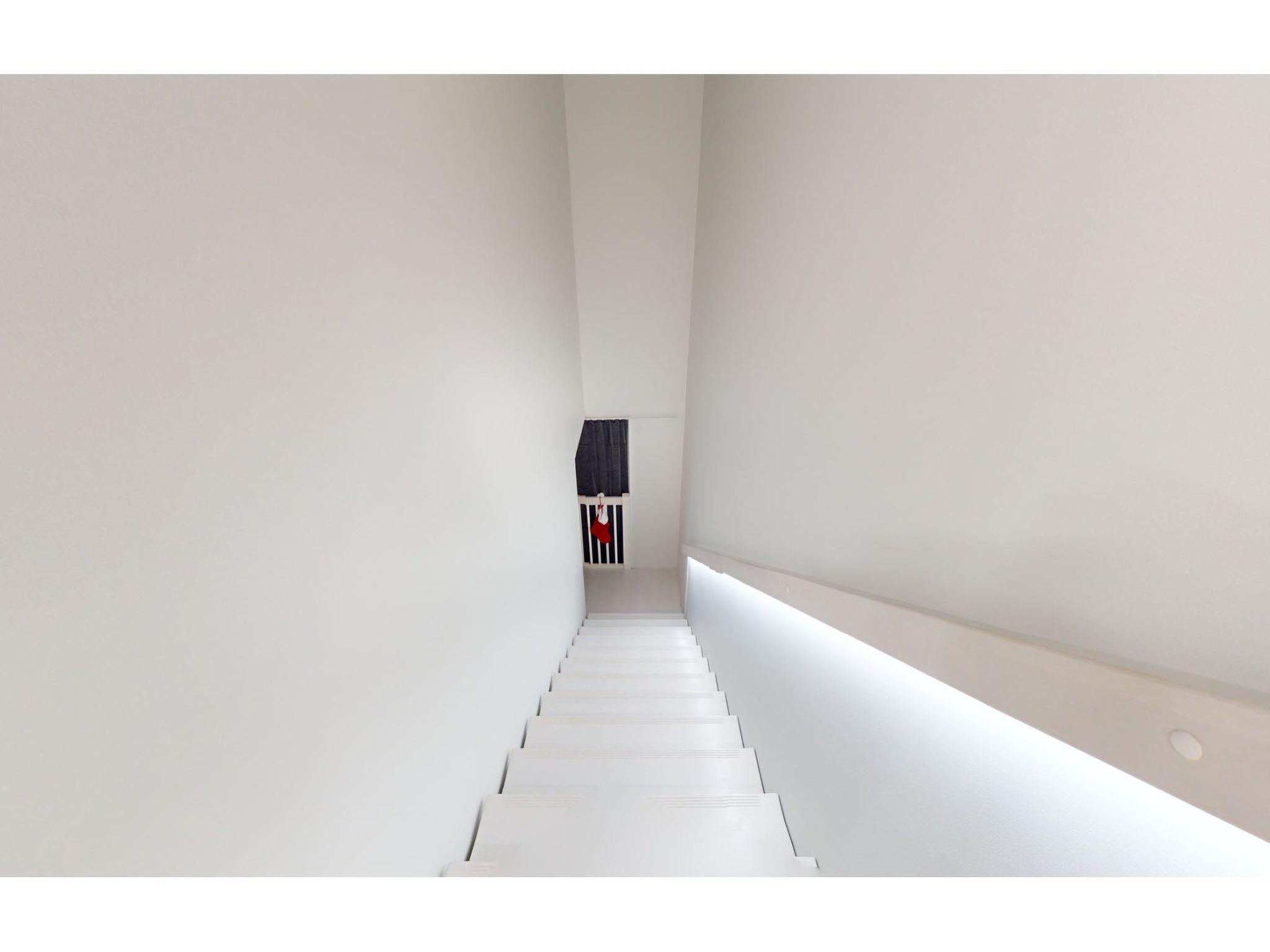 Upon entering into the innovative apartment building, you are greeted by an open living room/kitchen inviting to relax and enjoy the scenery. The first floor also includes a bedroom, sauna, and bathroom – a perfect place for unwinding. The large glazed balcony provides a space to enjoy the fresh air and stunning views throughout the year.