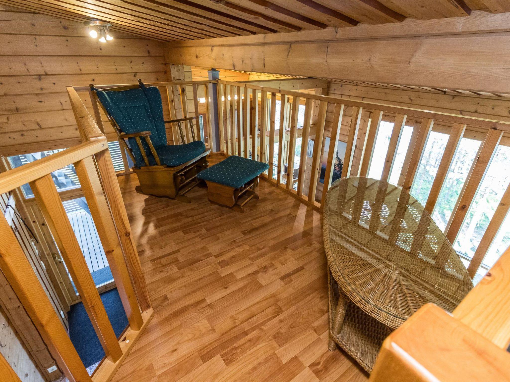 This holiday destination offers both space and atmosphere. On the middle floor, you'll find two bedrooms - one with a comfortable double bed and the other with two separate beds. Additionally, the spacious loft features four beds, and the basement includes a pull-out sofa. The cabin accommodates up to eight people.