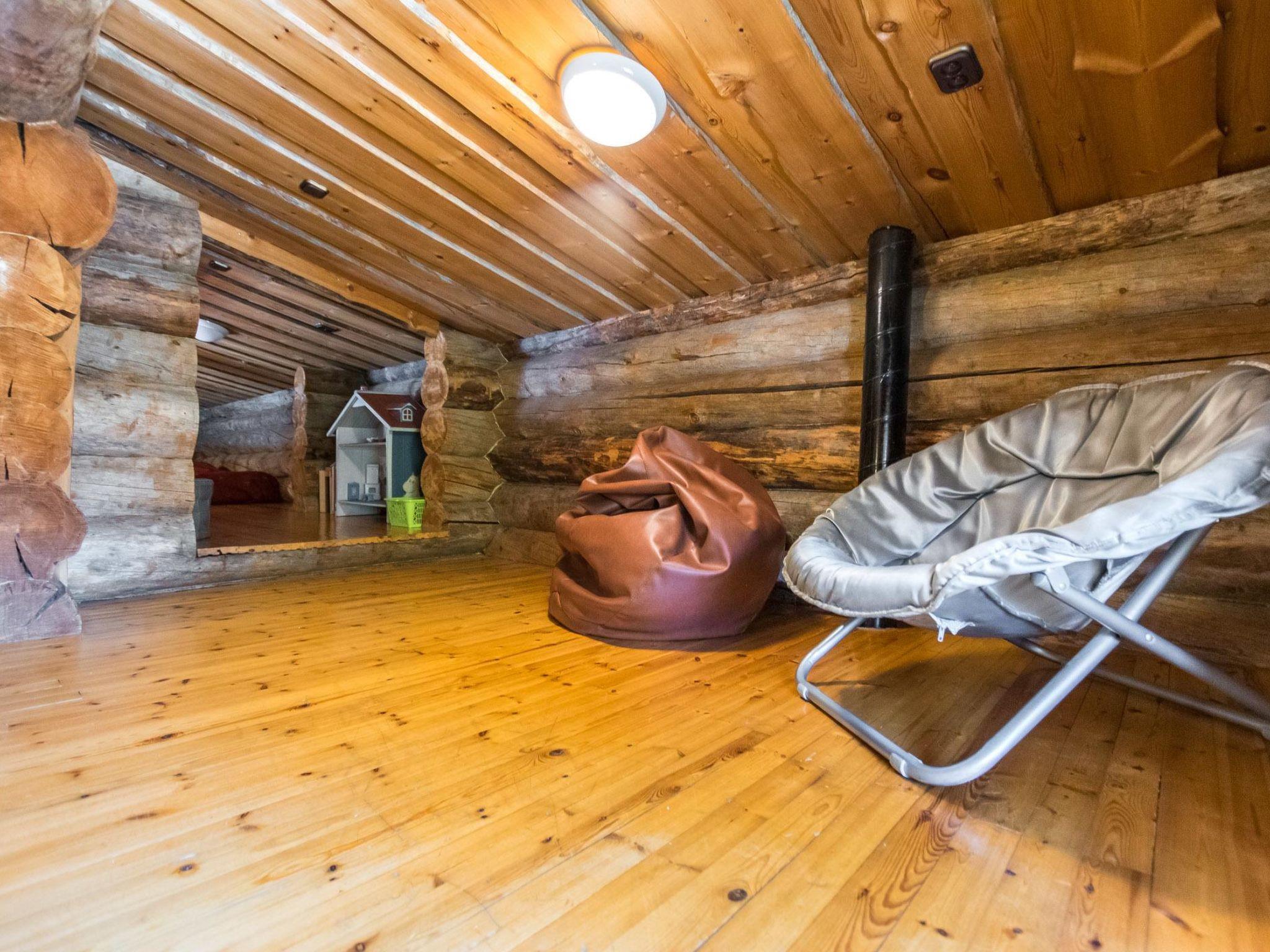 Log cottage, built in 1988. 2 bedrooms: one with double bed, another with 2 beds. Loft: 1 bed + 6 mattresses, combined kitchen/living room, electric sauna. Downstairs 96 m², loft 35 m².