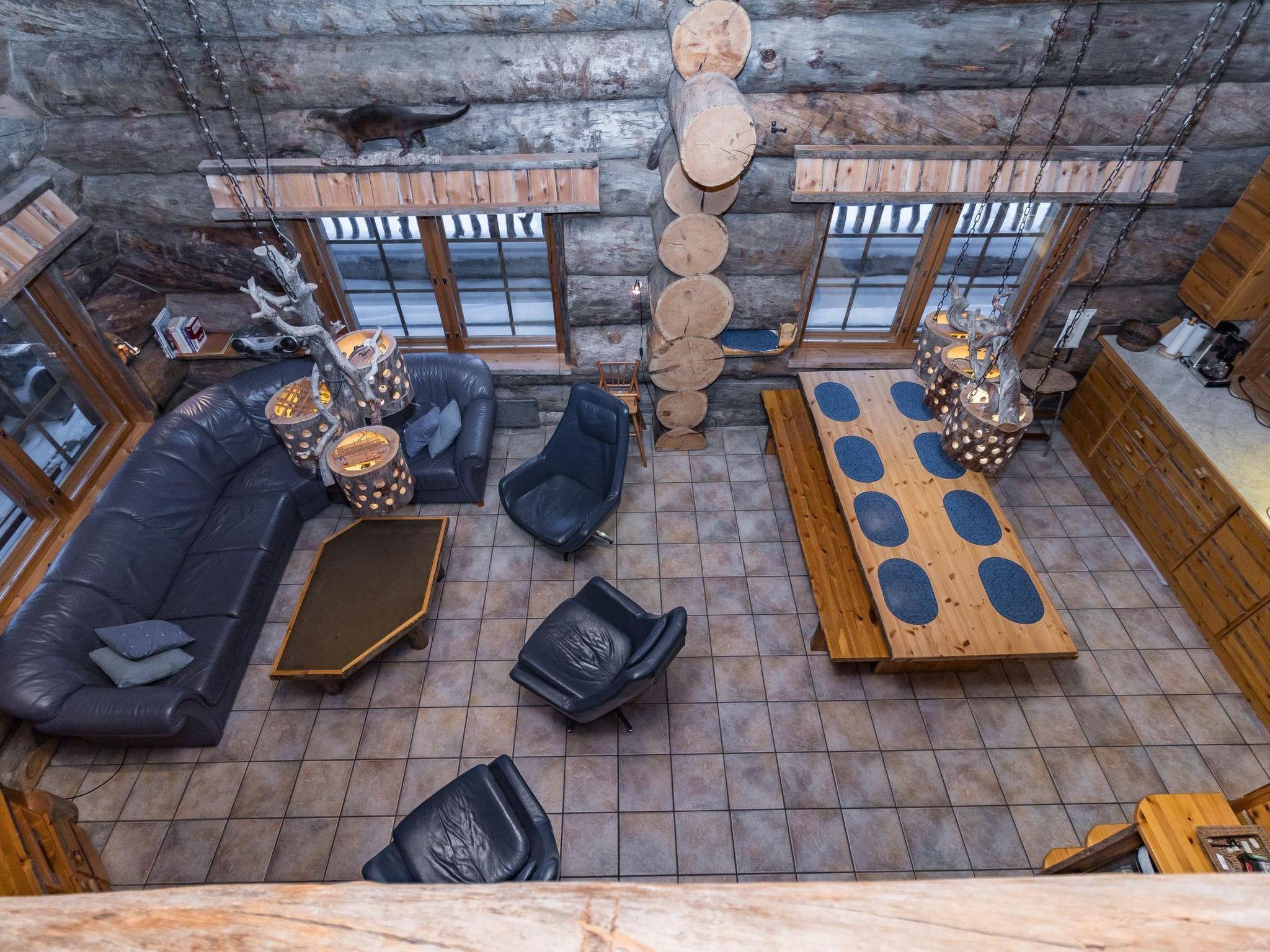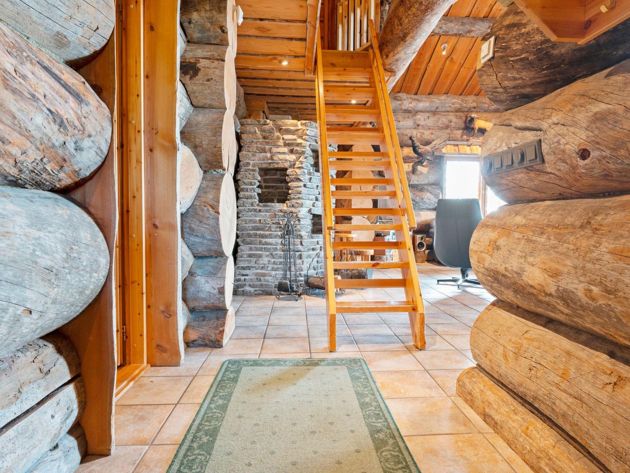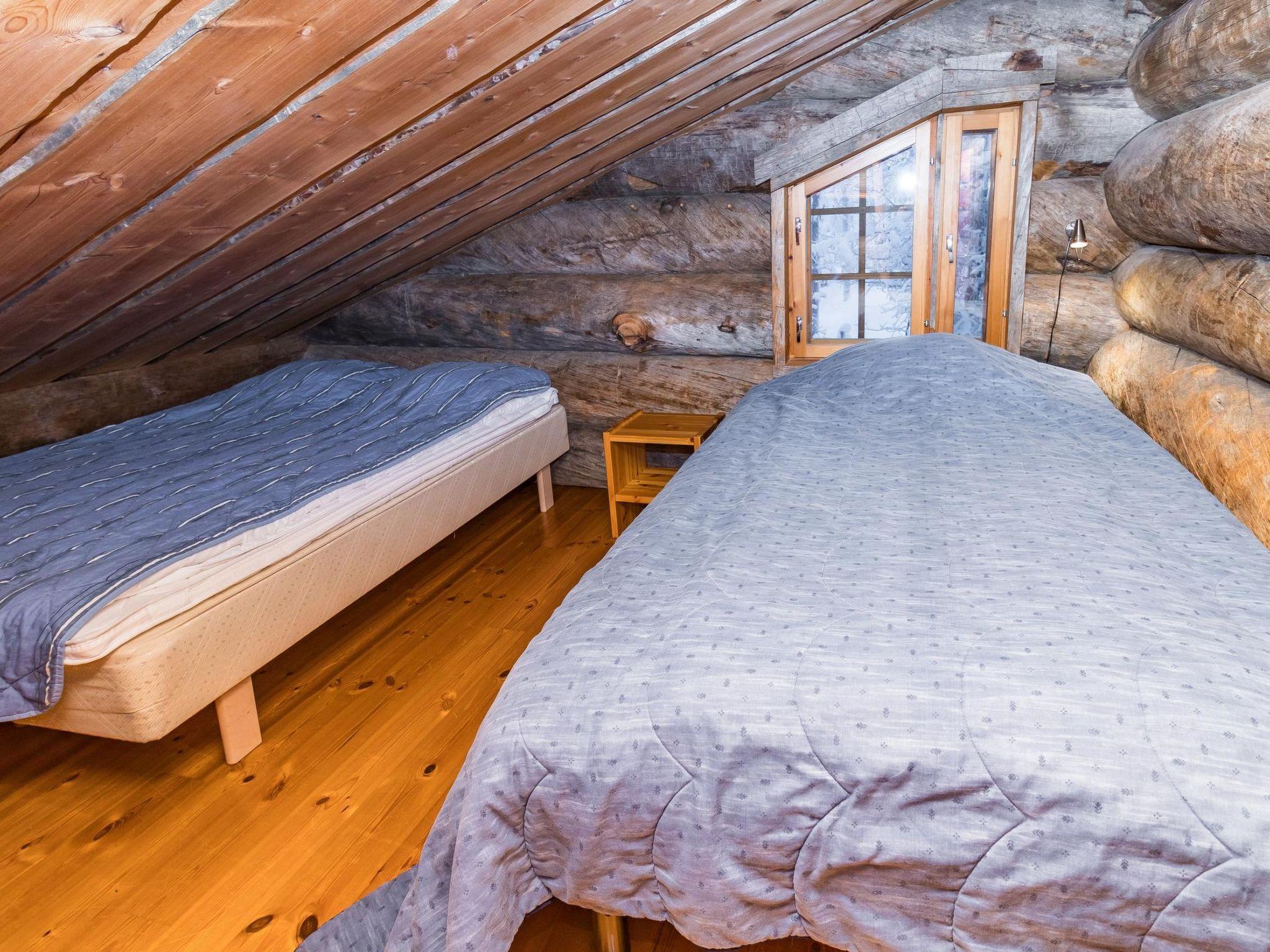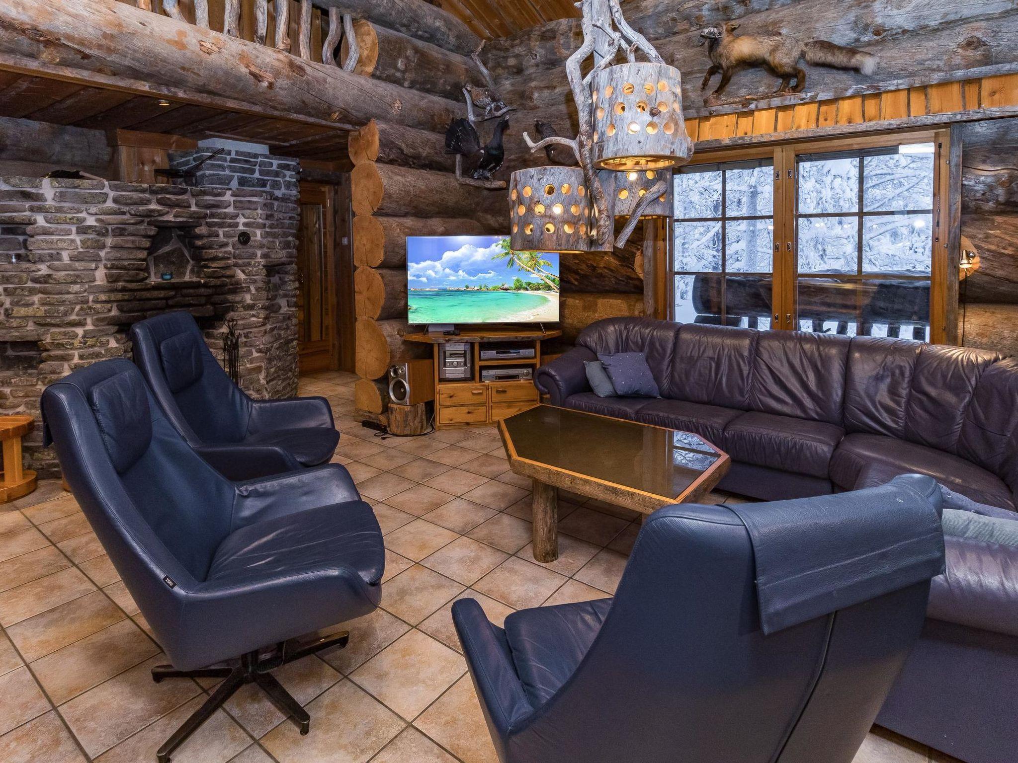 Log cabin built in 2001 on two floors, ground floor 120 m² and loft 20 m². Downstairs living room and kitchen, bedroom 1: bunk bed (lower bed 120 cm wide), bedroom 2: double bed. Upstairs: loft bedroom 1-2: 3 beds in each, loft: extendable pull-out bed (steep stairs to loft), electric sauna, shower and 3 x WC (2 downstairs, 1 upstairs).