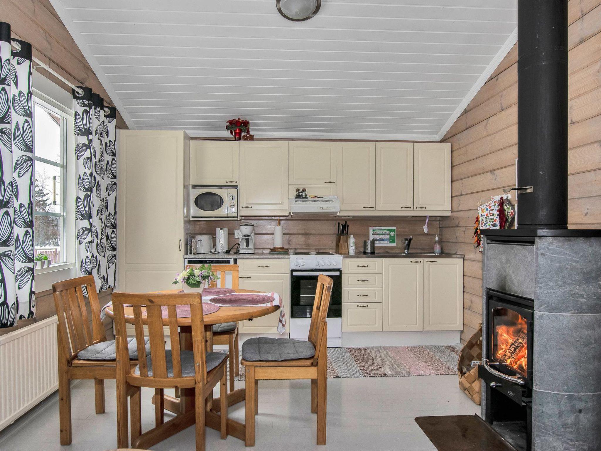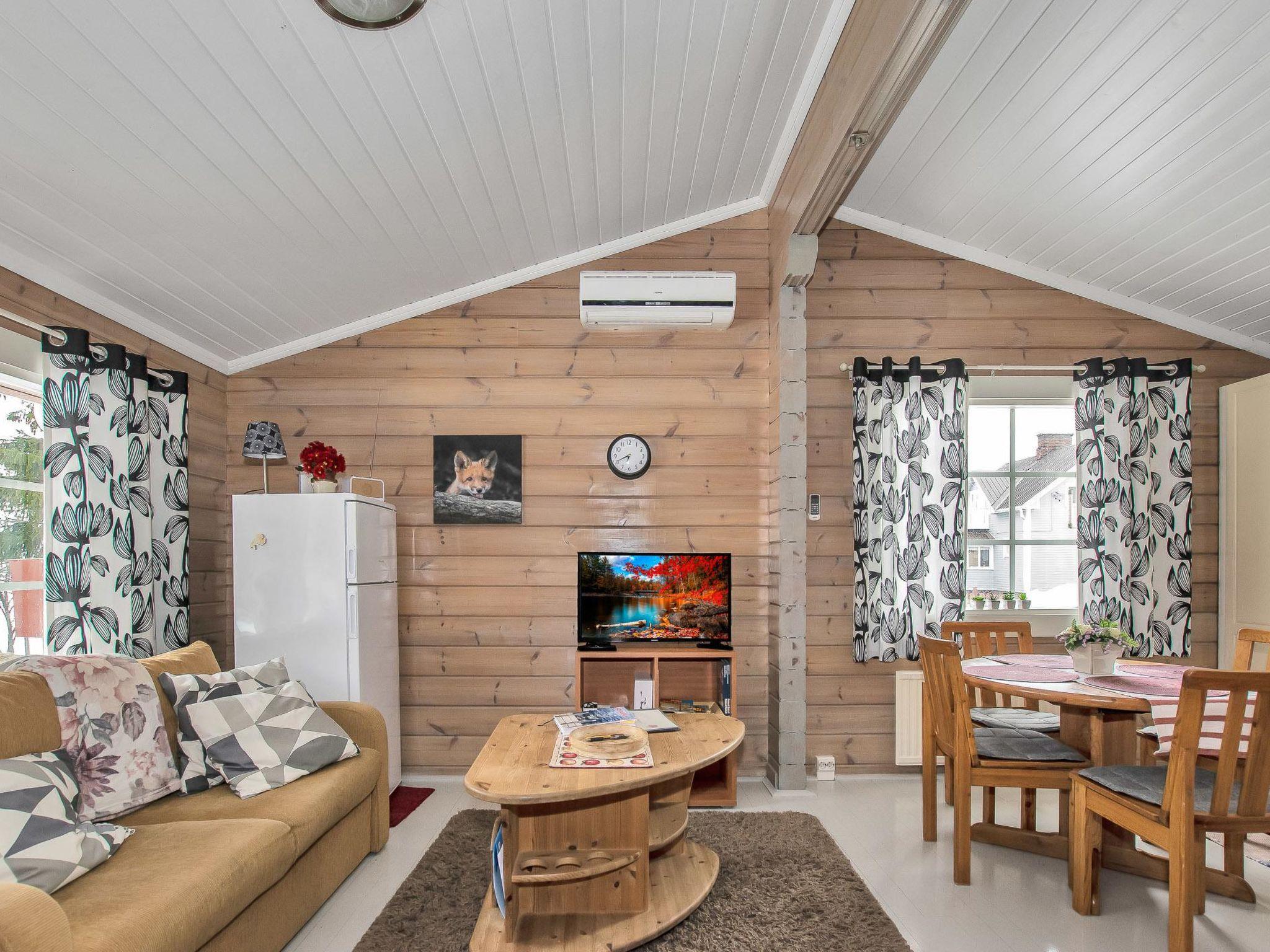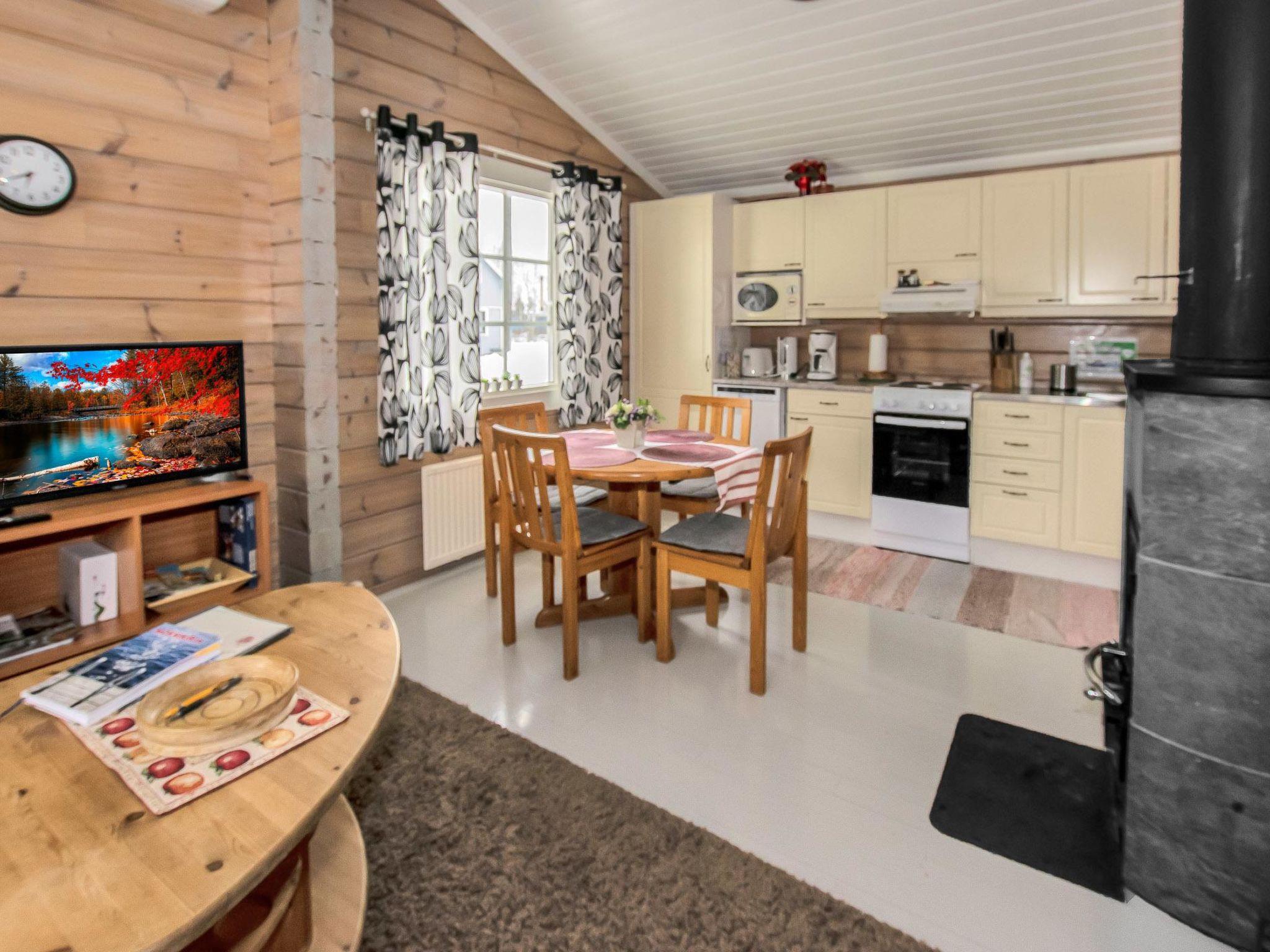 The cabin has a bedroom with double bed. Living room/kitchen, heat reserving fireplace, air source heat pump, spreadable sofa bed in the living room. There is an electric sauna, shower cubicle and toilet in the washroom in the same building.
