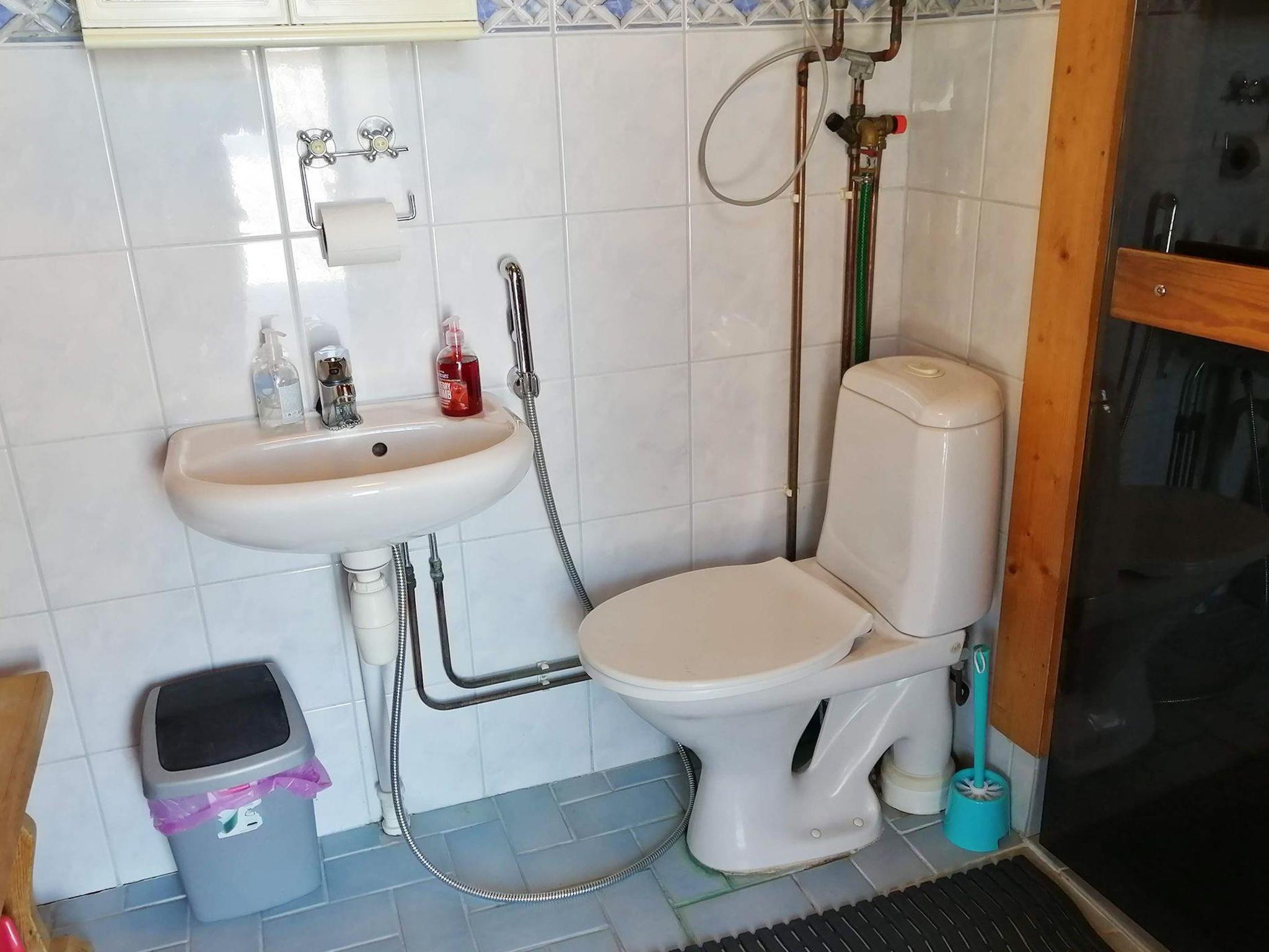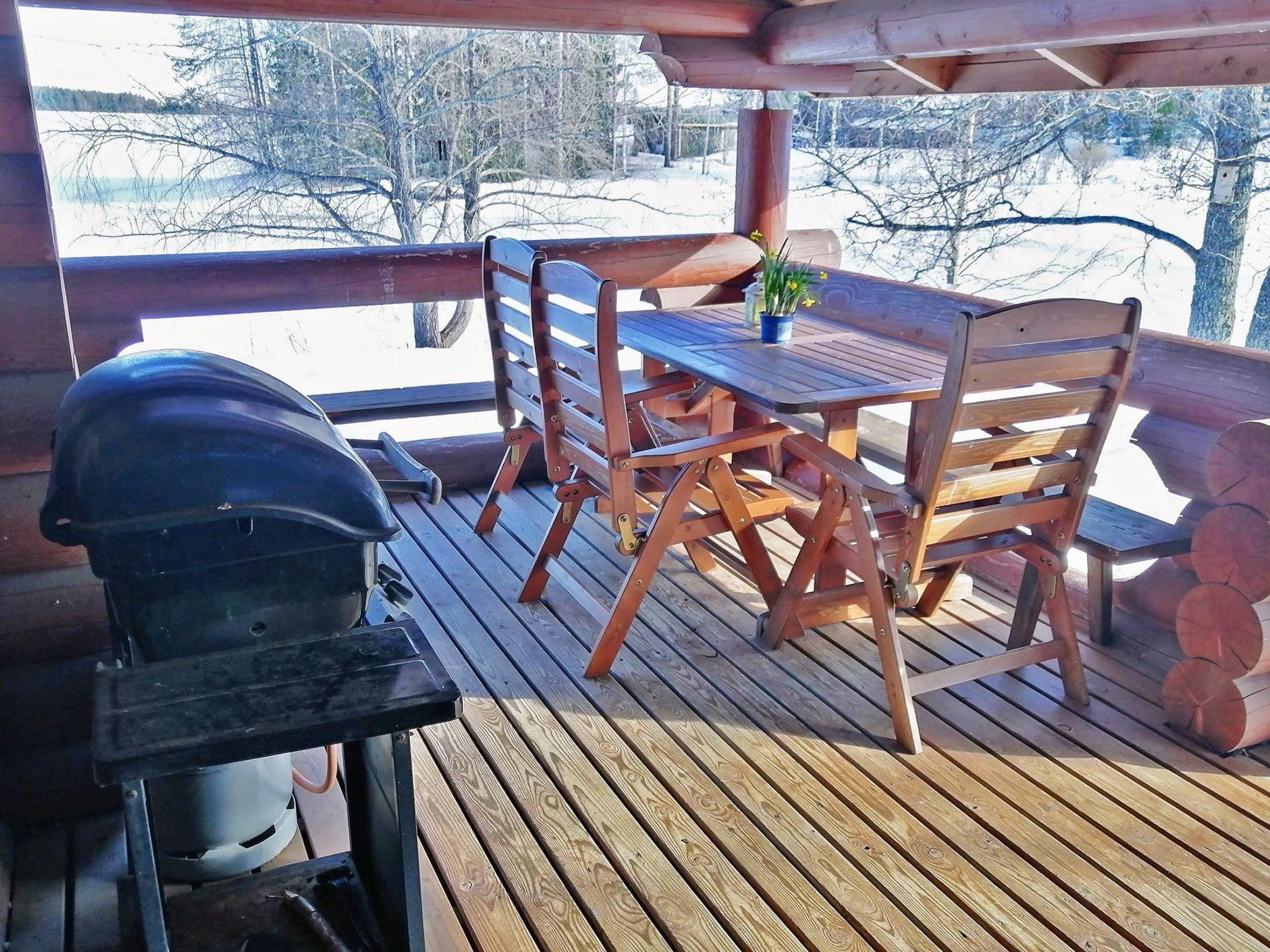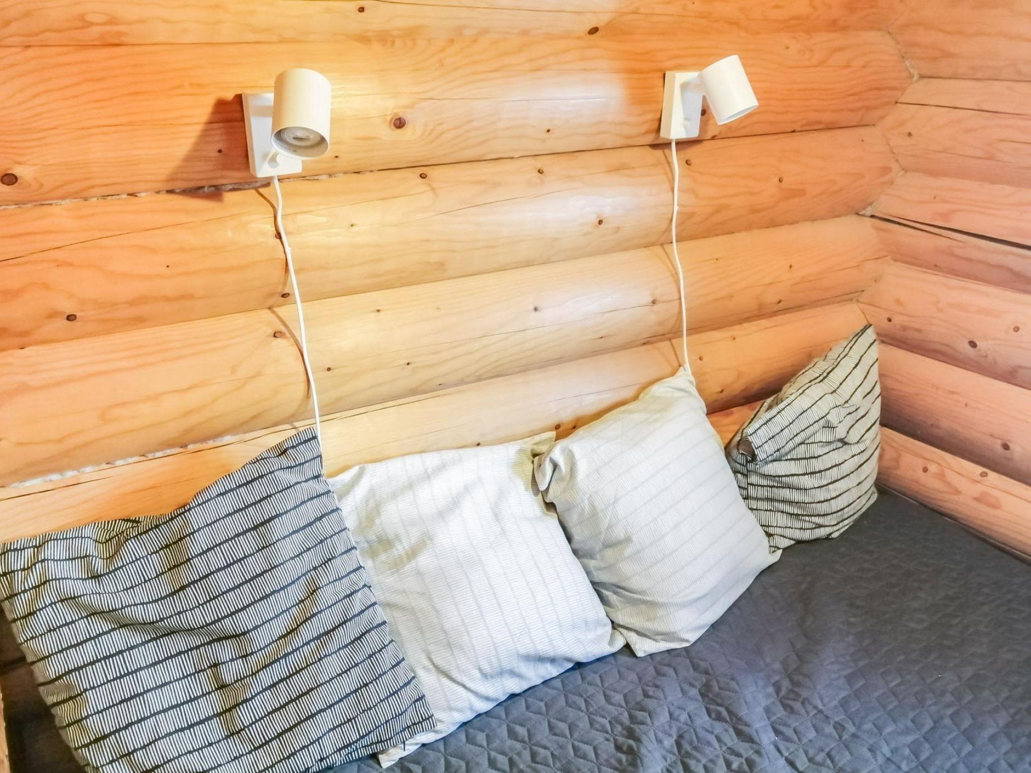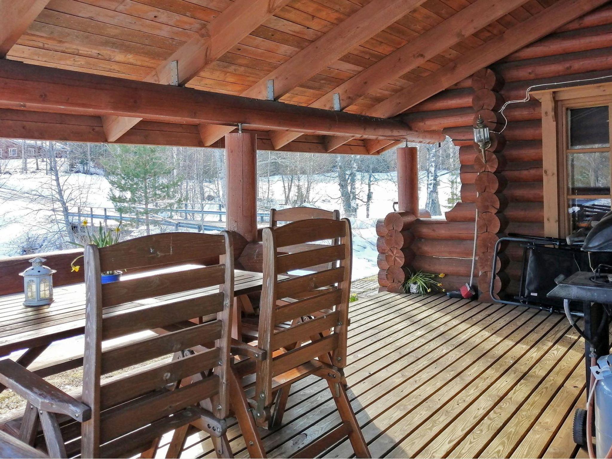 80 km north-east of Kuopio, L.Korpinen 10 m (length 9 km, width 0.6 km) shallow, sanded clay bottom, own boat. Roundlog cottage 1999, living room/kitchen convertible sofa (width 140 cm), sleeping alcove bed (width 160 cm), washroom hand shower and WC, sauna. Terrace on two sides. Access to sauna and washroom via terrace.