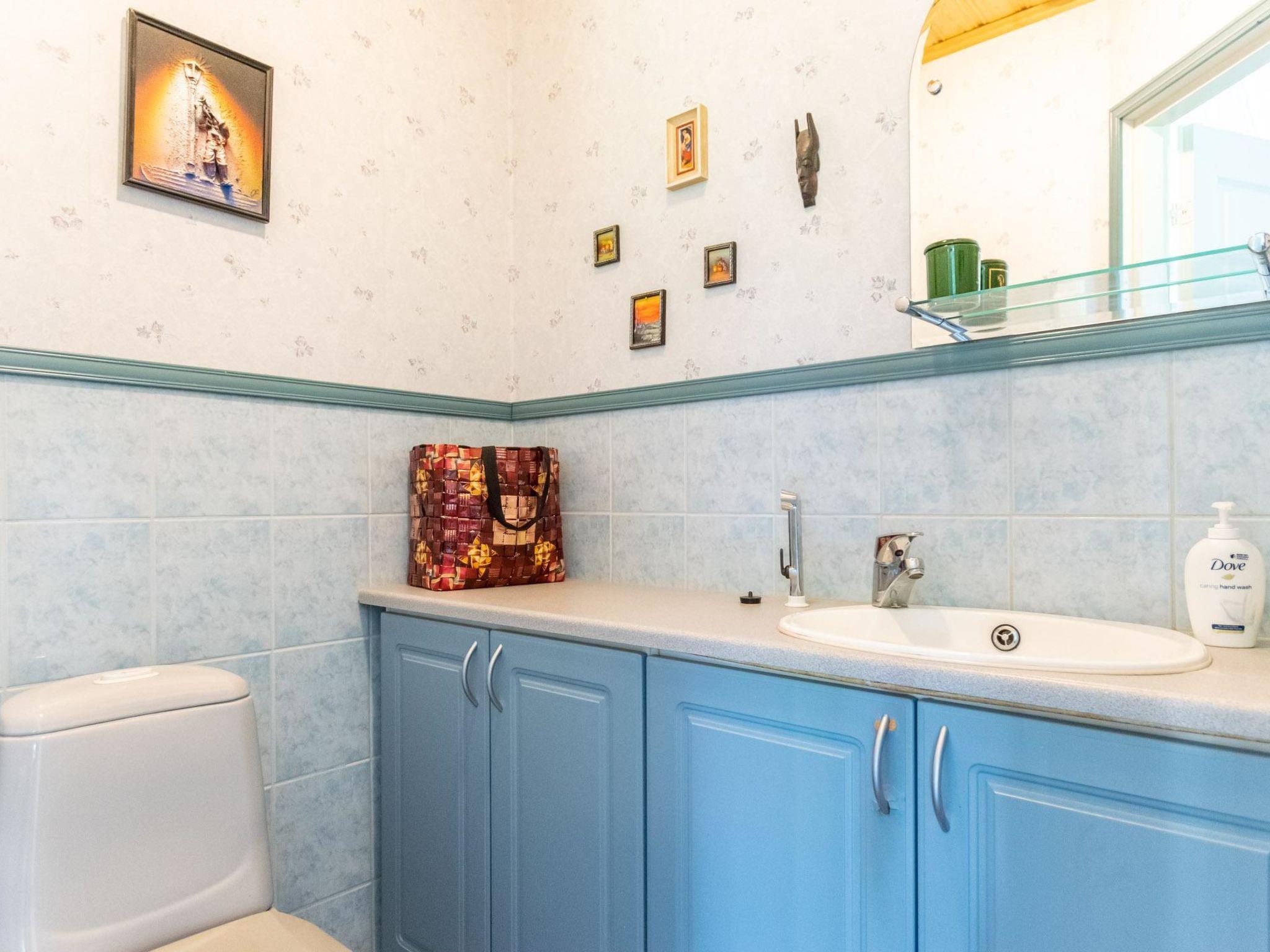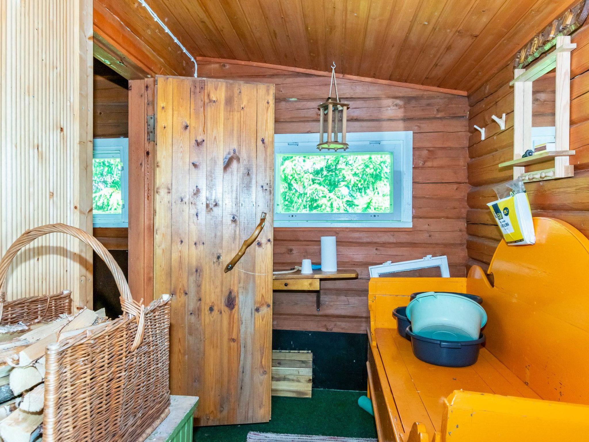 The wooden cabin (2000) features a living room, kitchen, entrance hall, and two bedrooms, each with a double bed. The living room has a sofa bed that converts into a double bed (140 x 200 cm). There is a separate WC, bathroom, and sauna (electric stove). In the yard, there is also a lakeside sauna with a wood-burning stove. The lakesauna is only available from May to September, is not available during the winter. The water for the beach sauna is supplied from a water hose located on the wall of the cottage, which receives cold water from the municipal network.