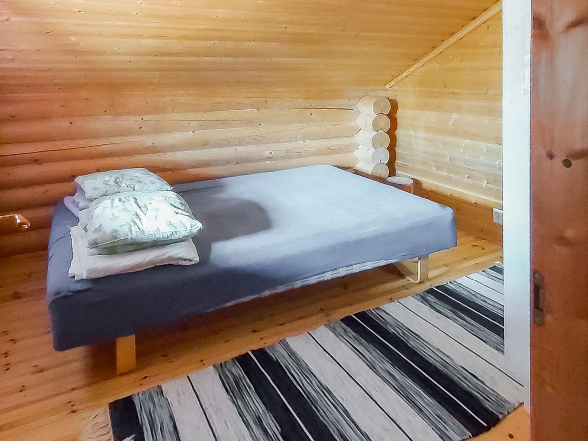 167 km nordöstlich von Seinajöki, See Valkeinen 90 m (Länge 2 km, Breite 1 km), flacher und harter Sandboden. Rundblock-Ferienhaus, Baujahr 1999. Erdgeschoss: Wohnzimmer, Küche, Schlafzimmer mit 1 Bett, Wohnbereich, Waschraum/WC, Sauna (Elektroherd), überdachte Terrasse. Obergeschoss: Halle mit zusätzlichem Doppelbett, 2 Schlafzimmer mit je 1 Doppelbett, anderes Schlafzimmer mit 2 Betten, Balkon. Ferienhaus an einem Grundstück in der Kiefernheide, ca. 1 km vom Campingplatz entfernt. Die Hauptstrasse verläuft zwischen dem Ferienhaus und dem Sandstrand. Auf der Strassenseite des Hofes befindet sich ein Zaun (aus schrägen Pfählen). Im Hof zur Verfügung: Hundezwinger, beheizte Hundehütte, Holzschuppen und Grill-Tipi (kann separat vom Campingbüro gemietet werden). Die Gegend bietet gute Möglichkeiten zum Angeln, Beerenpflücken, Wandern und Rucksackwandern. Ruderboot kann am Campingplatz gemietet werden. Der Klarwasser-See eignet sich ideal zum Sportfischen, Lachsfisch-Bestände mehrmals im Jahr. Angelscheine und Angelzubehör, Kanu, Mahlzeiten im Ferienhaus usw. sind, gegen Aufpreis, im Büro des Campingplatzes vor Ort verfügbar. Gruppen können ein Dorf mit Einbaum-Unterständen buchen. Dort gibt es einen Regenbogenforellenteich, wo leicht Fische gefangen werden können. Zur Verfügung stehen: Sauna, Unterstände zum Schlafen, Hauptgebäude für Mahlzeiten und Treffen. Reitmöglichkeiten im Reitstall Lassila, 4 km vom Ferienhaus entfernt. Kinnula 11 km, Peuranpolku Wanderweg 300 m, Museum für lokale Kultur/Handwerk und Vihtori Storck Atelier 9 km, Metsäpeuranmaa Besucherzentrum 1 km, Salamajärvi Nationalpark 27 km.