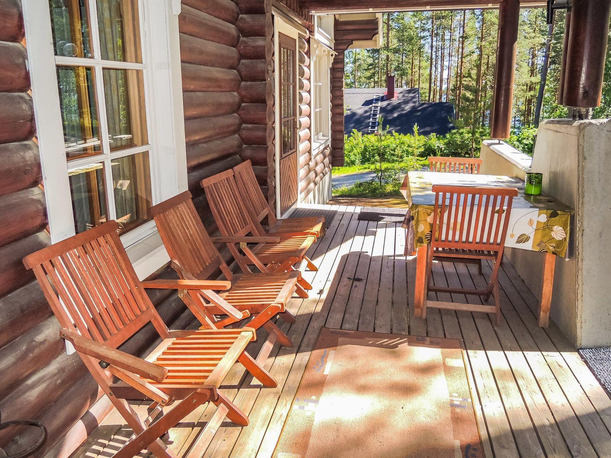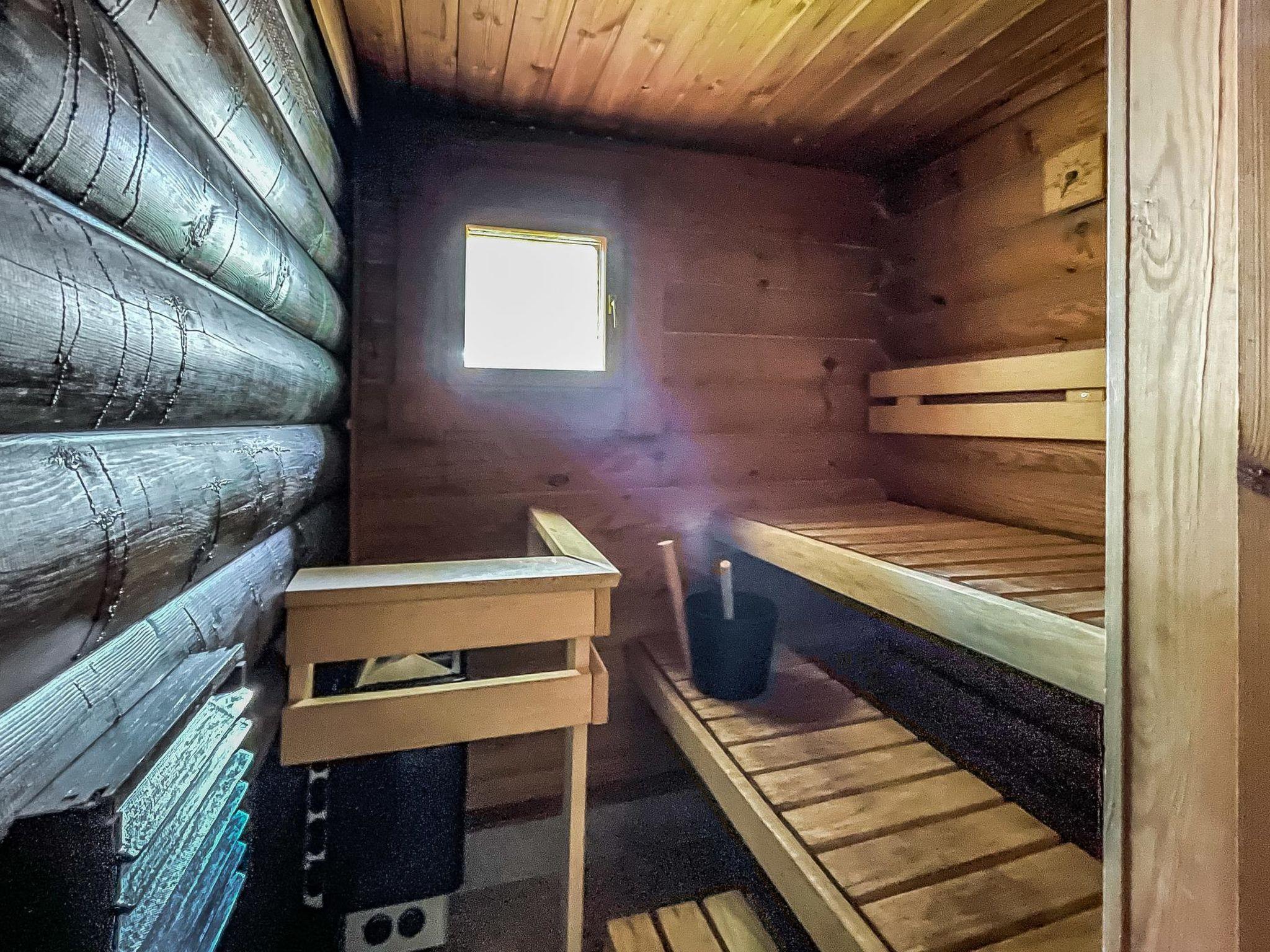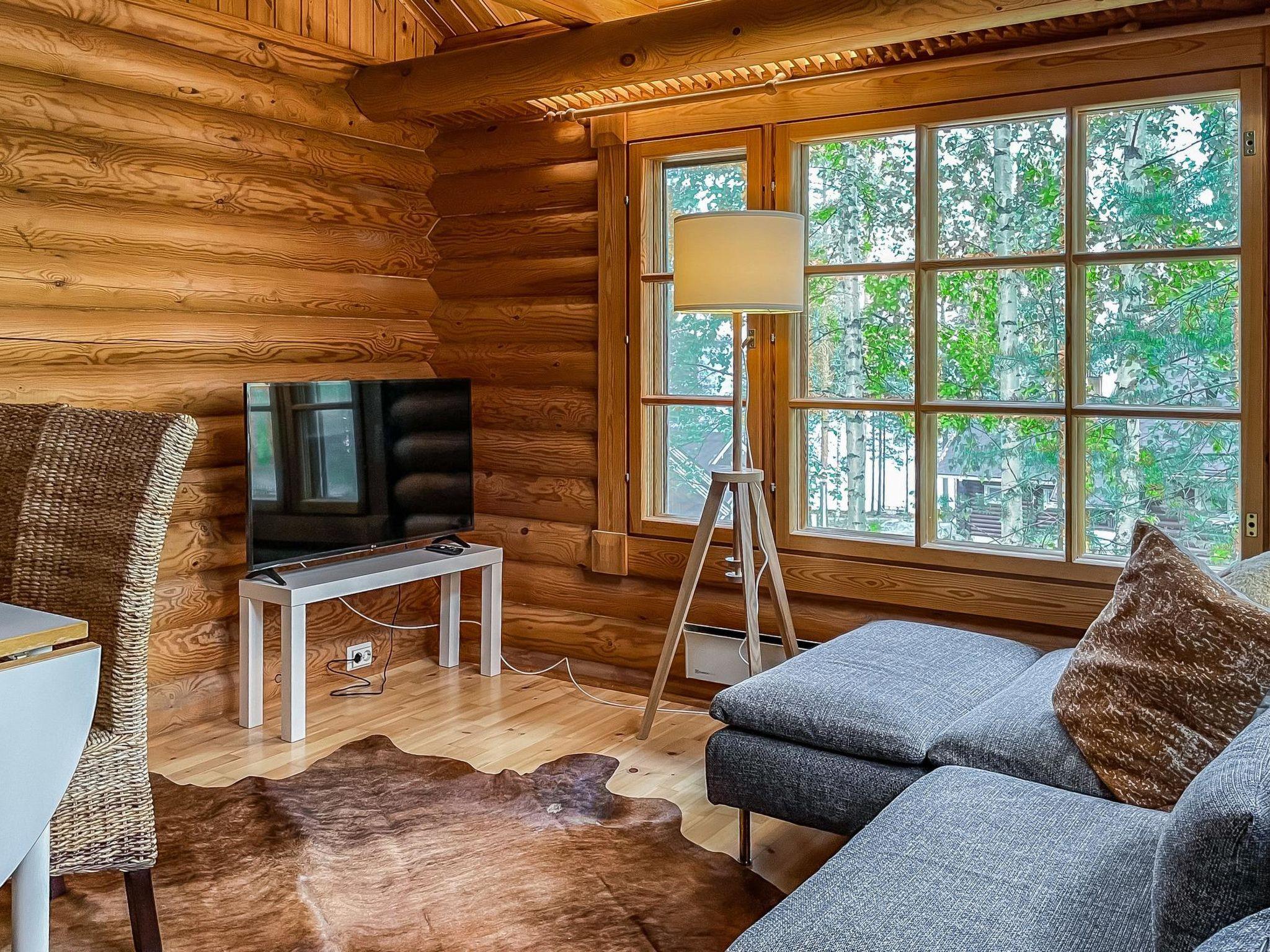 Round log cottage 1990, renovated 20220. Kitchen, living room, bedroom with double bed, sleeping gallery (18 m2) with double bed and three beds, washroom, sauna (elec. stove) and terrace, with dinning for 6.