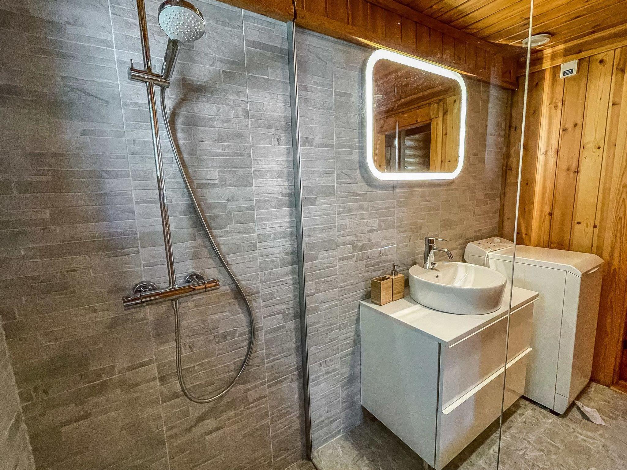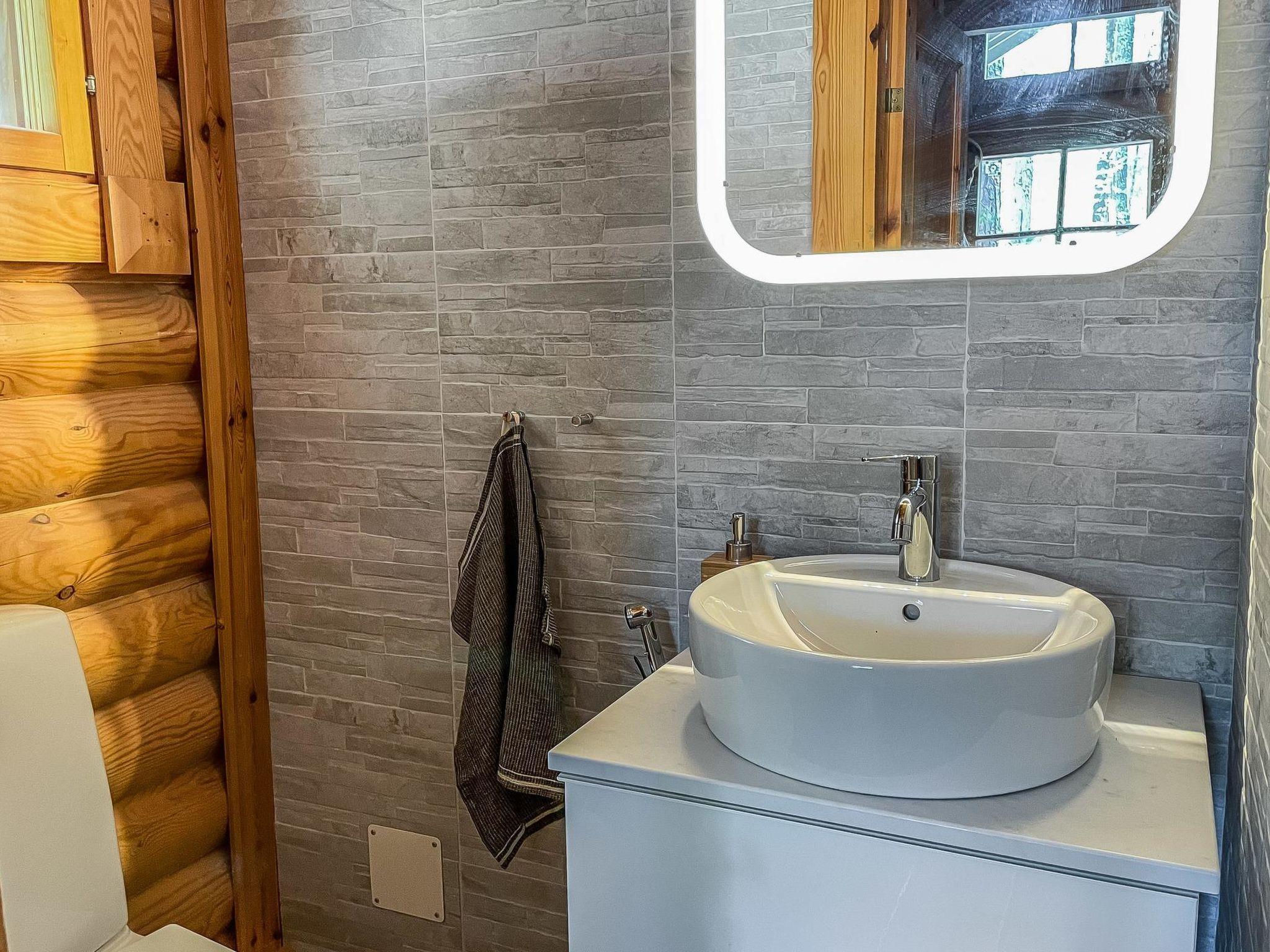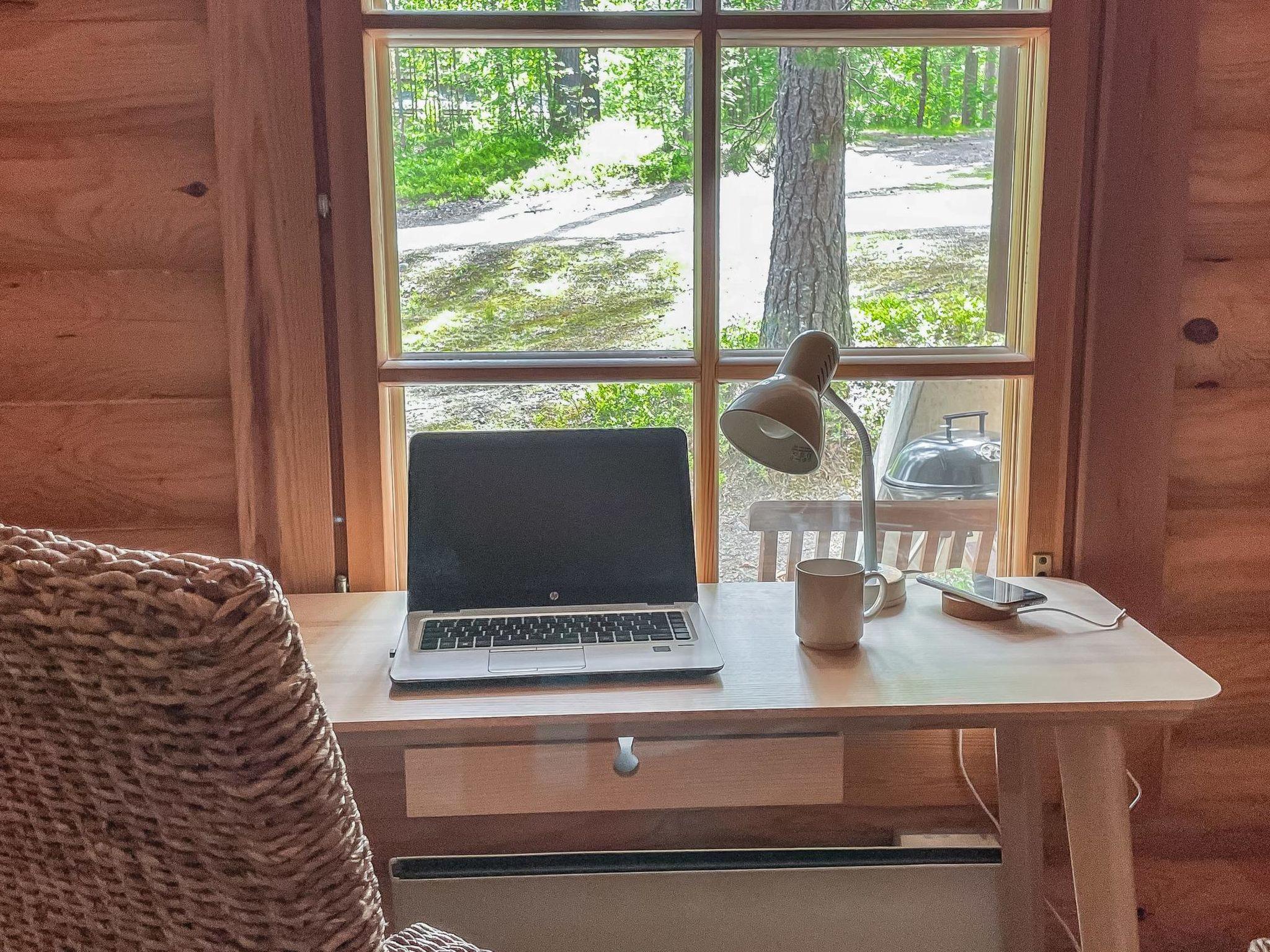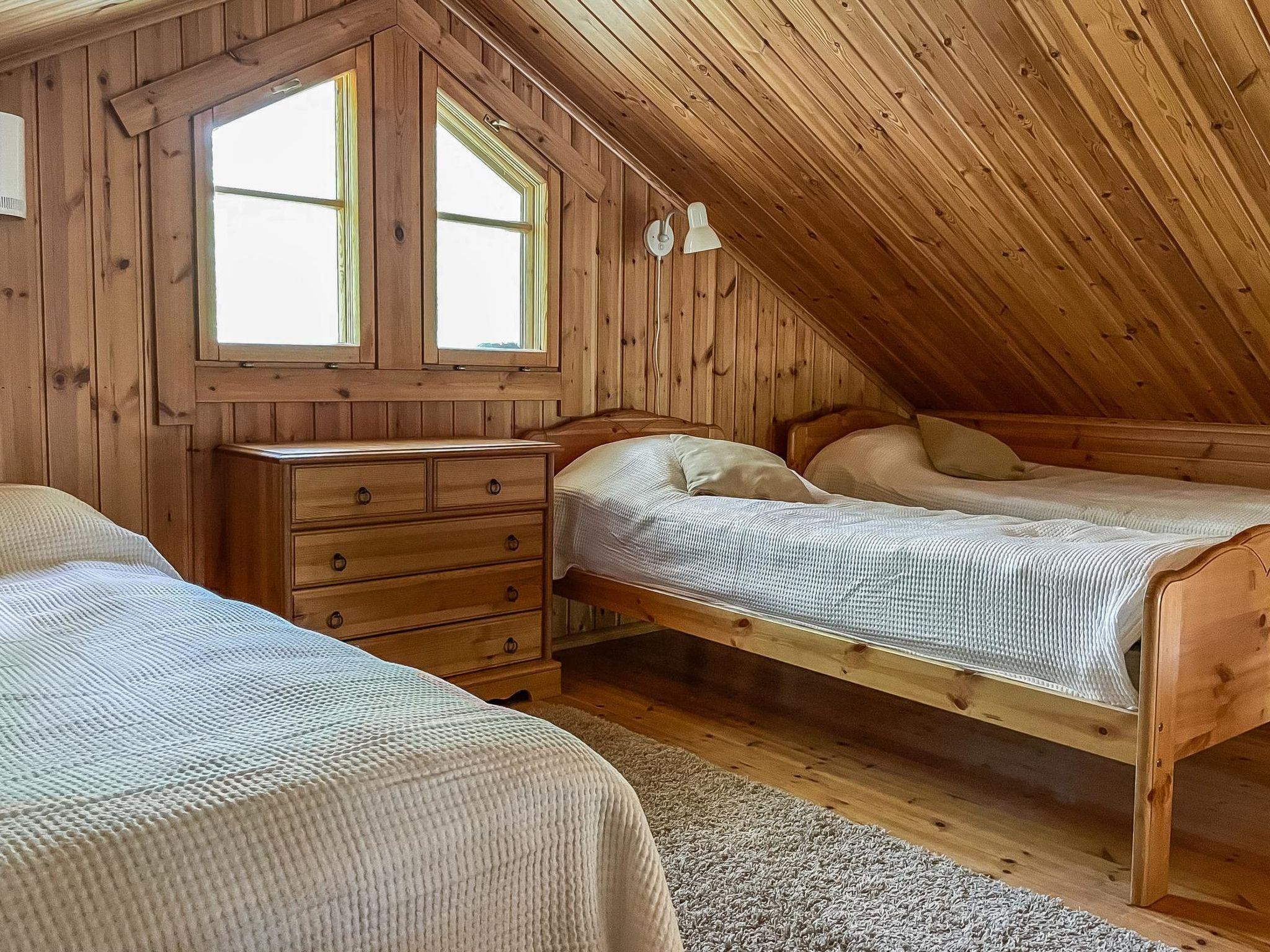 Round log cottage 1990, renovated 20220. Kitchen, living room, bedroom with double bed, sleeping gallery (18 m2) with double bed and three beds, washroom, sauna (elec. stove) and terrace, with dinning for 6.