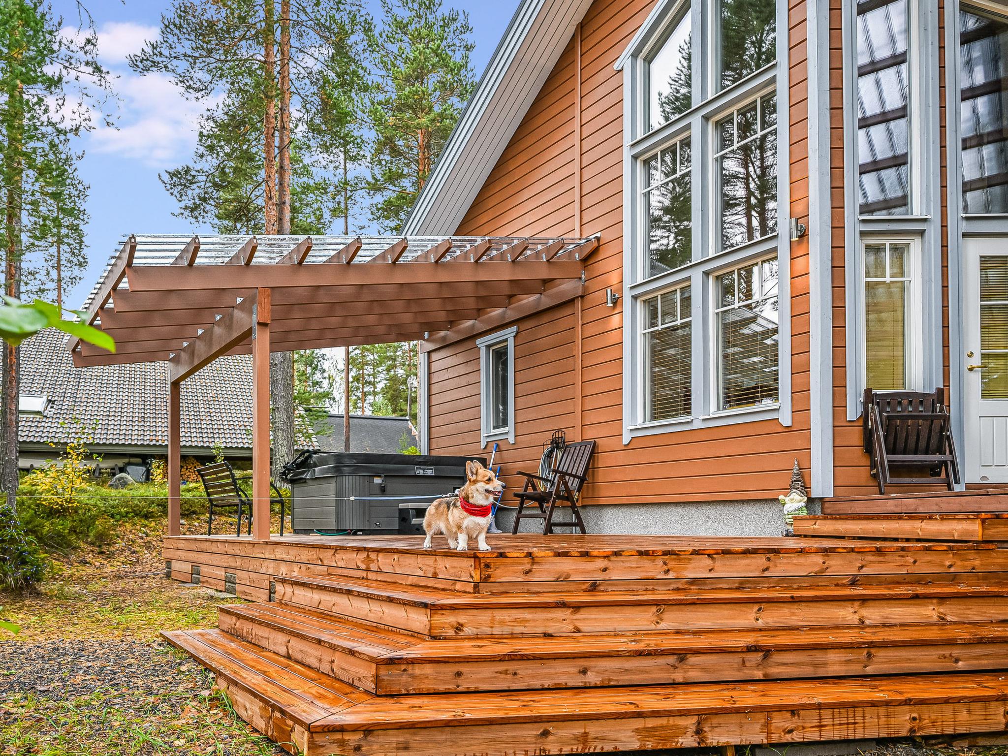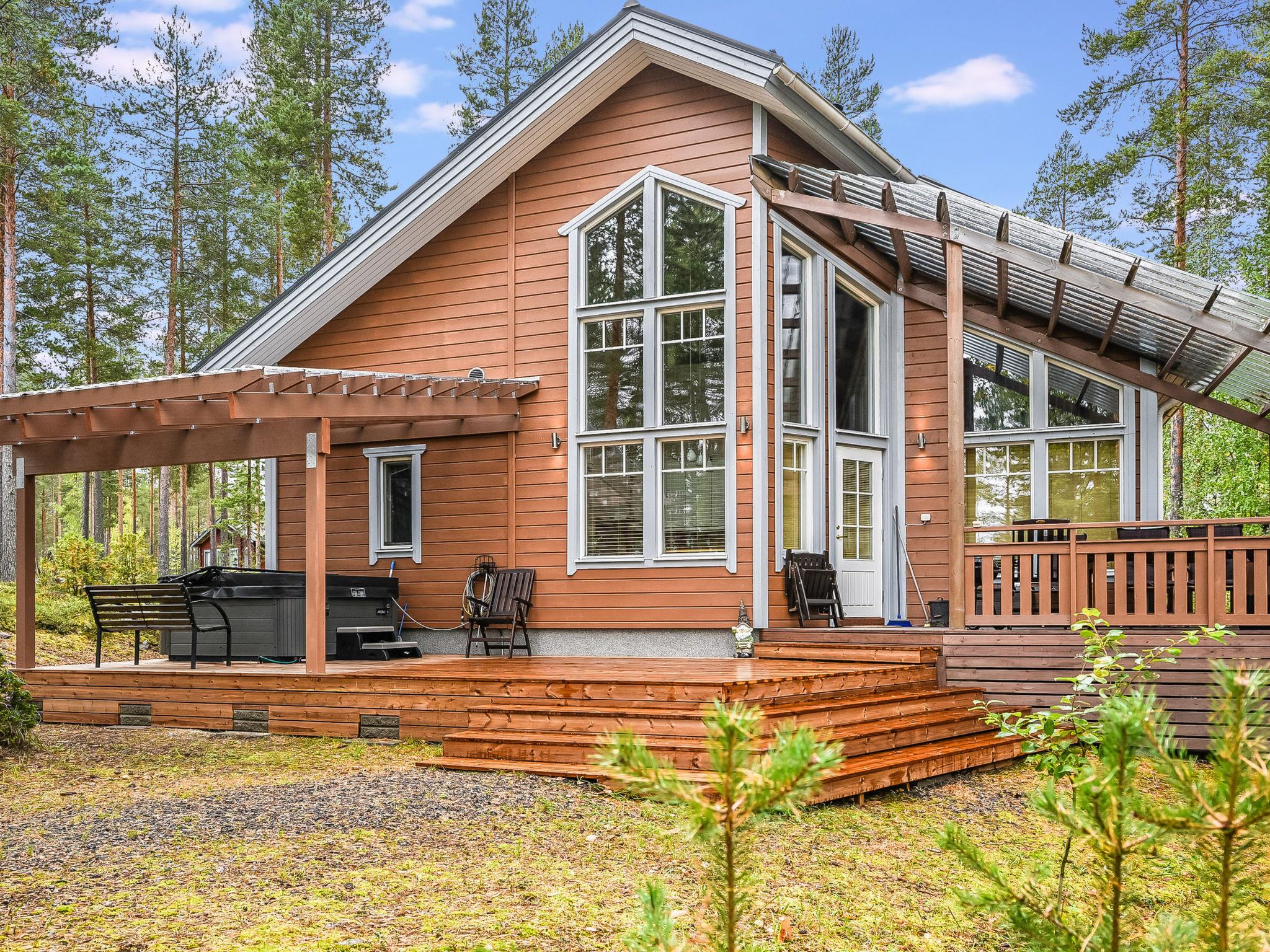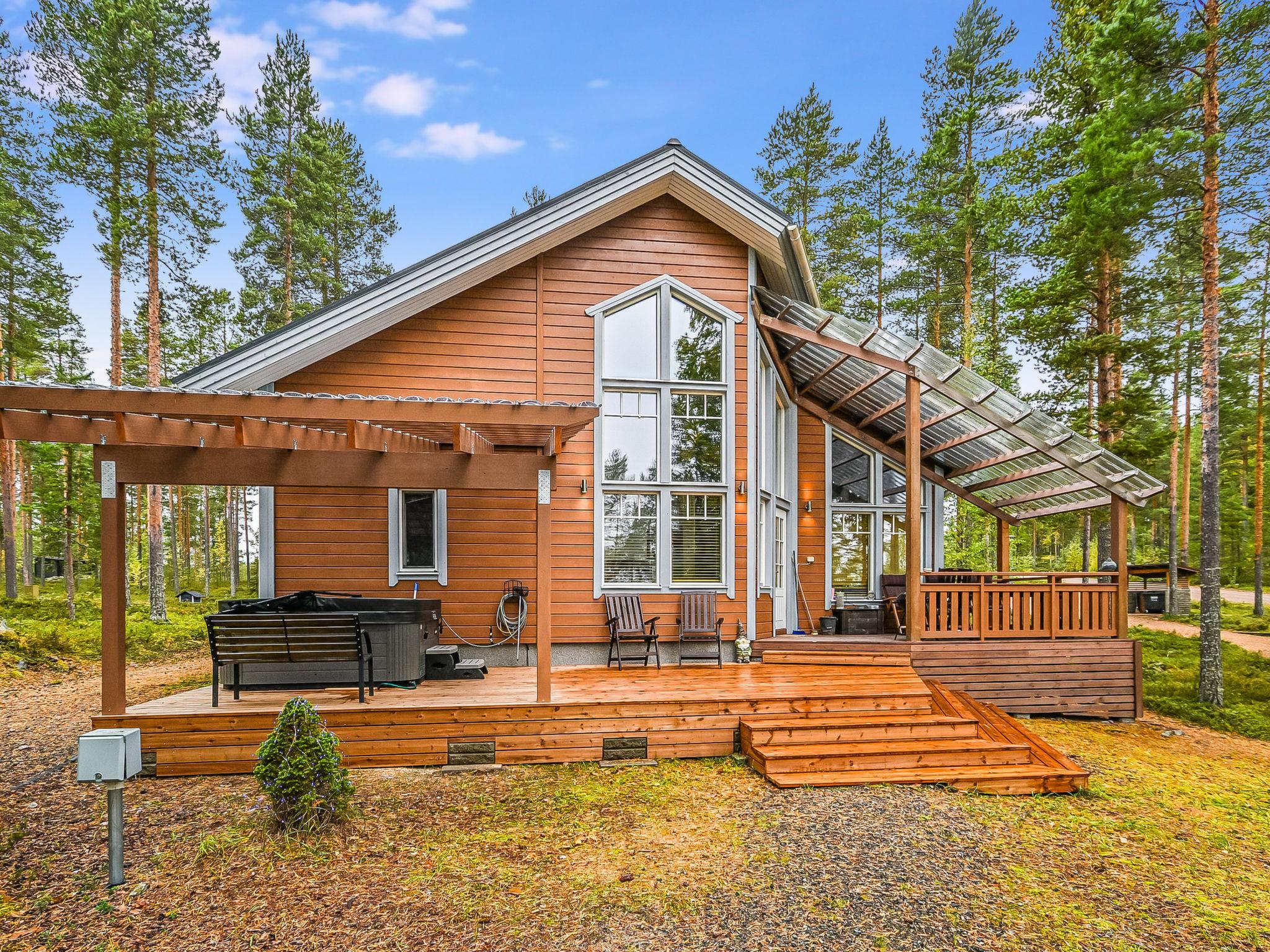 77 km north of Joensuu, Lake Pielinen 20 m (871,2 km²), gently deepening, partly stony bottom, own boat. Wood cottage 2008, kitchen-living room with convertible sofa, 2 bedrooms with double beds in each, upstairs bed room with 2 beds and 2 camp beds, washroom, sauna (elec. stove), terrace.