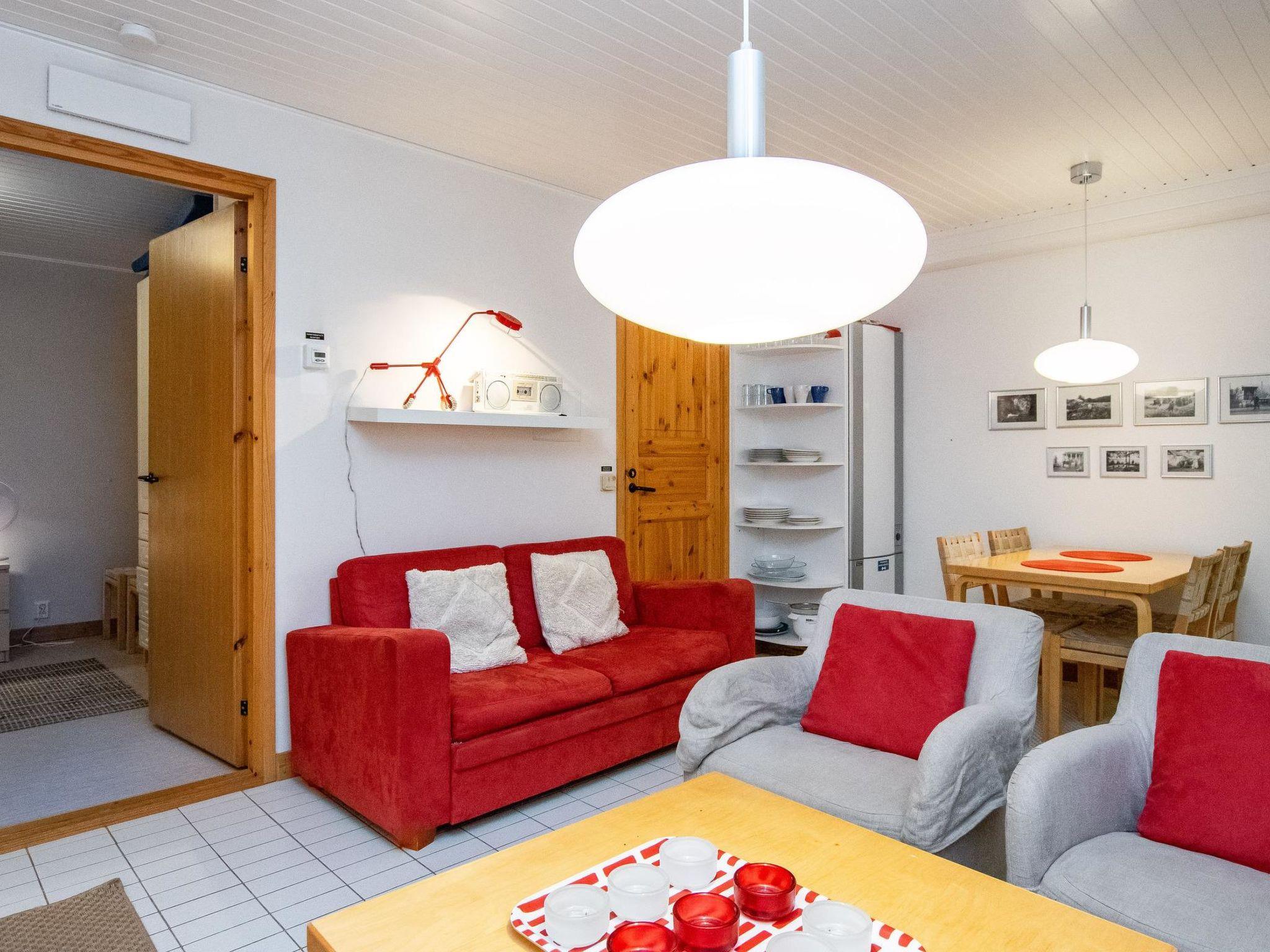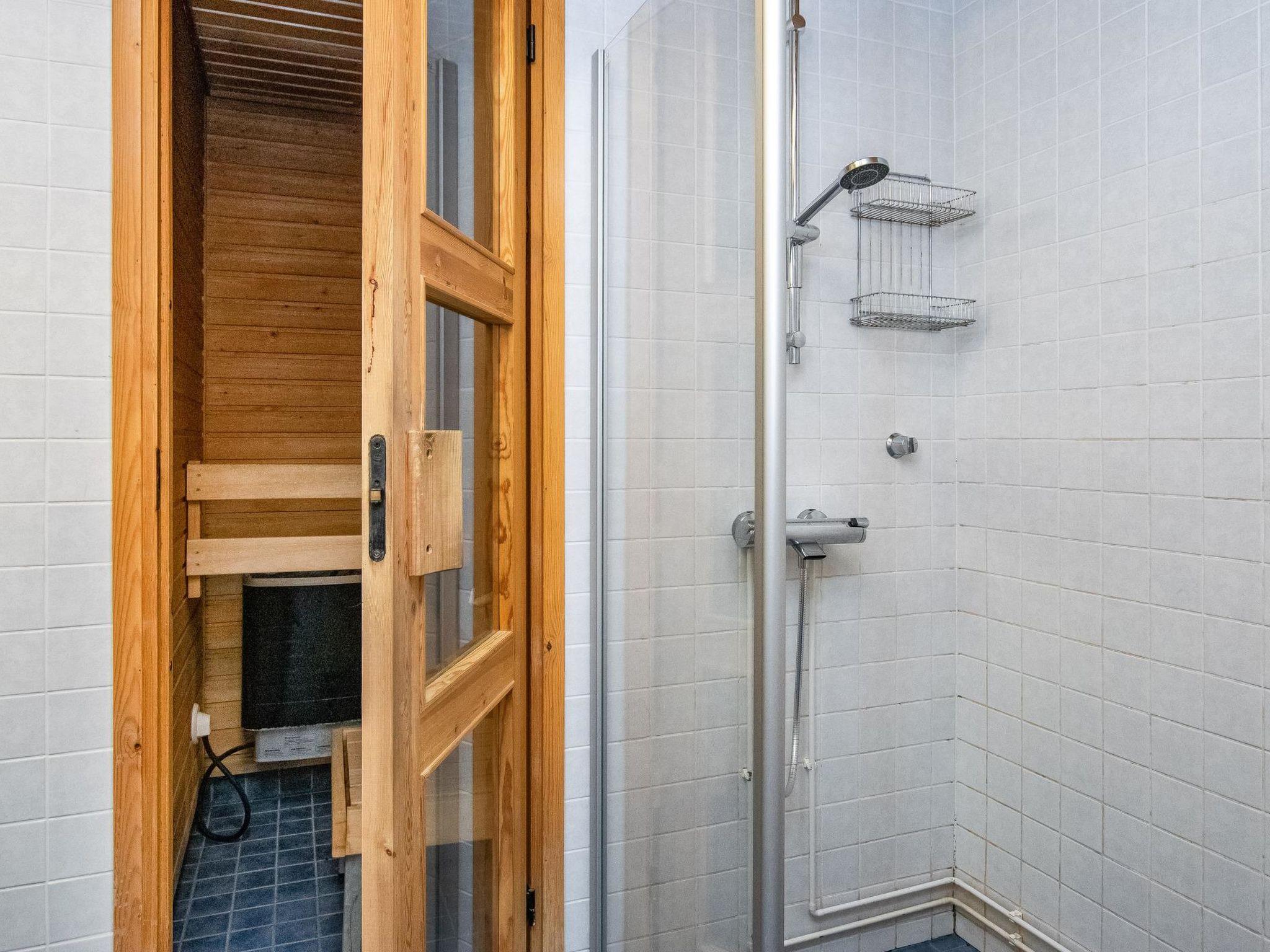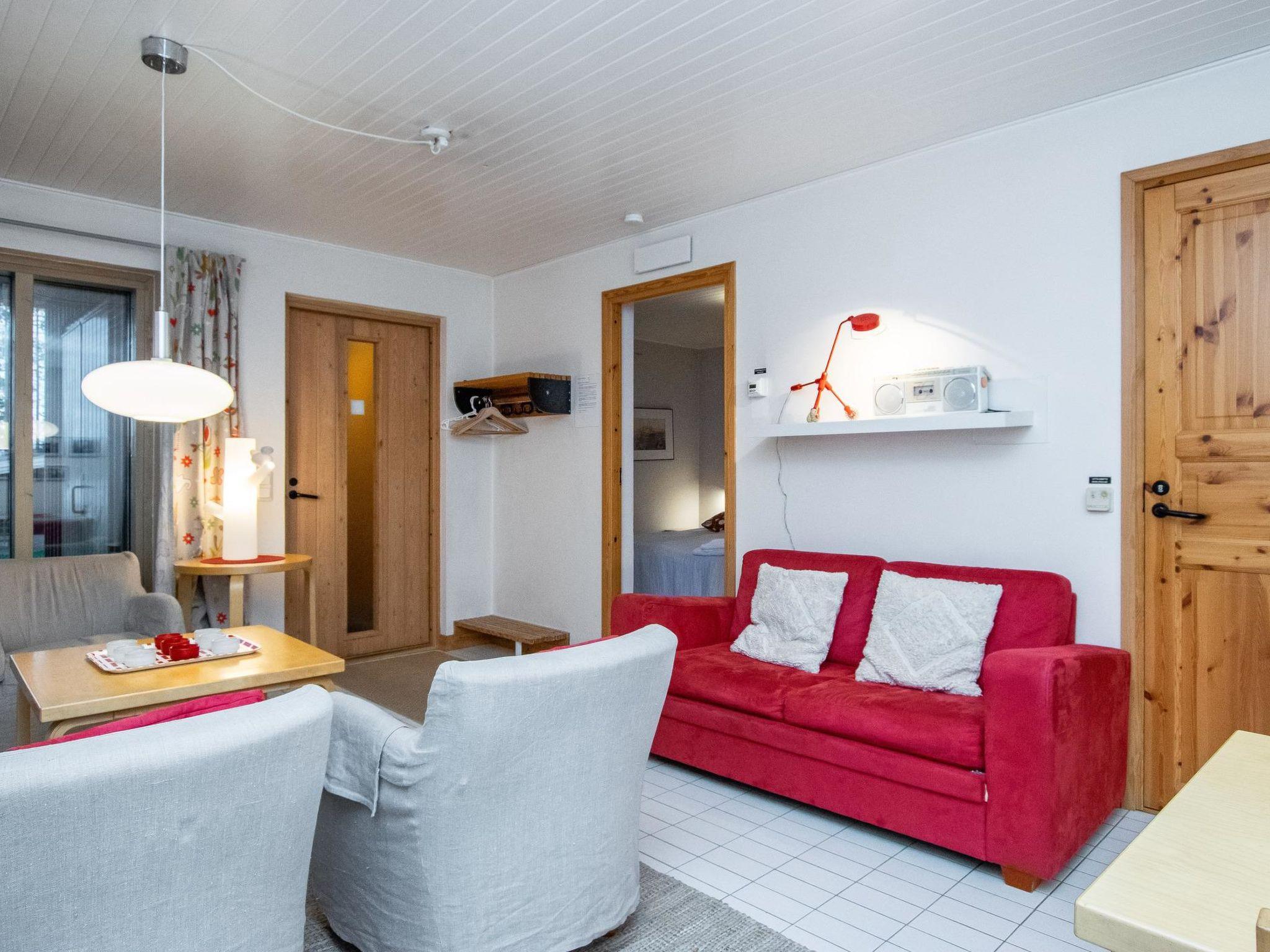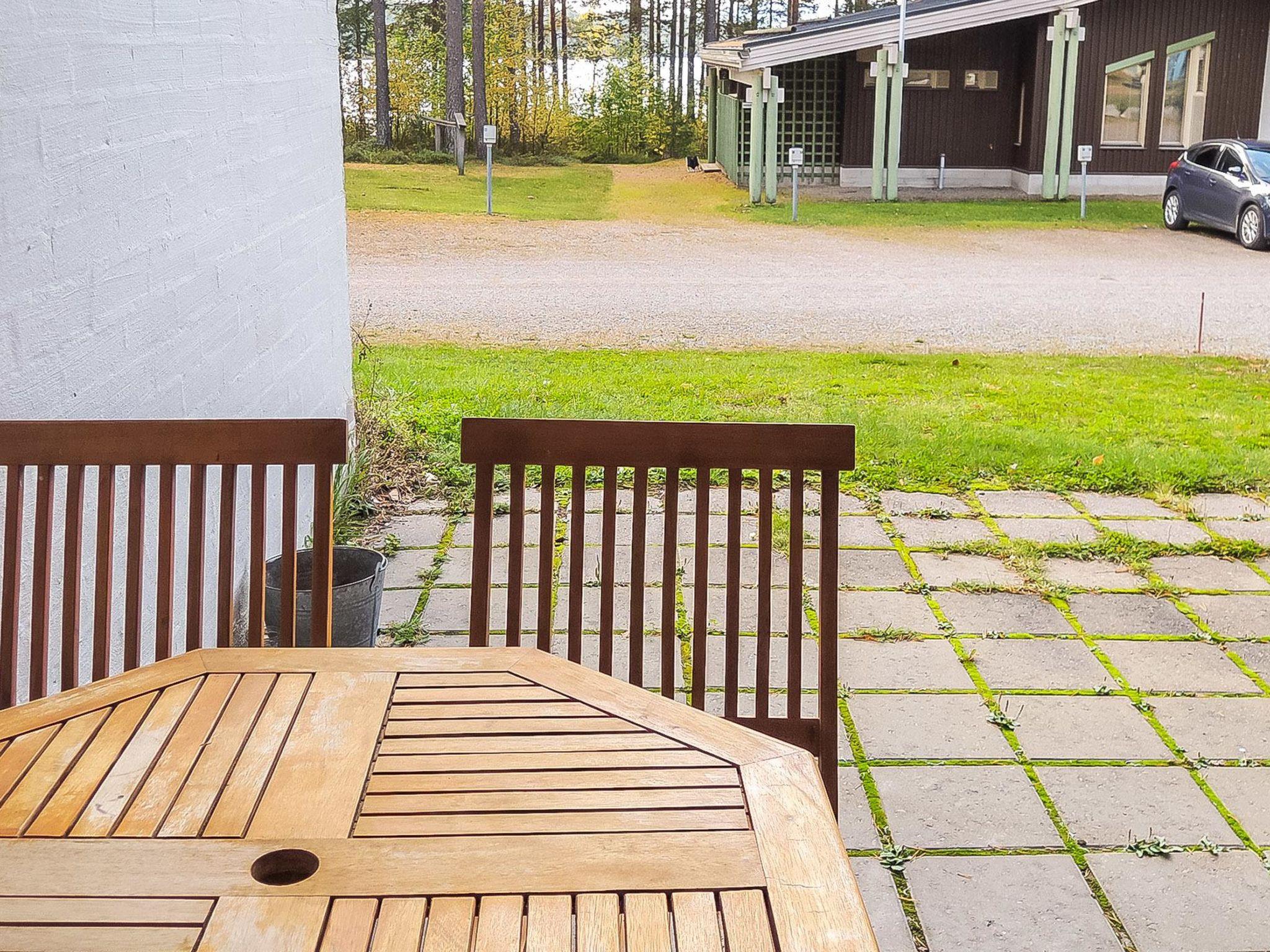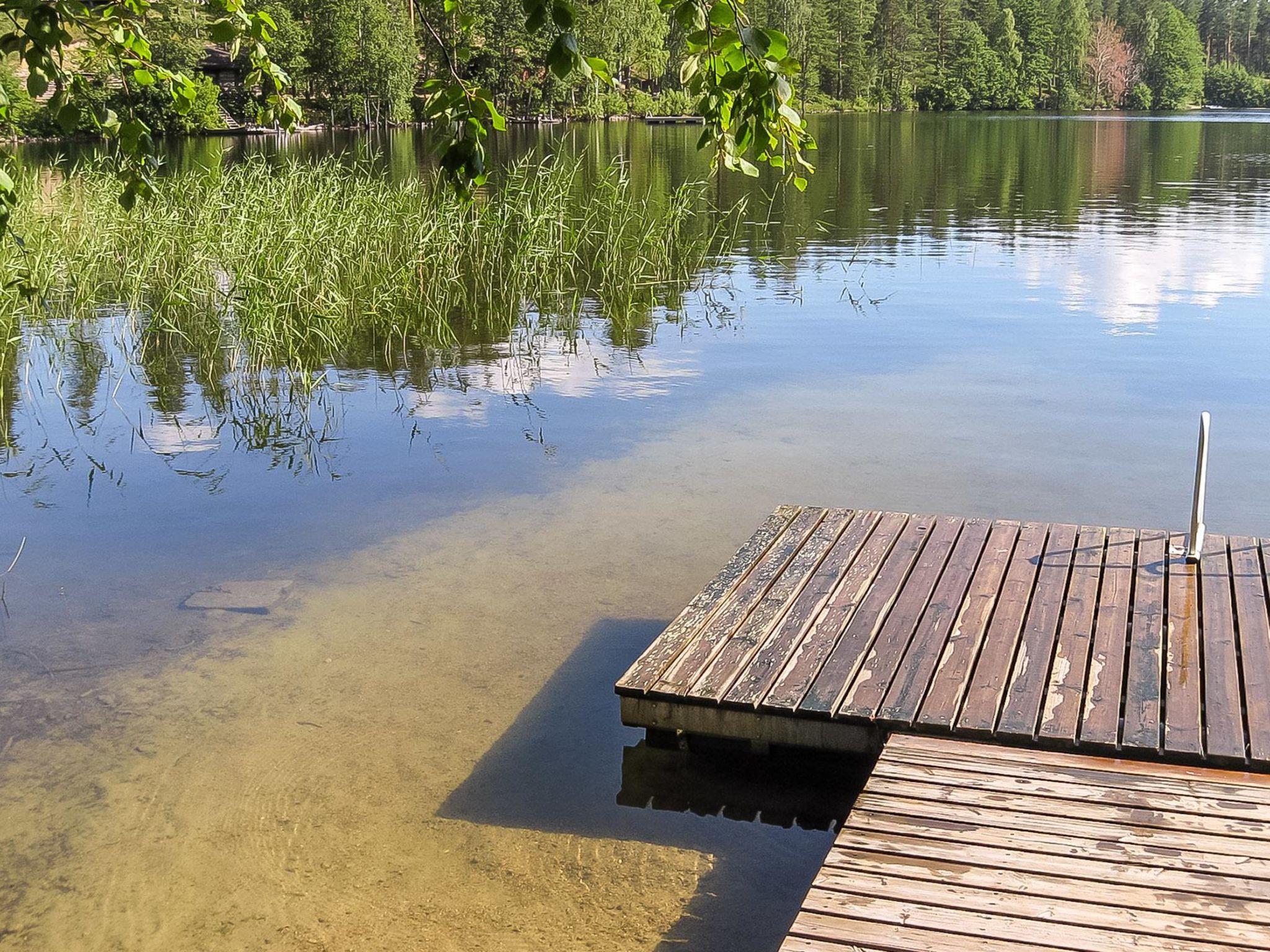 77 km north of Joensuu, Pond Käränkälampi 50 m (length 2 km, width 1,5 km), common beach with shallow hard sand bottom, jetty, no boat. Downstairs apartment of wooden/concrete flat 1990, kitchen-living room with convertible sofa, bedroom with double bed, washroom and sauna (elec. stove).