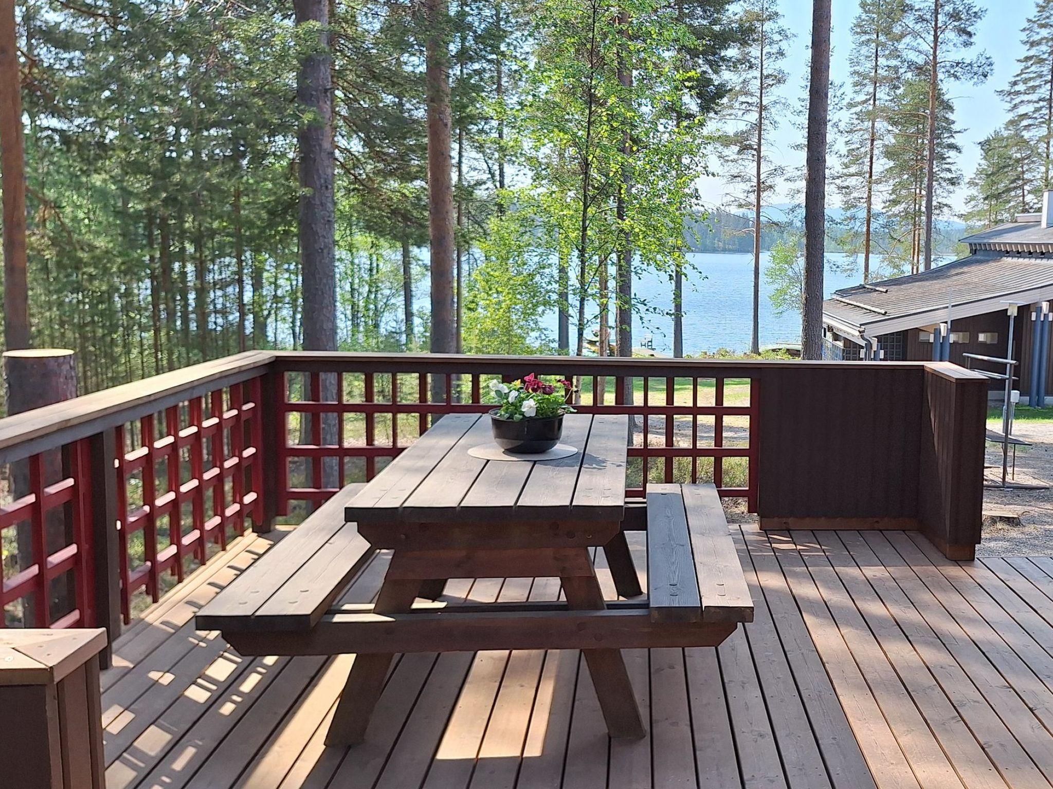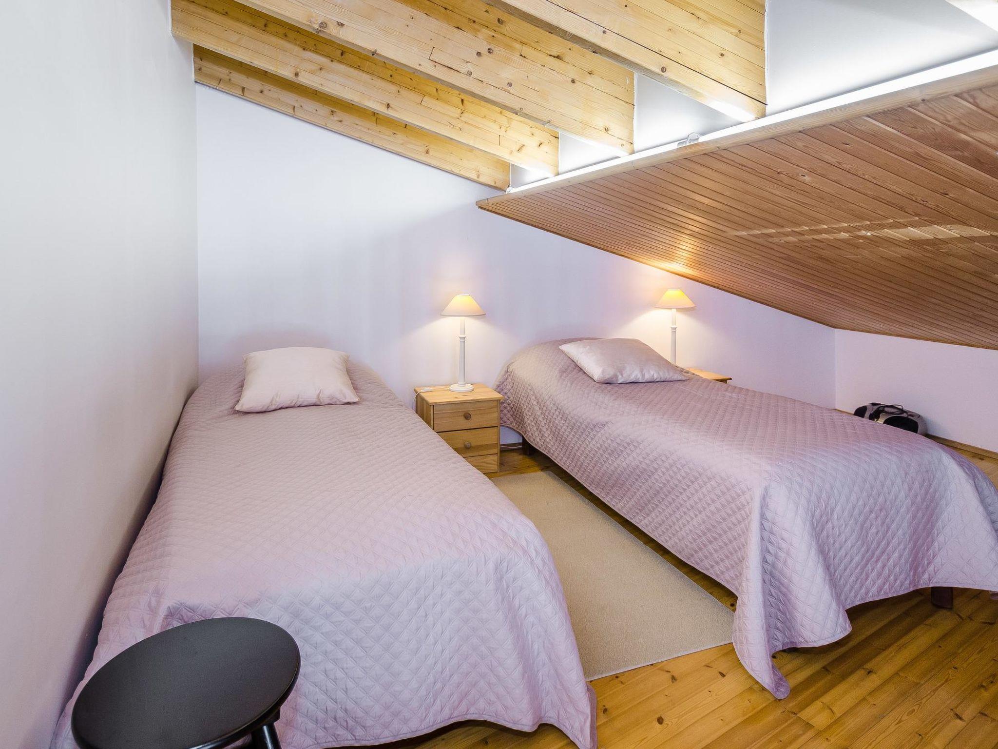 77 km north of Joensuu, Pond Käränkälampi 20 m (length 2 km, width 1,5 km), common beach with shallow hard sand bottom, jetty. Wooden/concrete flat 1990, kitchen-living room, bedroom with double bed, bedroom with 1 bed, bedrooms with double bed (140 cm), sleeping gallery with two beds, dressing room, washroom, sauna (elec. stove), veranda and balcony.