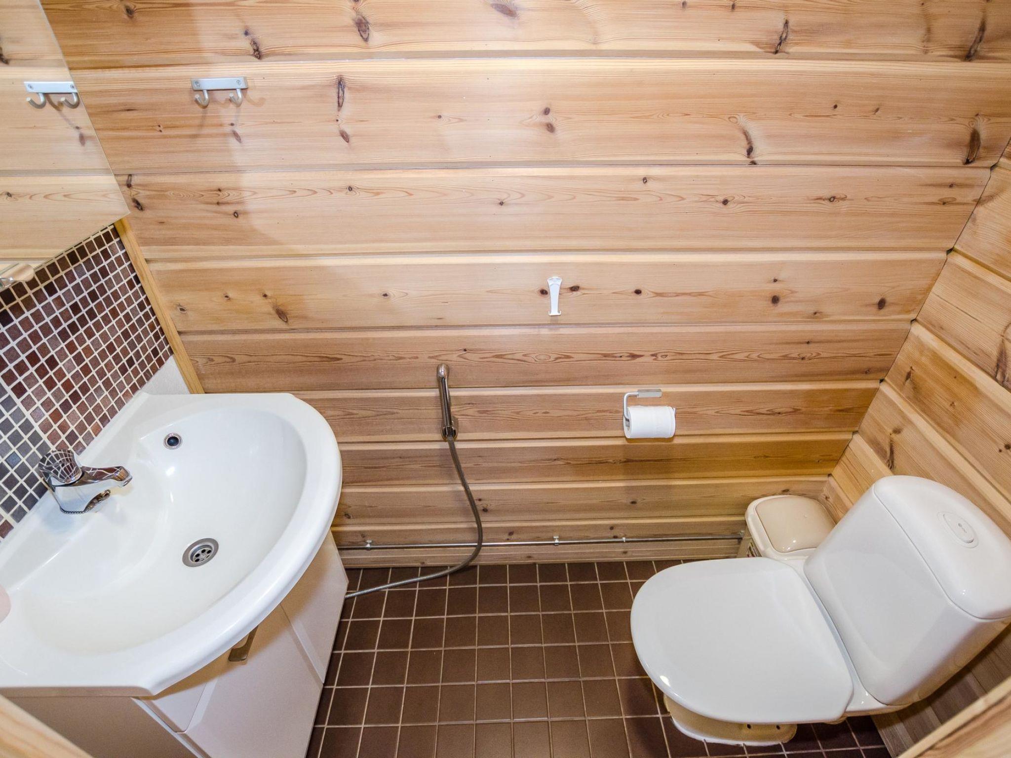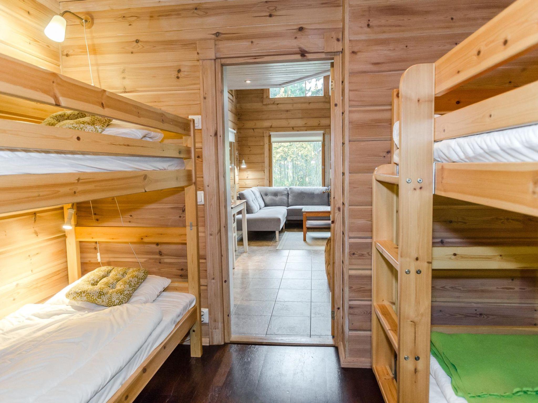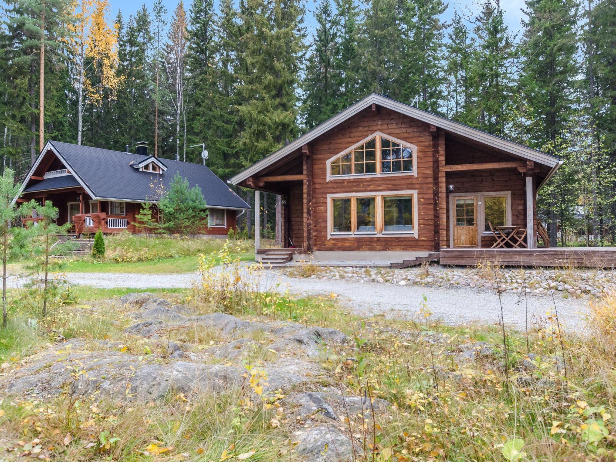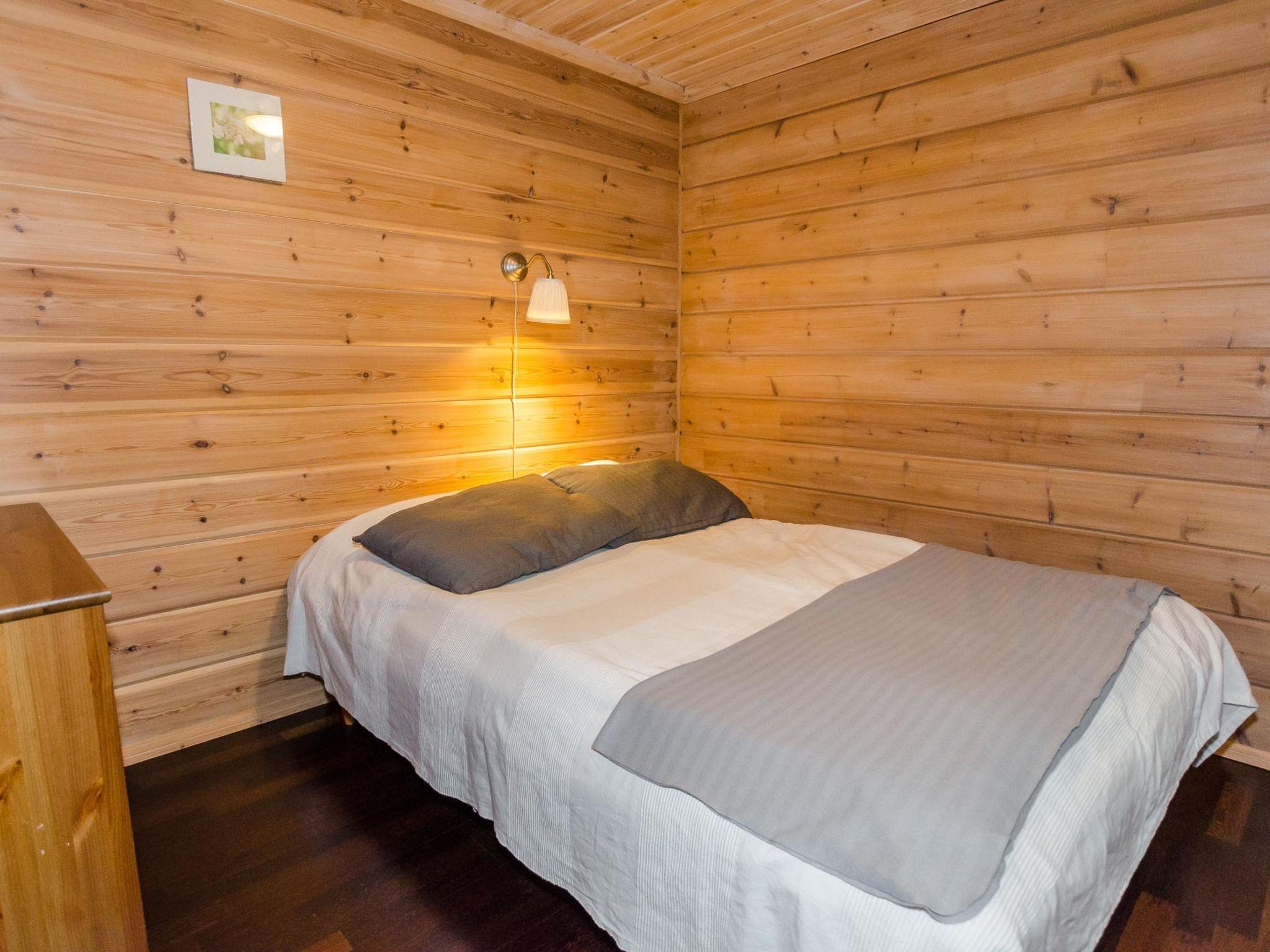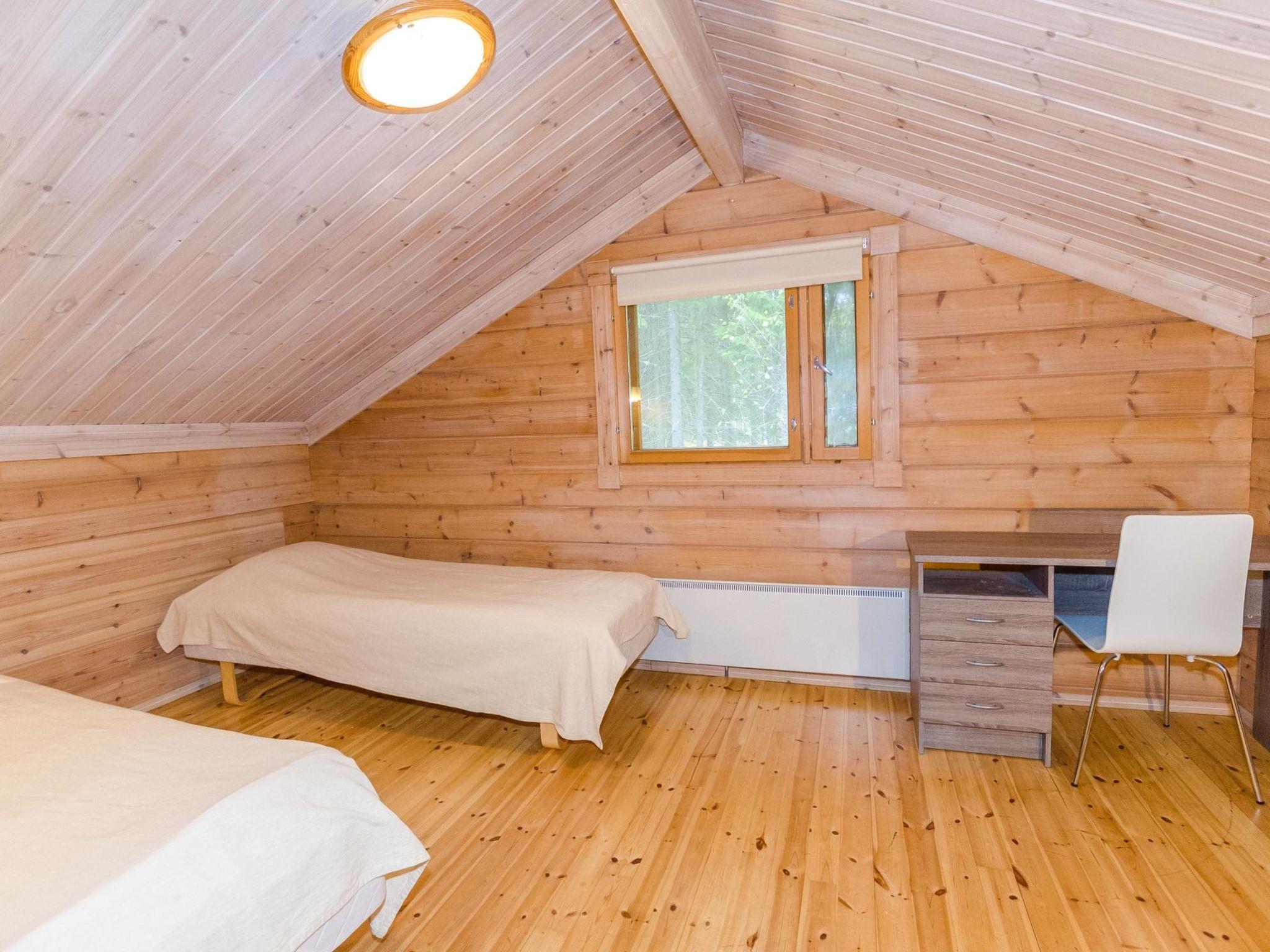 72 km north of Joensuu, Lake Pielinen 150 m (871,2 km²), common beach with shallow sandy bottom. Kayak. Log cottage 2007, kitchen-living room with convertible sofa, bedroom with one bed, bedroom with 2 bunk beds, upstairs one bed room (15 m²) with 2 beds and 2 mattresses, washroom, sauna (elec. stove), terrace.