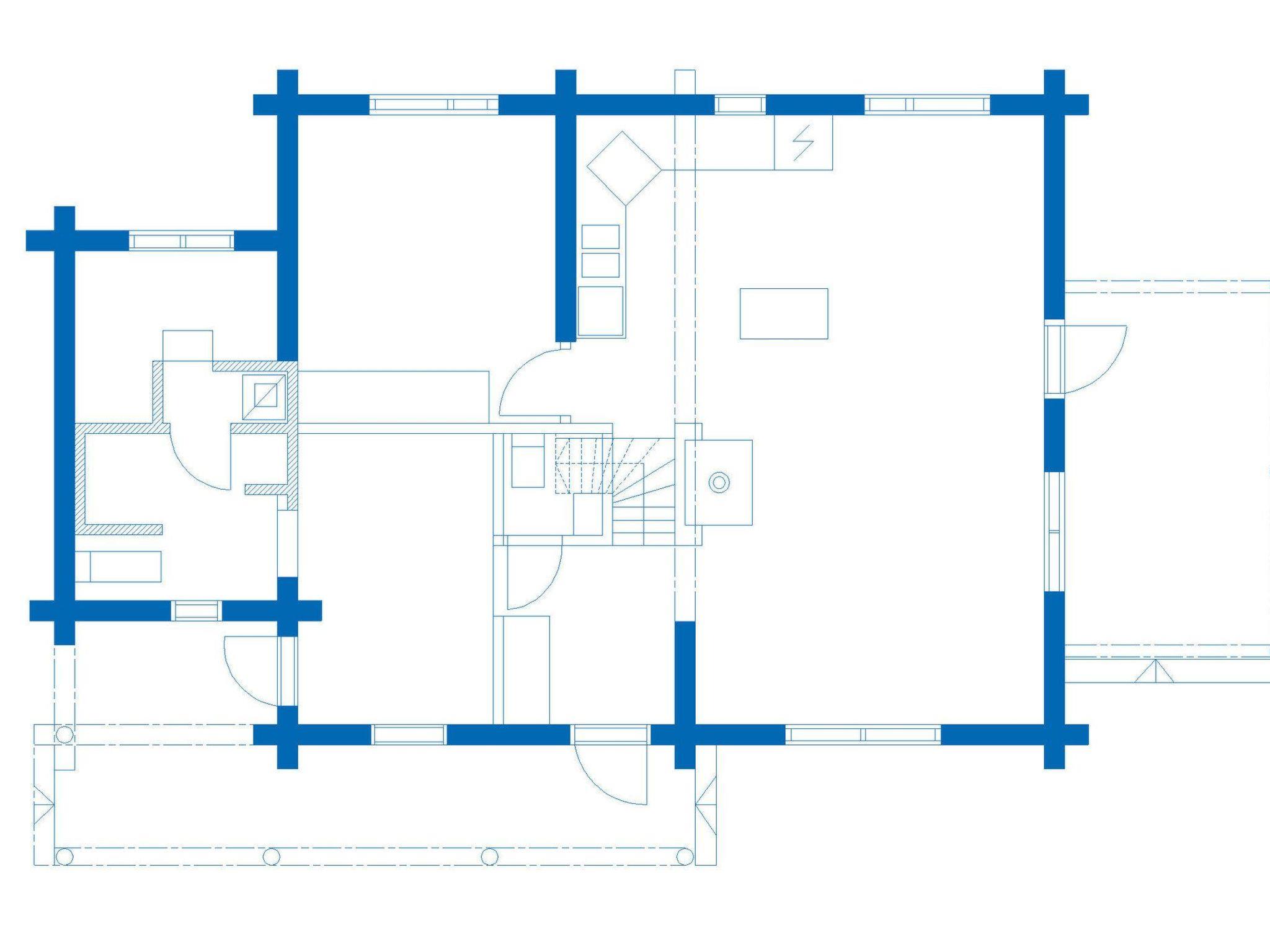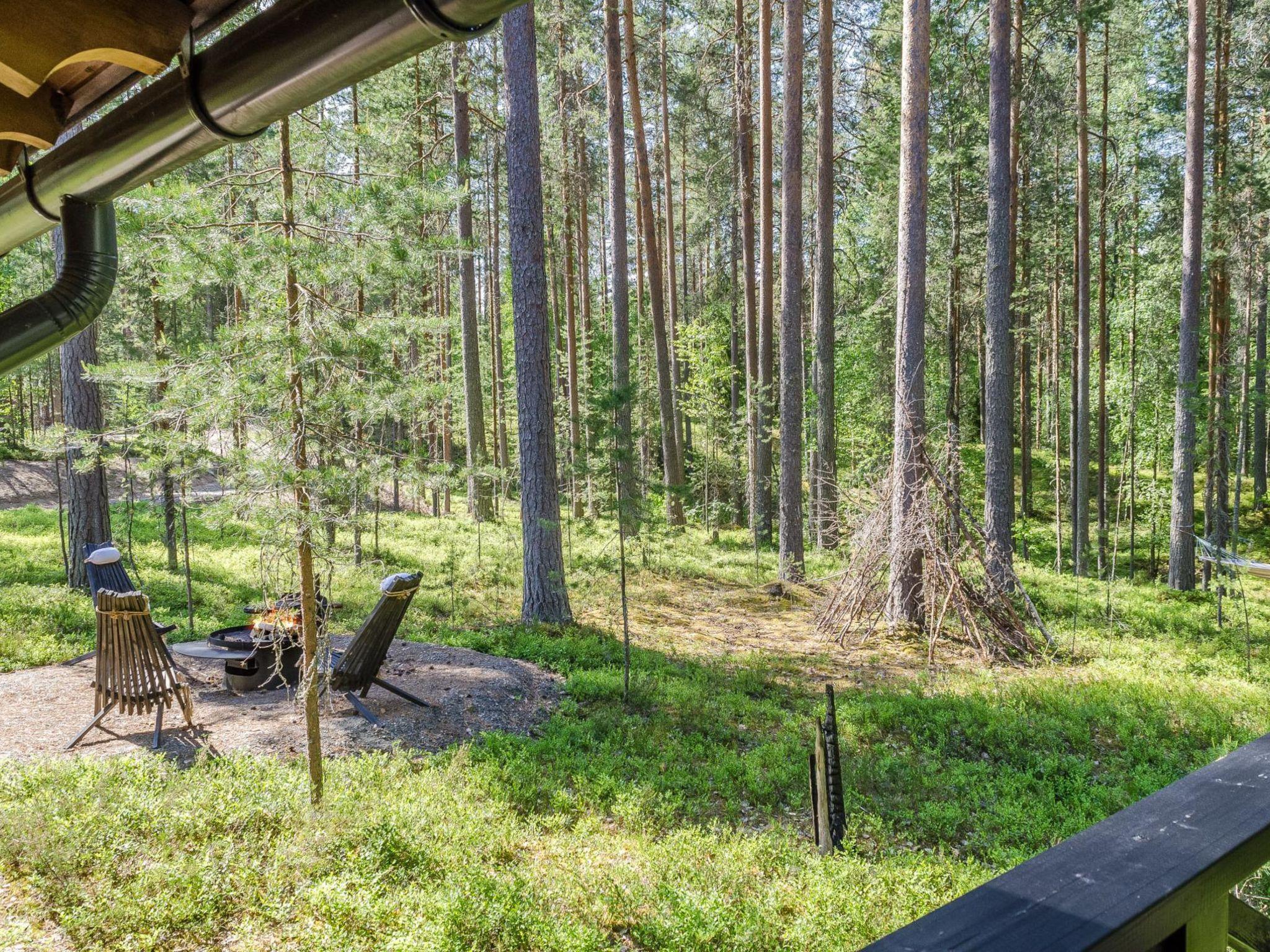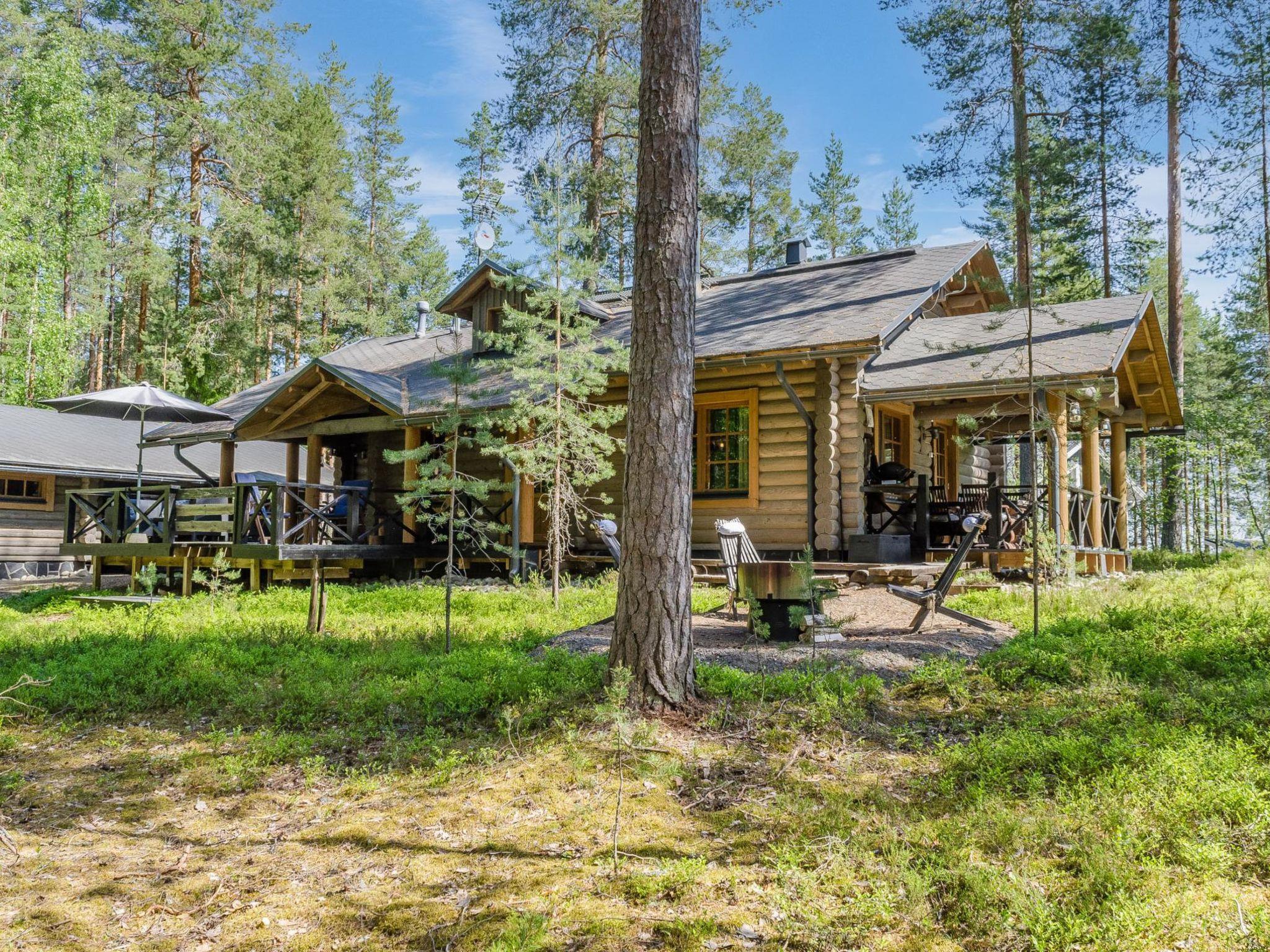 Log cabin 2006. Area 80 m² + loft, on the ground floor living room/kitchen (sofa bed for 2 persons), bedroom with a double bed, 2 beds in the loft, sofa bed in the dressing room, washroom, unique wood-heated sauna, 2 terraces, ski storage, and carport. The terrace faces the forest and there is an electric grill and a fixed grill in the yard.