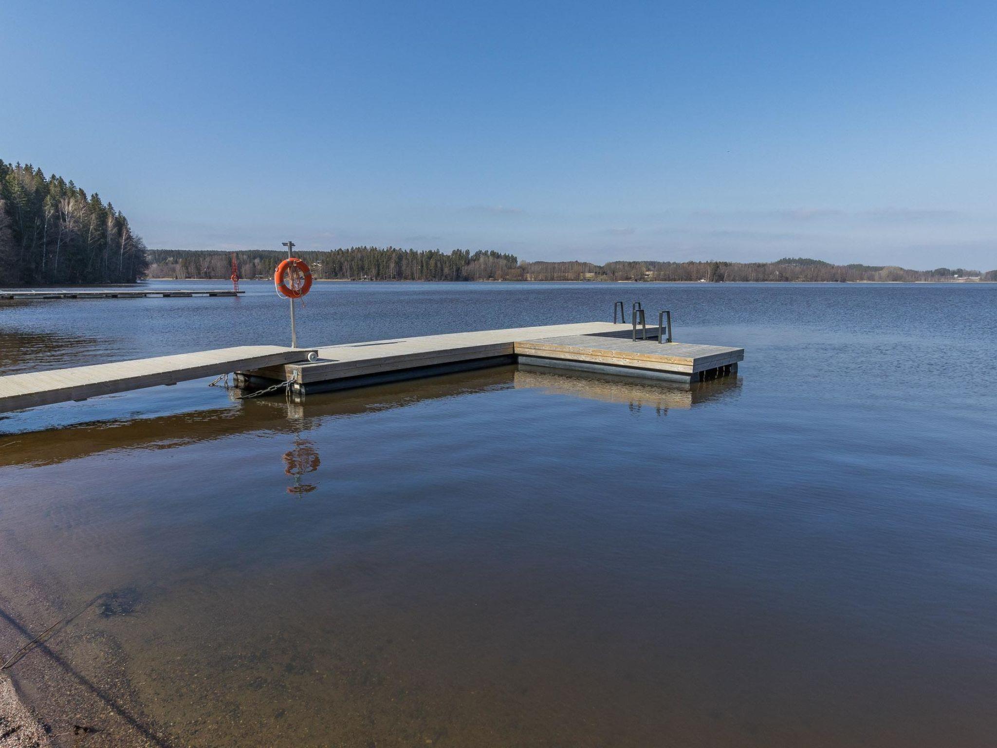 Lake Lohjanjärvi is approx. 150 meters away, offering a shared swimming beach with a gradually deepening sandy bottom. In summer, a lakeside kiosk serves pizza, allowing you to enjoy lake views. A lakeside sauna and grill hut can also be rented separately.