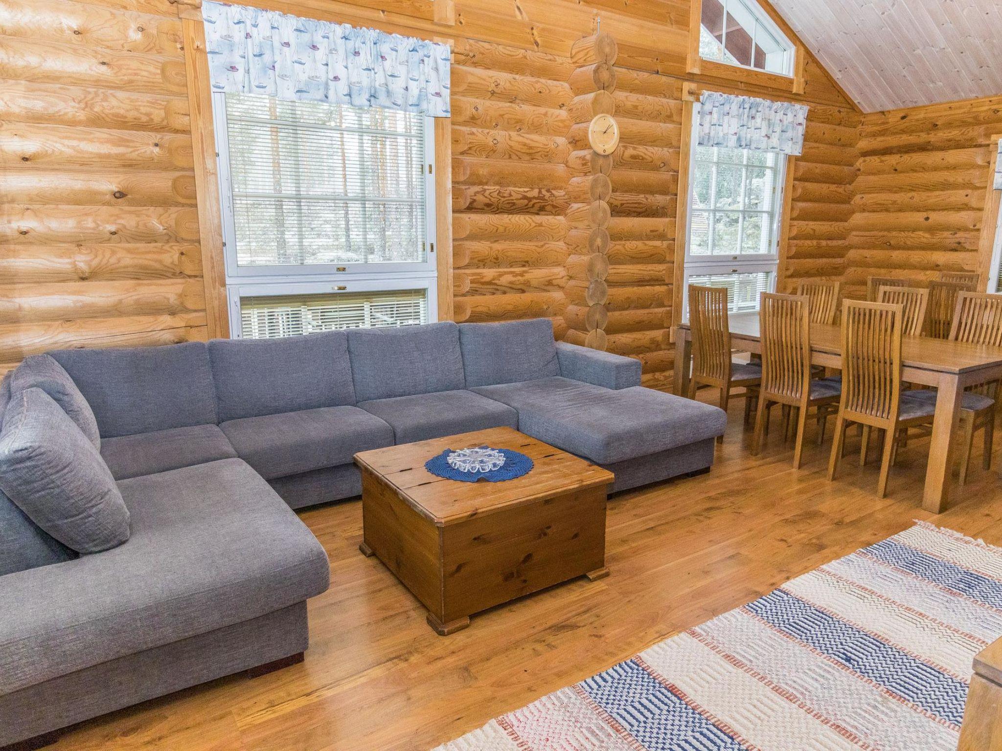 This magnificent 180 m² round log villa, built in 2006, provides the perfect setting for unforgettable celebrations and relaxing holidays. Additionally, a separate 50 m² guest cabin offers ample extra space for accommodation. The villa's spacious and atmospheric interiors, combined with its natural surroundings, make it an ideal venue for family celebrations, corporate events, or weekend getaways. Dining tables can be combined, seating up to 18 guests comfortably around one table.