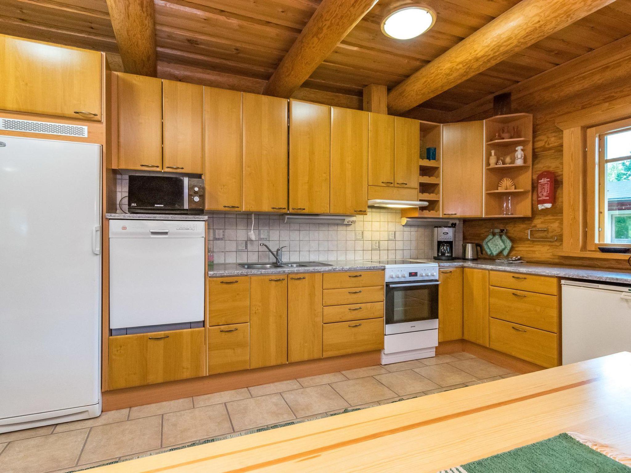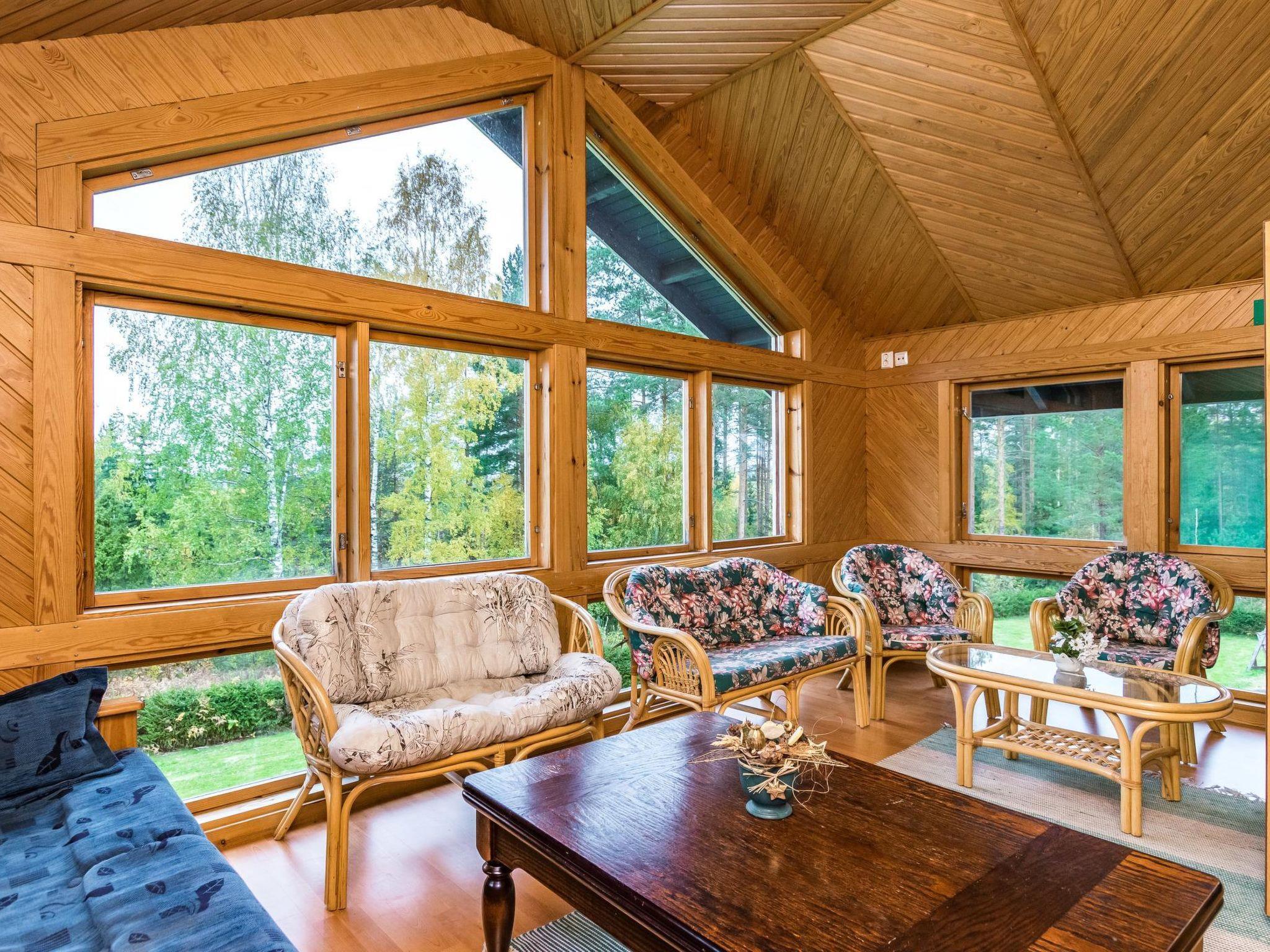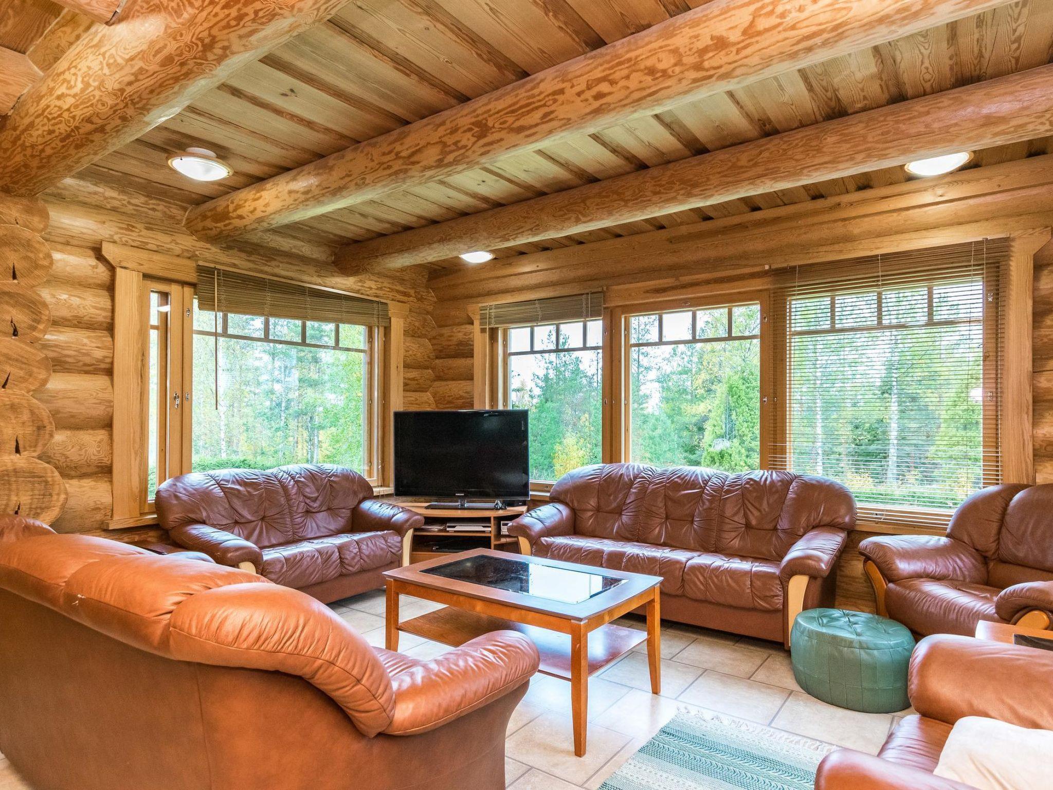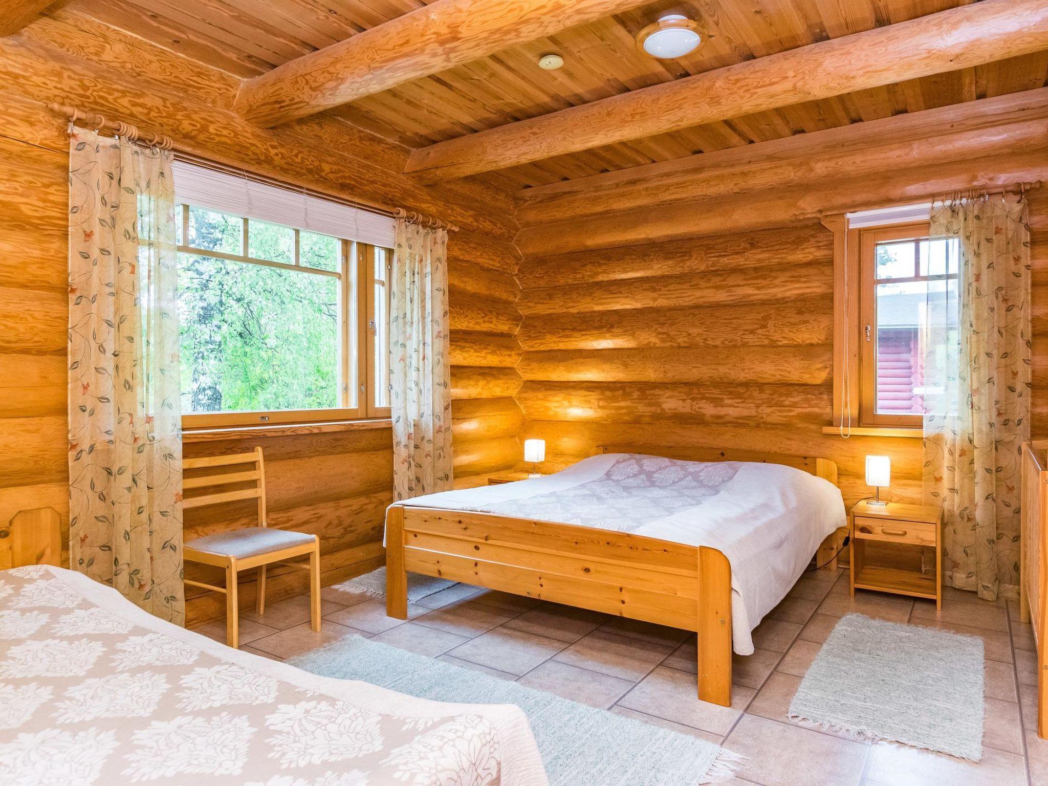 Log cottage 2005, kitchen, living room, bedroom double bed and 1 bed, upstairs bedroom 1 bed, bedroom double bed + 1 bed, bedroom double bed, bedroom double bed and 1 bed, upstairs lobby 2 extra beds, washing room, dressing room, sauna (elec. stove), two open porch and two glazed porch. Cottage has two showers and two toilets. Separate sauna building (10 m²), sauna has elec. light and cold water pipe. Car port.