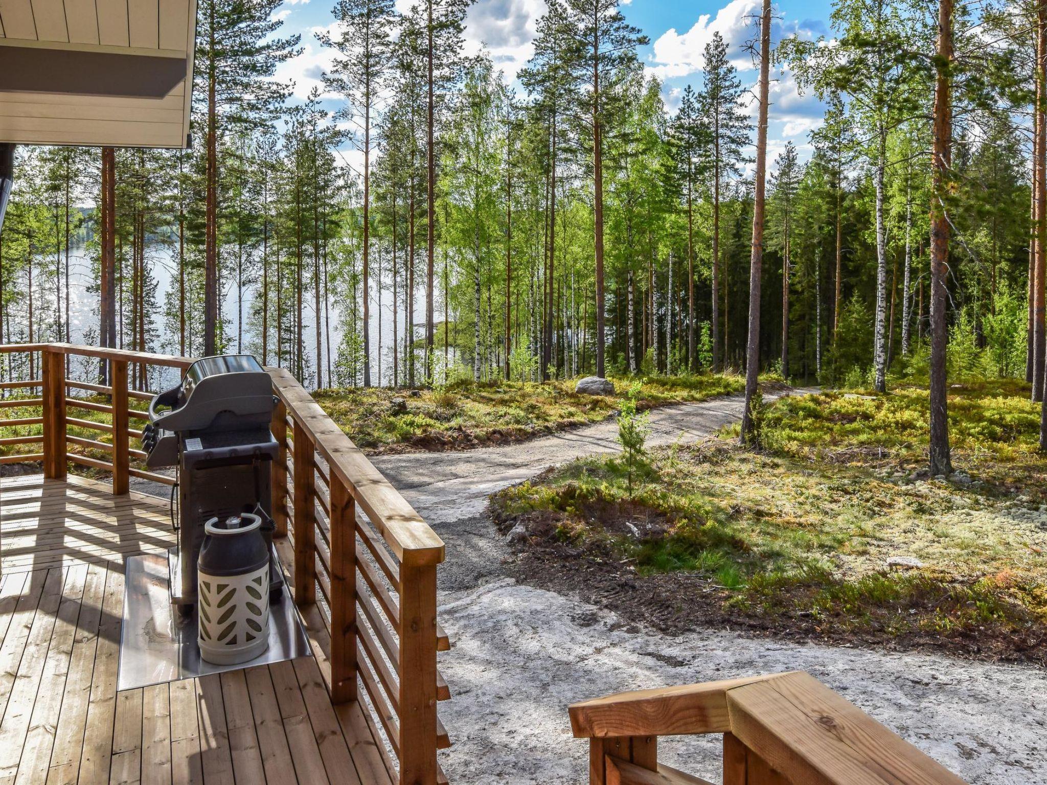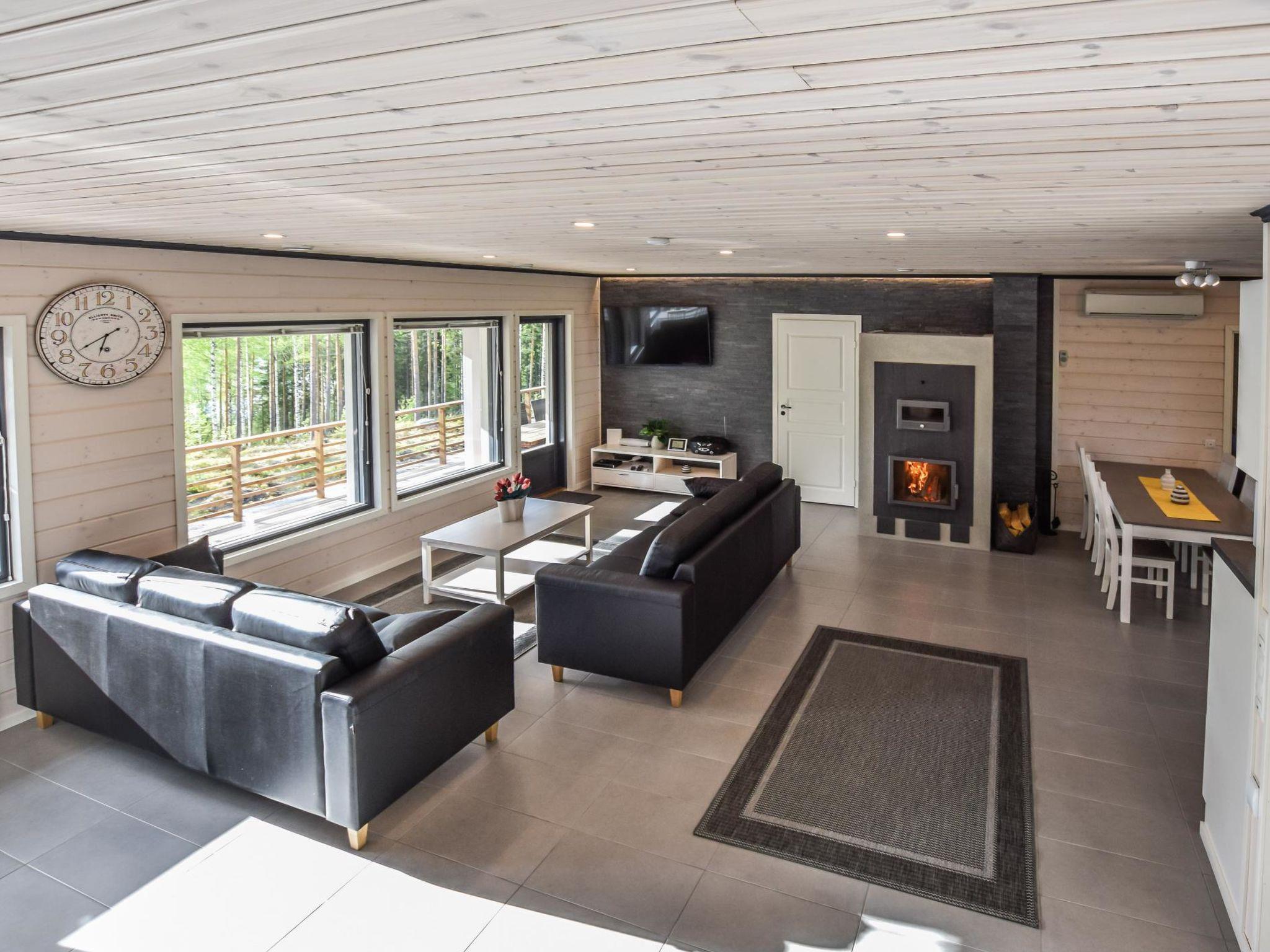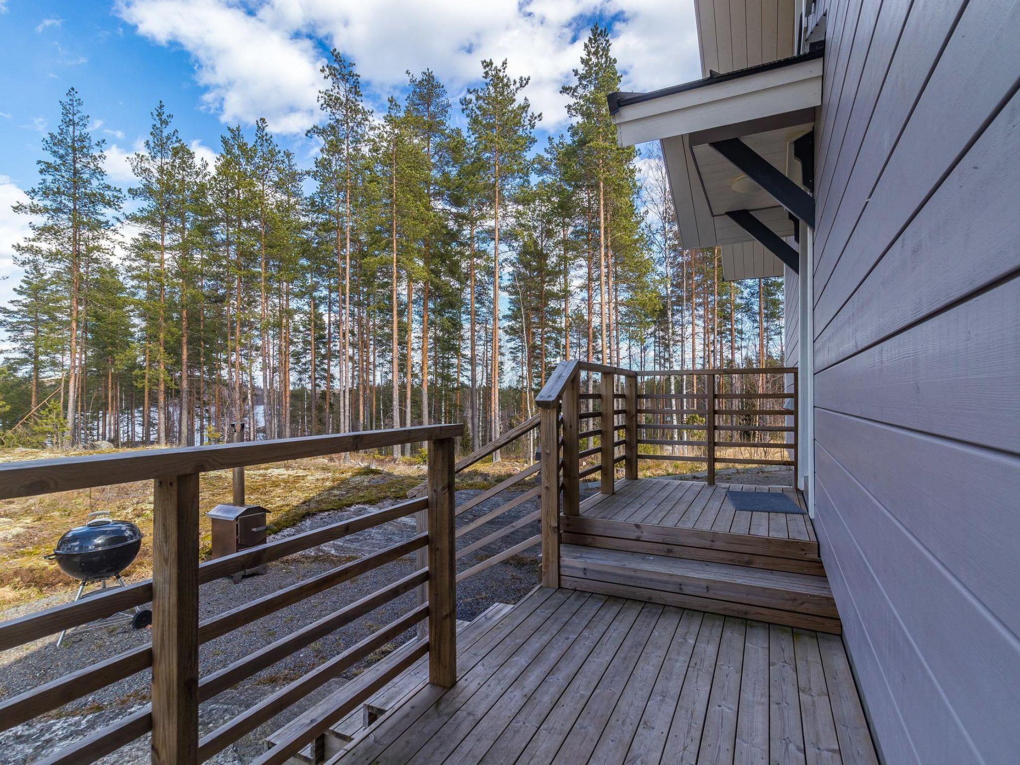 Wooden house 2017, kitchen, living room, bedroom 2 beds, second bedroom 2 beds, third bedroom 2 beds + a bed for child (low railing, length of the bed is about 150 cm), fourth bedroom 2 beds + baby travel cot, upstairs (steep stairs) two small bedrooms (max hight 192cm) 2 beds in each. Utility room, shower room with 2 showers, sauna (electric stove), covered terrace with 12-person dining table.