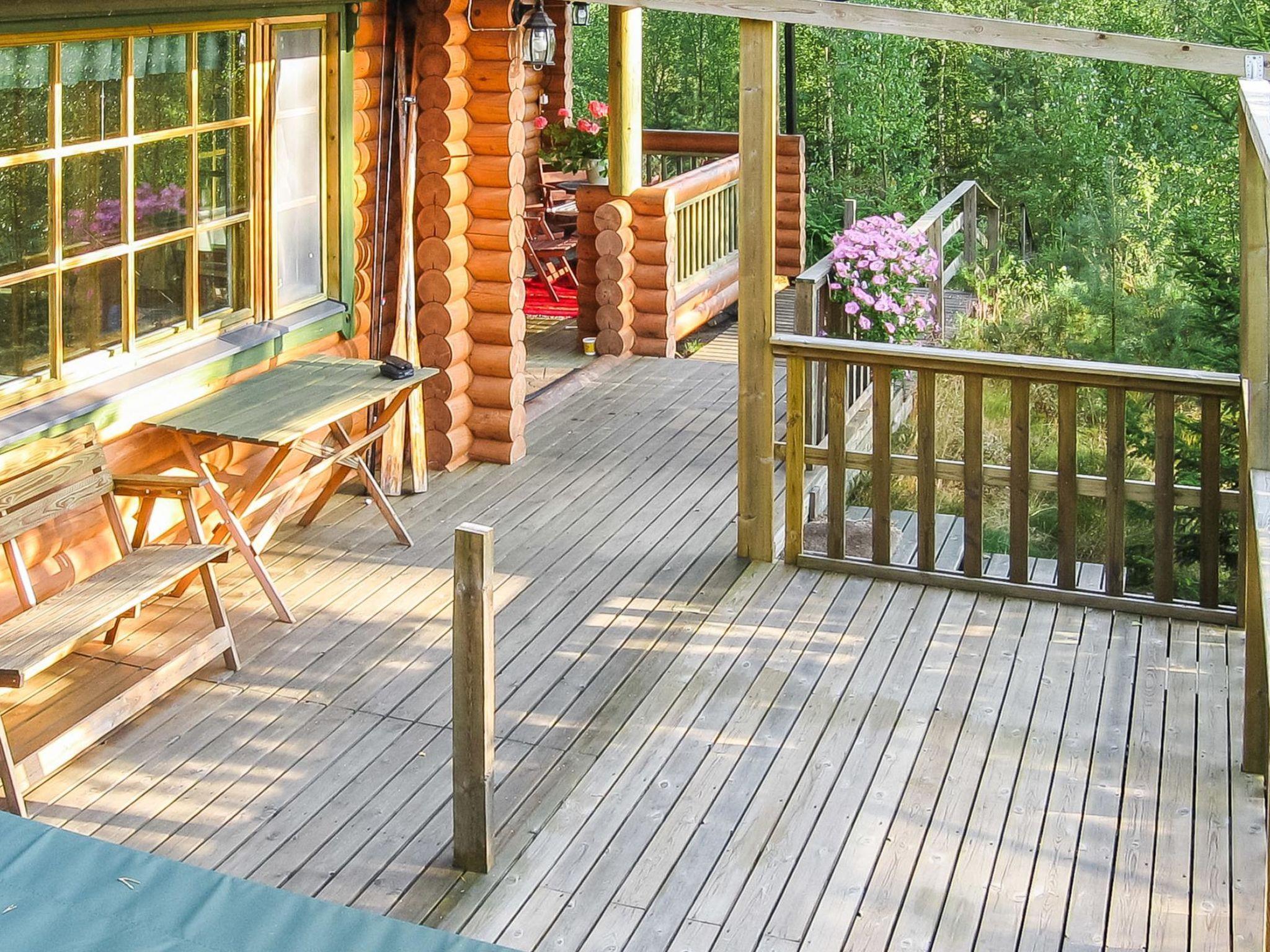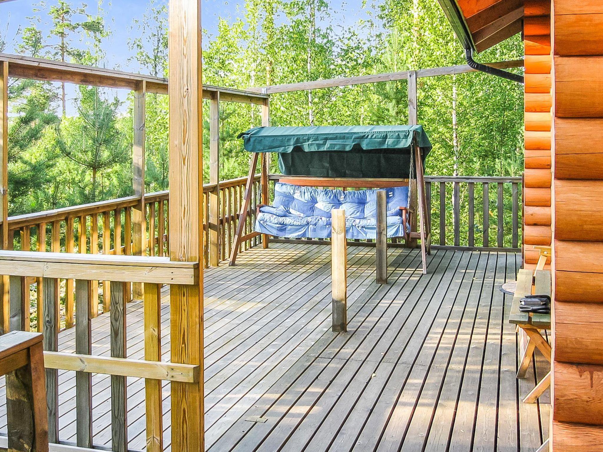 55 km west of Jyväskylä, lake Asunnanjärvi 60 m (length 3 km, width 800 m), shallow, hard sanded bottom, own boat. Log building 2000, living room/kitchen with 2 extra beds, 2 bedrooms 2 beds in each, dressing room, washroom, sauna (electric stove), 2 x open porch.