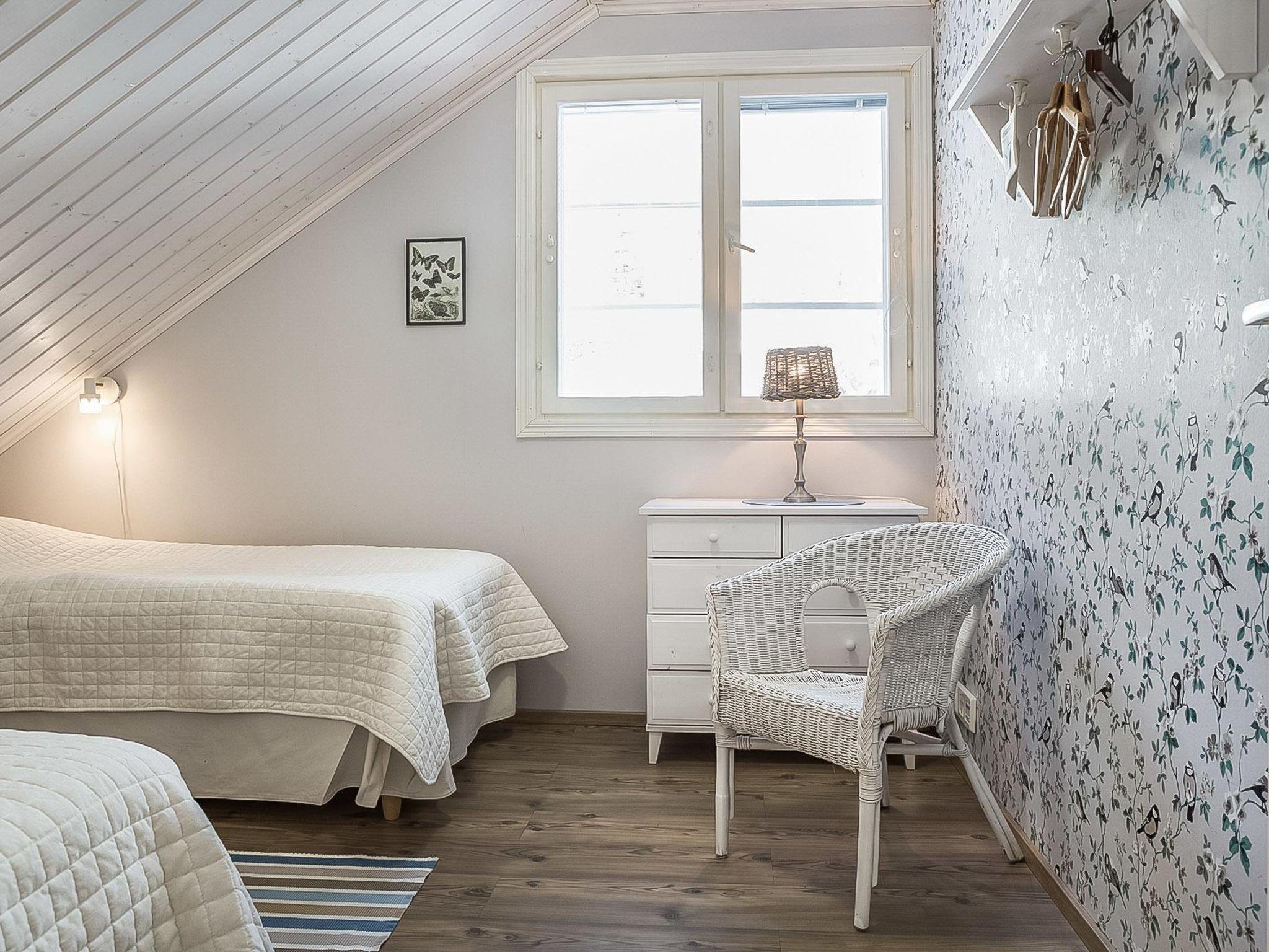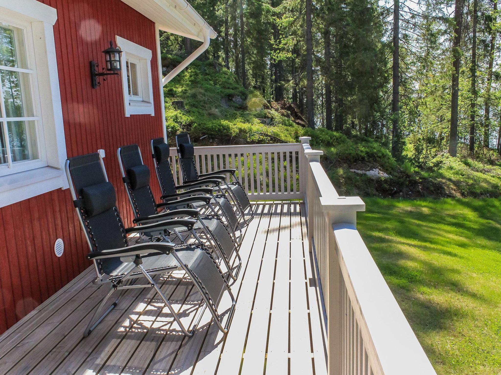 A wooden house and lake shore sauna 2011, on the ground floor a spacious kitchen, a bedroom with two beds, laundry room and terraces on both sides of the house. Upstairs 3 bedrooms with two beds each, living room, bathroom/wc/shower and balcony.