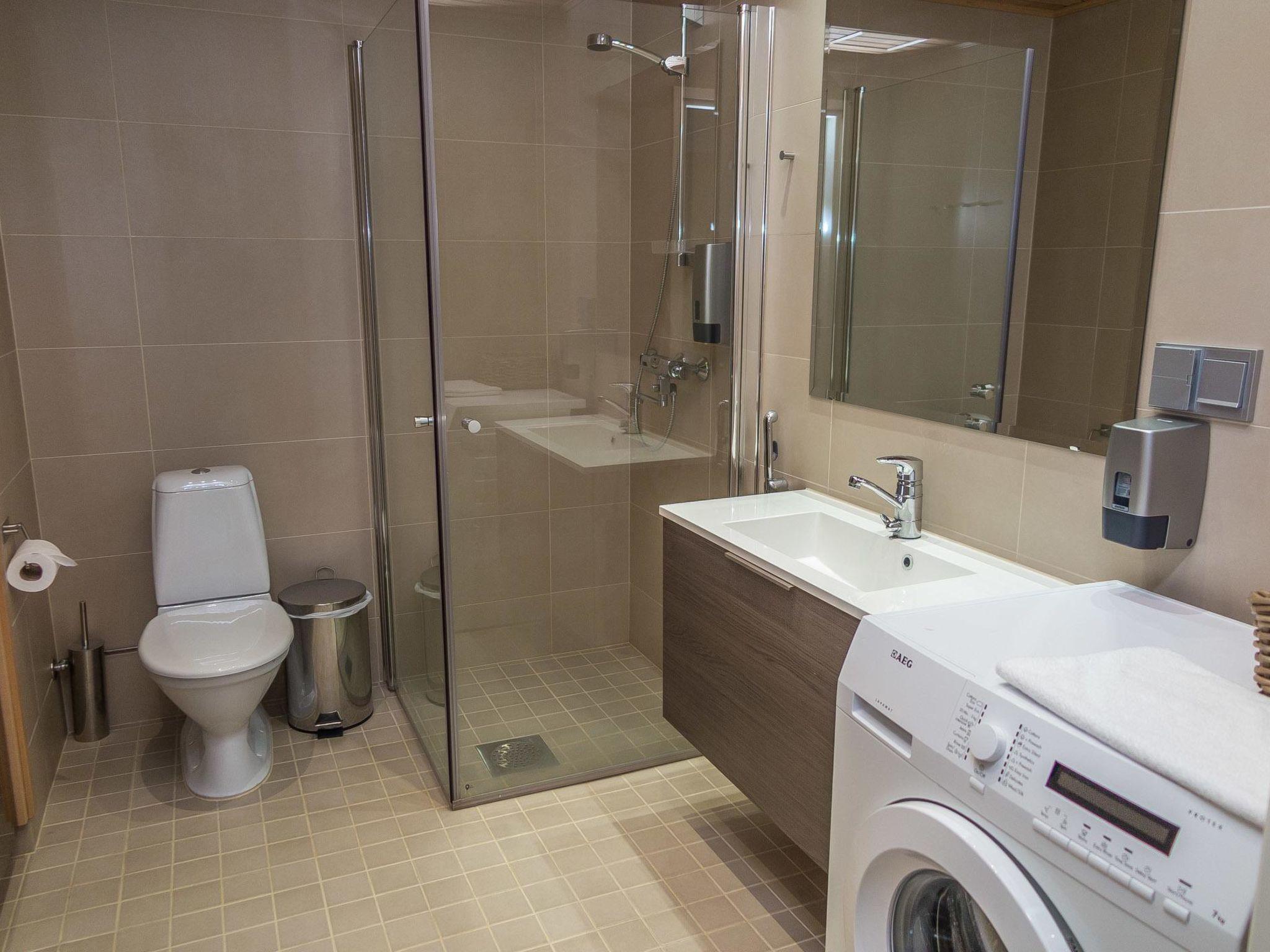 High standard apartment situated in the heart of Tahko center, kitchen-living room sofa bed 2 extra beds, bedroom with double bed, bedroom with one bed (width 120 cm), shower room, WC, sauna (electric stove), glazed balcony. 2 TVs, one in the living room and another in the bigger bedroom. Air-conditioning and wireless Internet. There is no window in the smaller bedroom.