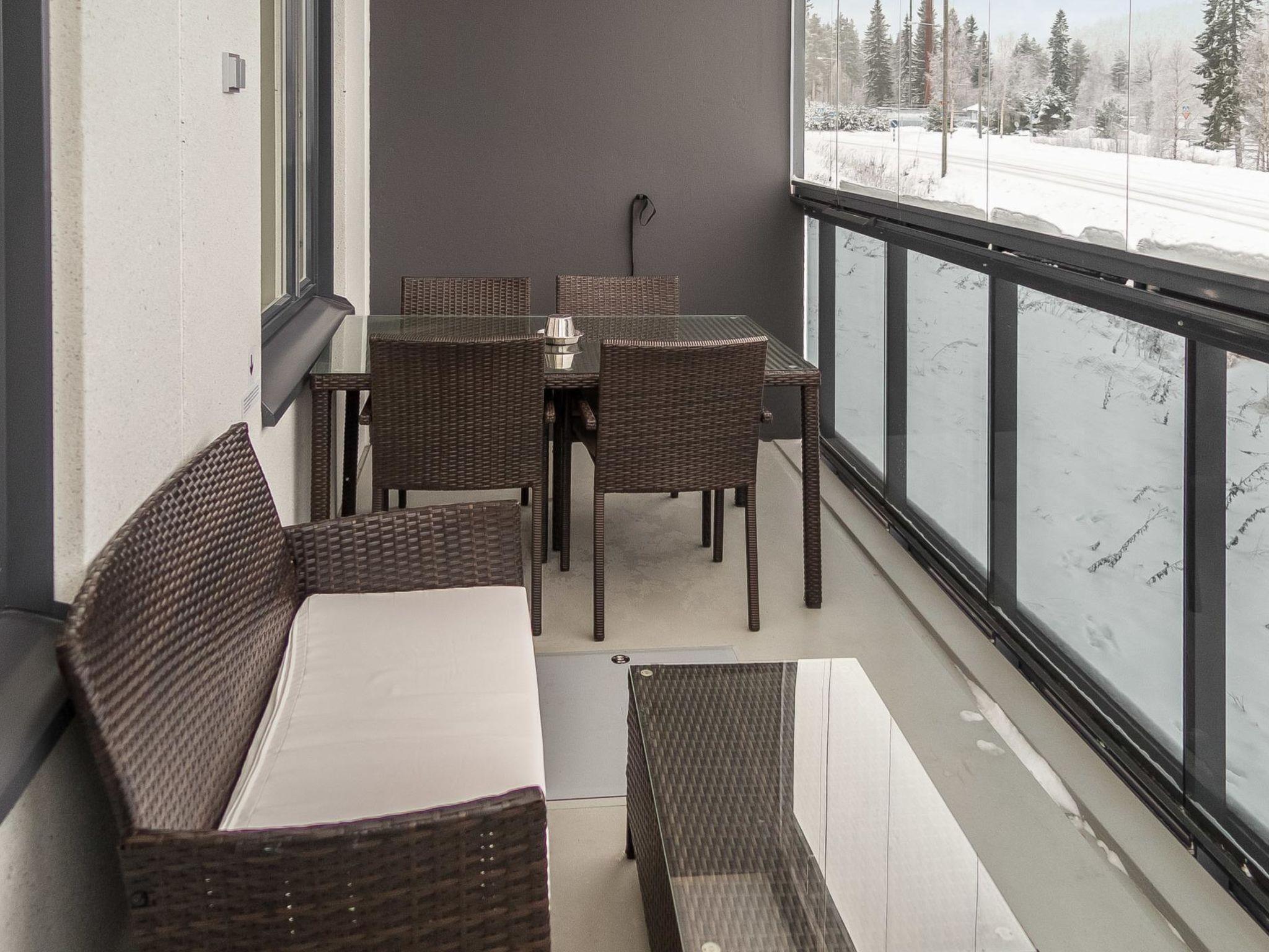 High standard apartment situated in the heart of Tahko center, kitchen-living room sofa bed 2 extra beds, bedroom with double bed, bedroom with 2 beds, shower room, WC, sauna (electric stove), glazed balcony. 2 TVs, one in the living room and another in the bigger bedroom. Air-conditioning and wireless Internet. In smaller bedroom there might not be window.