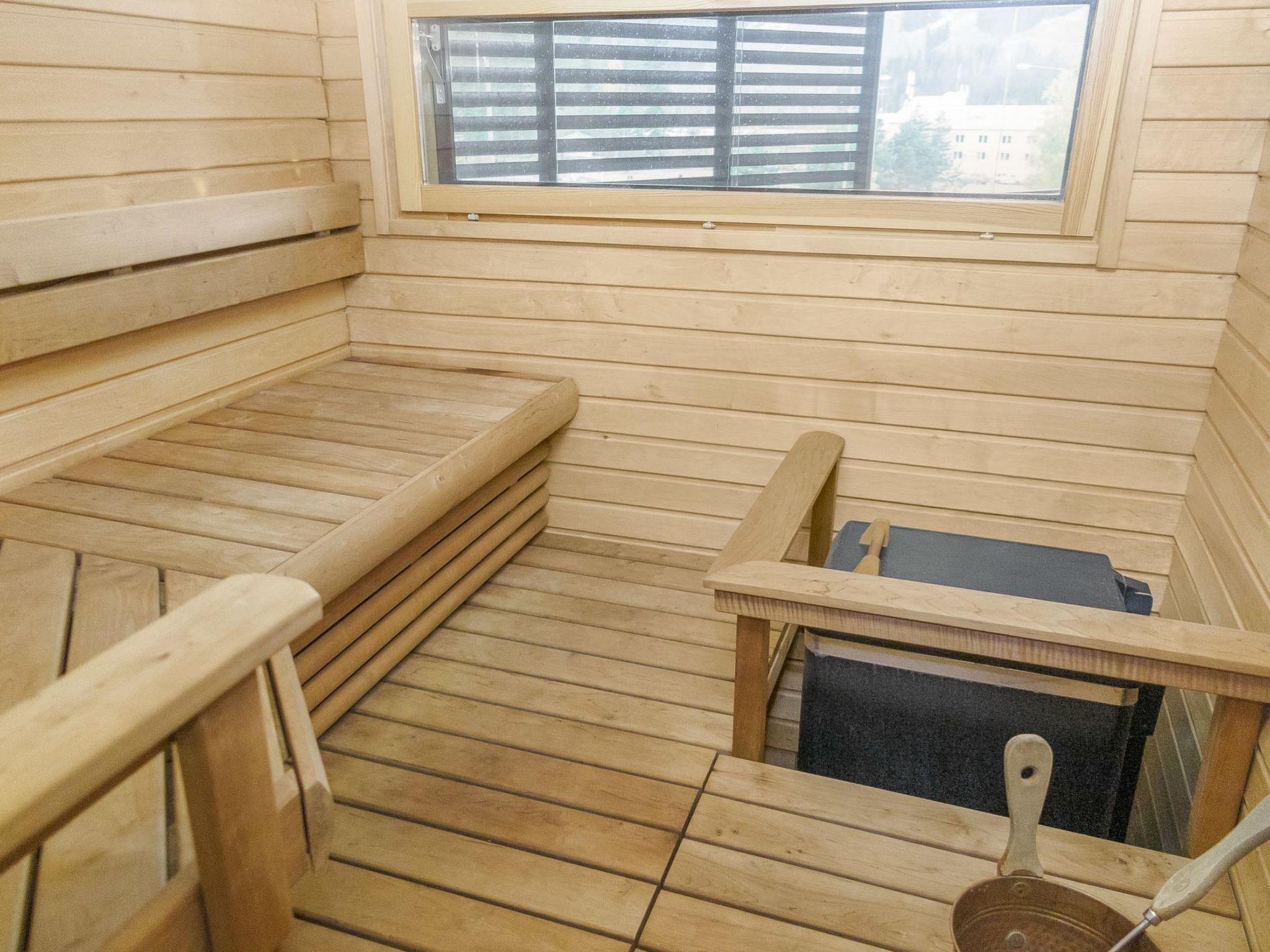 Apartment has own sauna with electric stove of the ‘ever-ready’ type. Each bedroom has its own shower and WC. Additionally, the sauna and washroom has a shower and WC. Hall has clothes closet. The fireplace in the apartment in not in use.