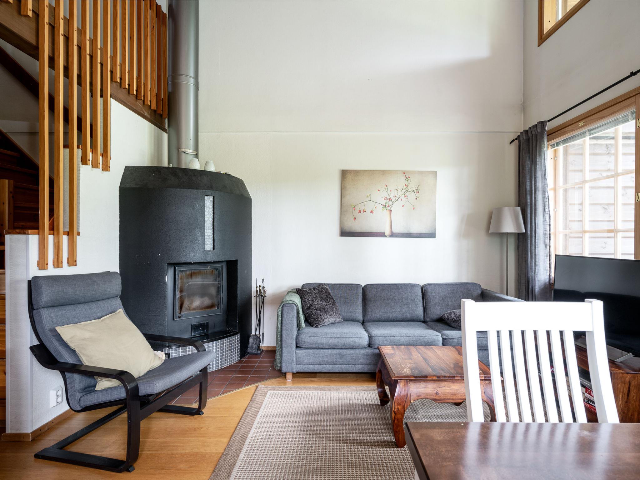 In this semi-detached apartment you have downstairs a living room/kitchen, a bedroom with doublebed, a washroom, a separate toilet, sauna (electric stove), a hall and a terrace. The loft has a bedroom with 2 beds and 2 extra beds in the lobby lof the loft. 5 G Wi-Fi access. Air source heat pump for additional heating and cooling.