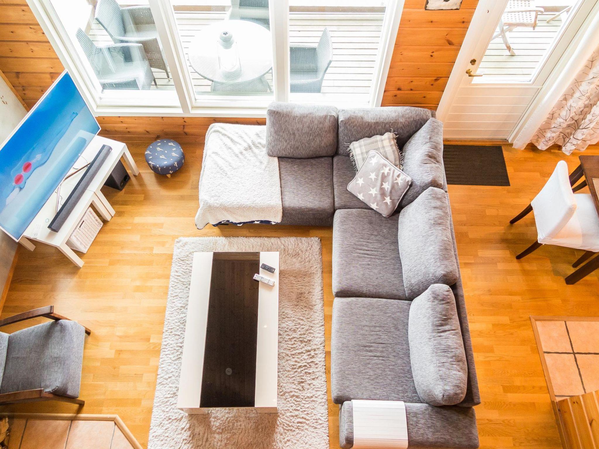 This cosy and comfortable apartment consists of three floors; on the first floor there are 2 bedrooms with 2 beds in each, living room, washroom (2 showers), sauna (electric stove), separate toilet and balcony.
