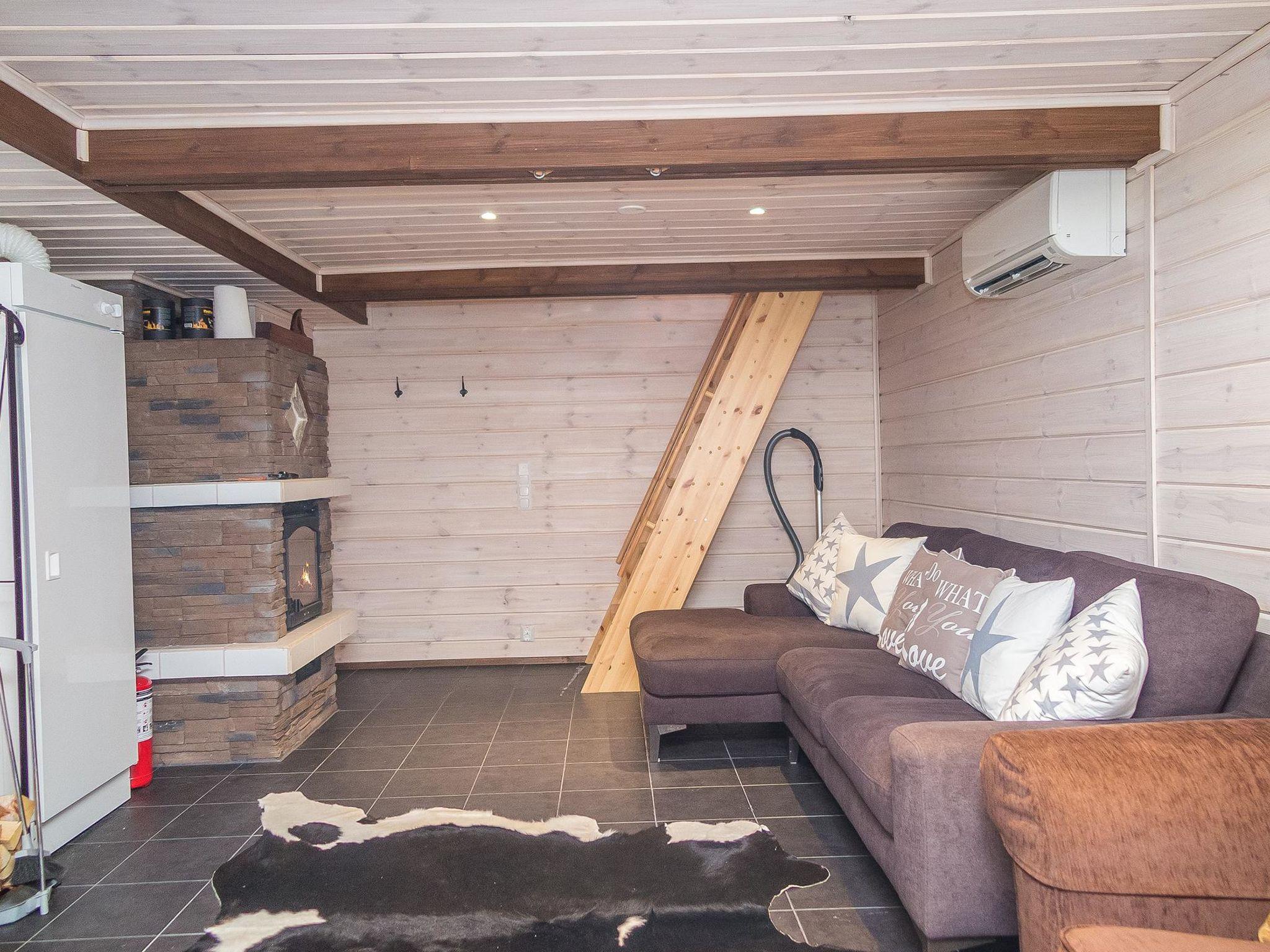 Downstairs living room with fireplace, washroom (2 showers and another toilet), sauna with wood-burning stove. There are steep stairs to the ground floor, but the ground floor can also be reached by turning around from the outside.