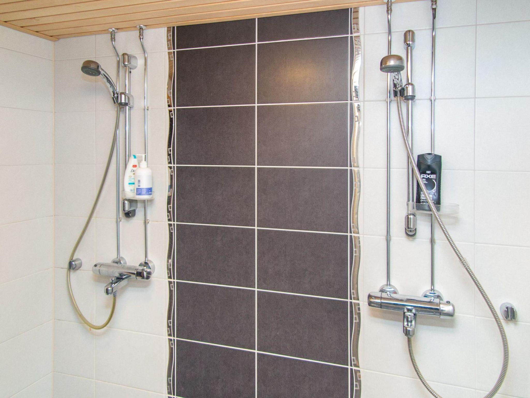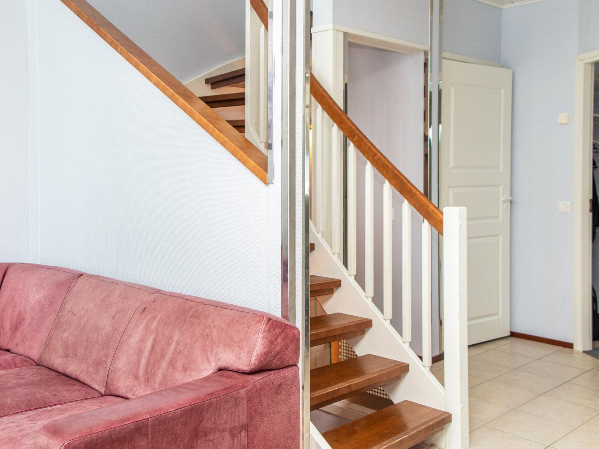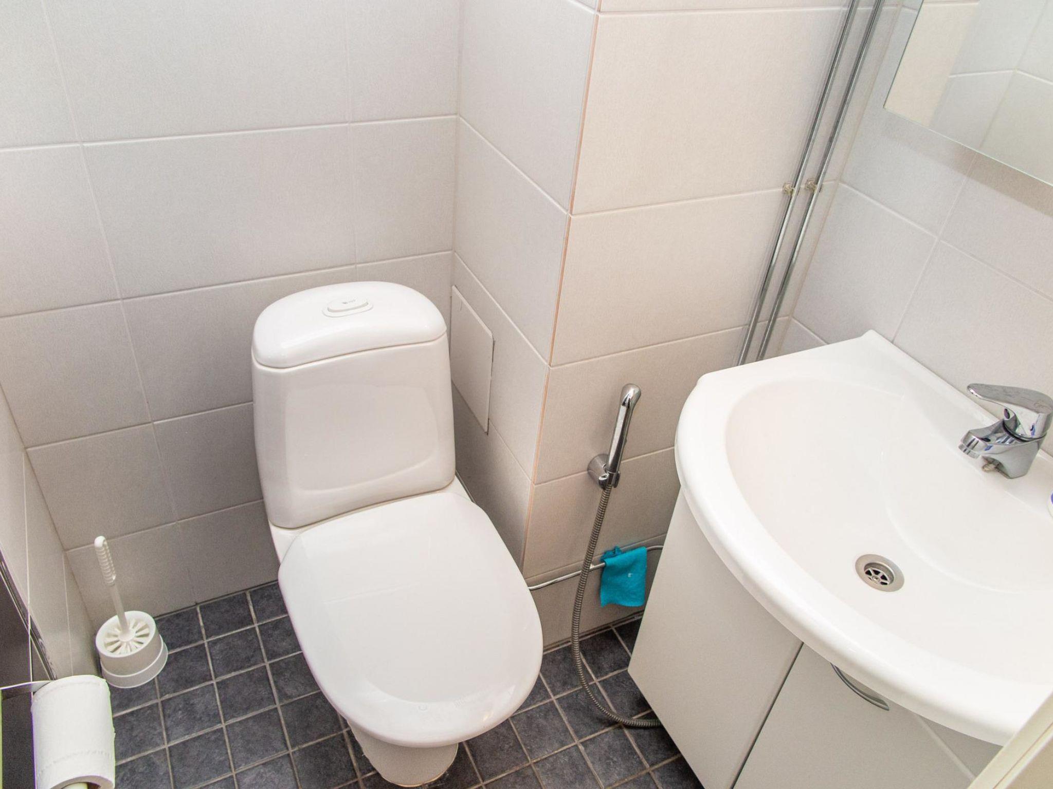 Wooden apartment from 2006, on the middle floor a kitchen, a bedroom with a double bed, an entrance hall, a separate toilet and a terrace. Upstairs, a hall and 2 bedrooms with 2 beds each. Downstairs is a laundry room, a fireplace room with a sofa bed for 2, a utility room, a sauna (electric stove) and a terrace. Air source heat pump, which also has cooling.
