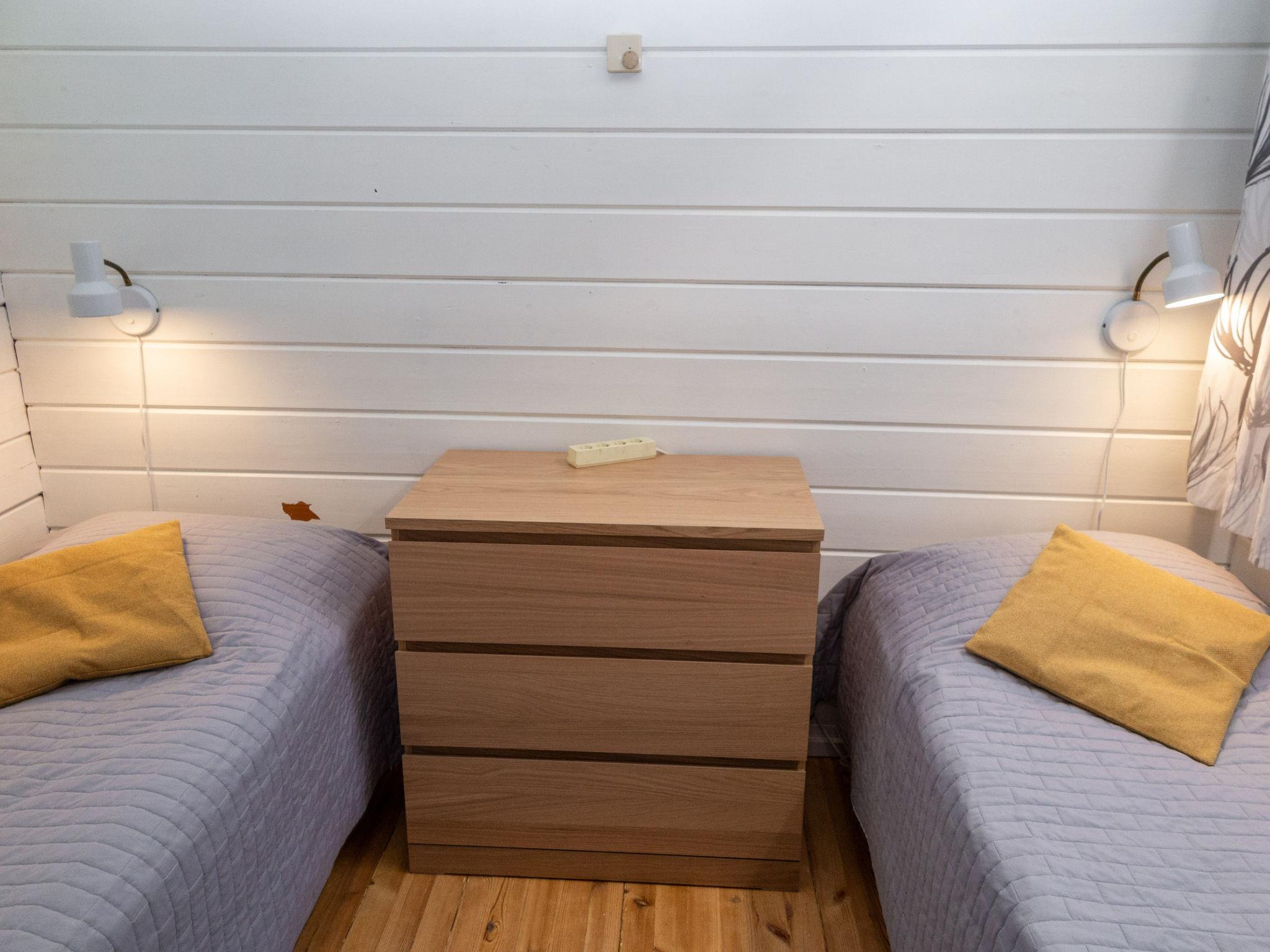 The traditional log cabin features two bedrooms, each with two separate beds. The spacious living room includes a sofa bed for two additional guests. All facilities are conveniently located on one level, including a well-equipped kitchen, entrance hall, dressing room, bathroom, and sauna. The private terrace completes the experience, inviting you to enjoy the unique atmosphere of Tahko throughout the year.