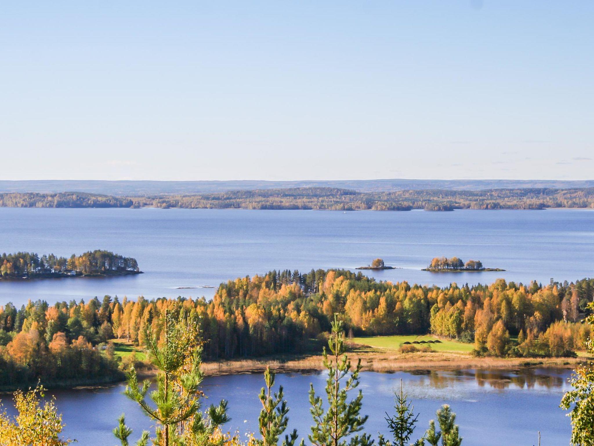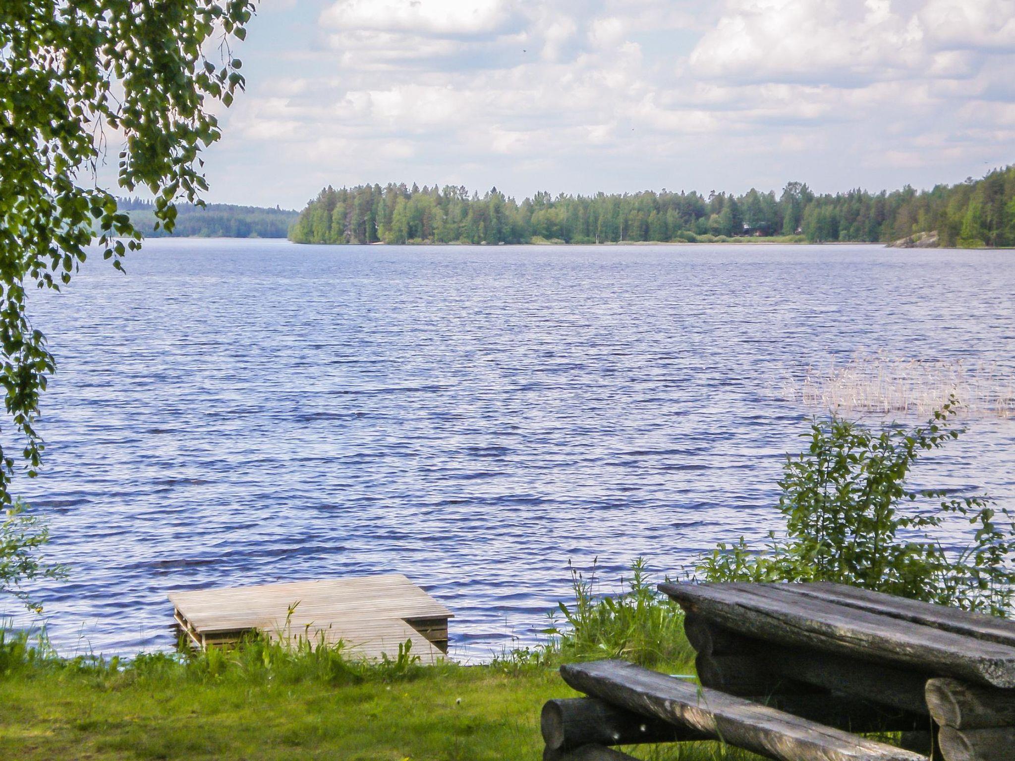 12 km south-east of Nurmes. Lake Pielinen 15 m, shallow water, firm sandy bottom. Own boat. Wooden cabin 1995, living room/kitchen, bedroom with double bed, sleeping loft with 2 beds, dressing room, washroom, sauna (electric sauna stove), open veranda, glassed-in porch. Kitchen is renovated 2016.