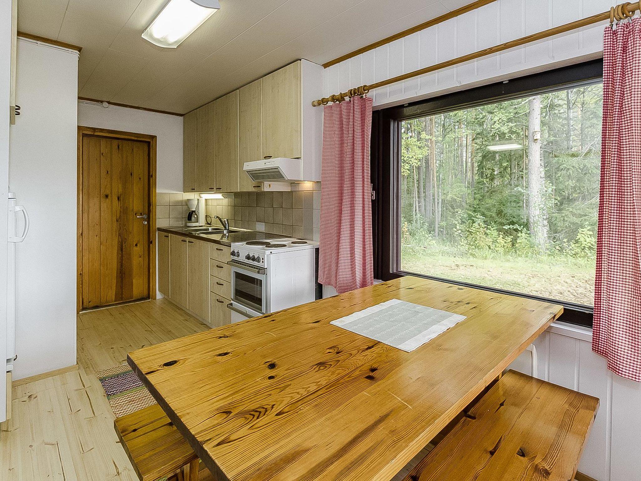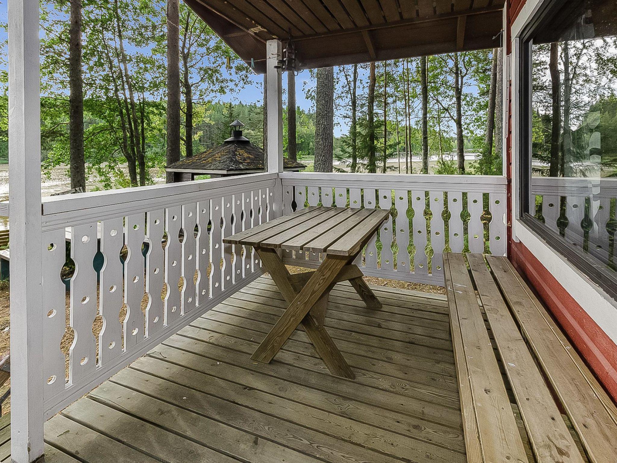 11 km to the south from Nurmes, lake Pielinen 20 m (871,2 km², length 100 km, width 20 km), gently deepening hard bottom, pier, own boat. Wooden cabin, built in 1990, renovated in 2002 and 2019. Living room with wooden sofa bed, kitchen with wooden sofa bed, bedroom with 2 beds, wood heated sauna, washroom, open porch.