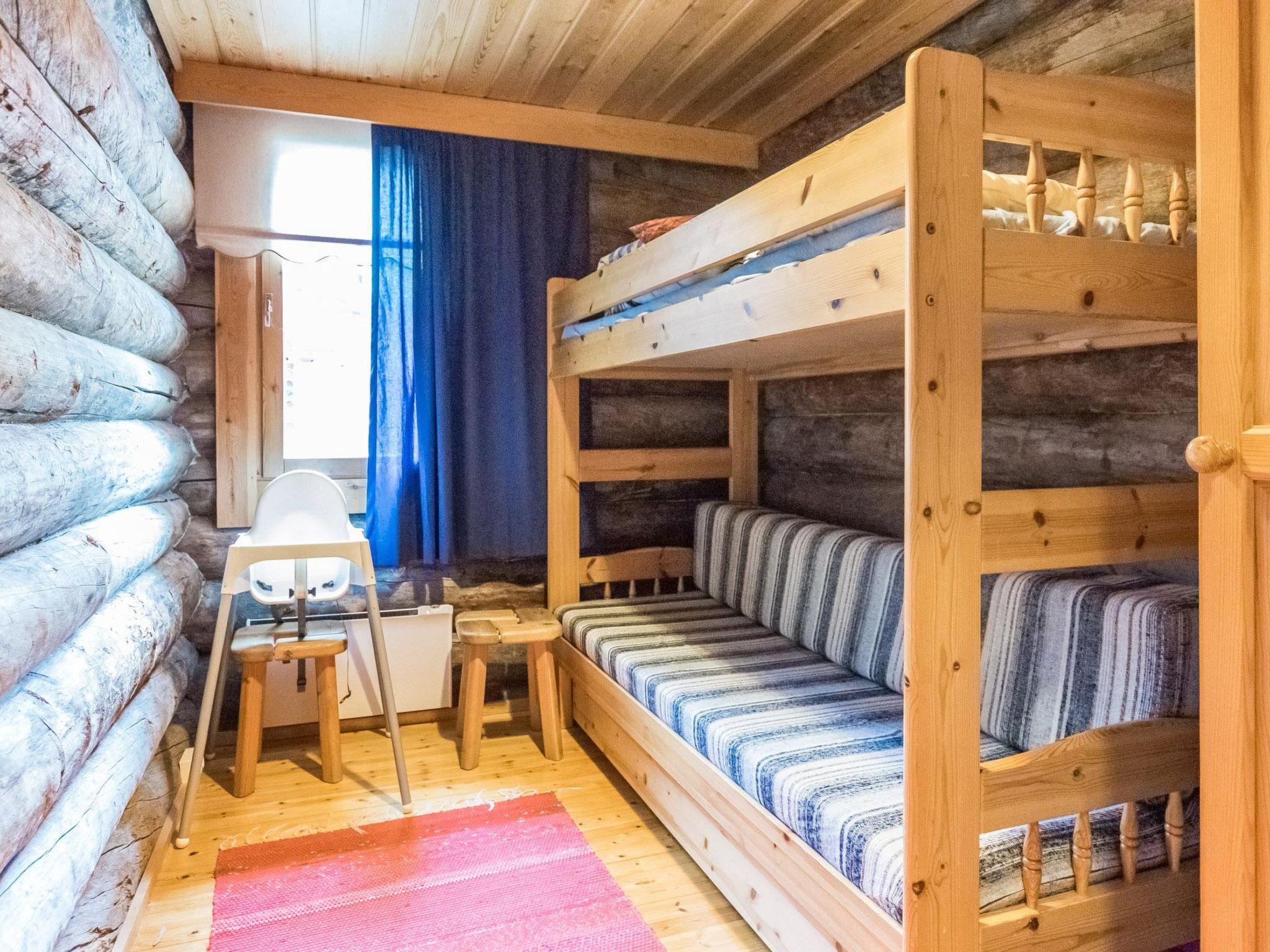 Centre of Pyhätunturi, 53 km north from Kemijärvi, half of the silver log semi-detached house built in 1985. Living room/kitchen, bedroom double bed, small bedroom bunk for 3 (convertible sofa/bed 160 cm wide and upper bed),ri toilet, washroom, sauna (electric stove), shallow sleeping loft (with steep stairs) with 2 mattresses.