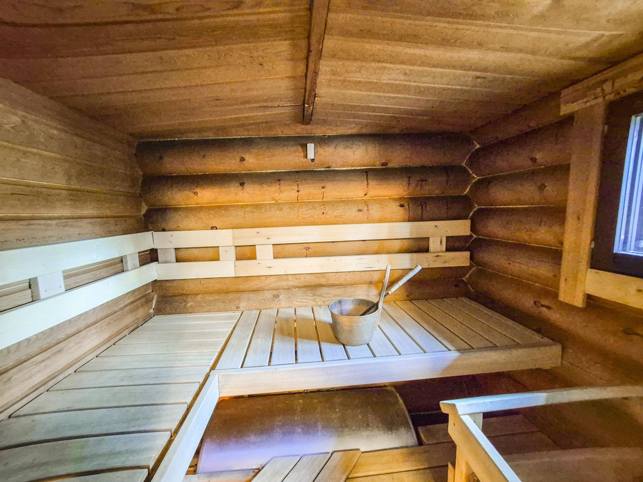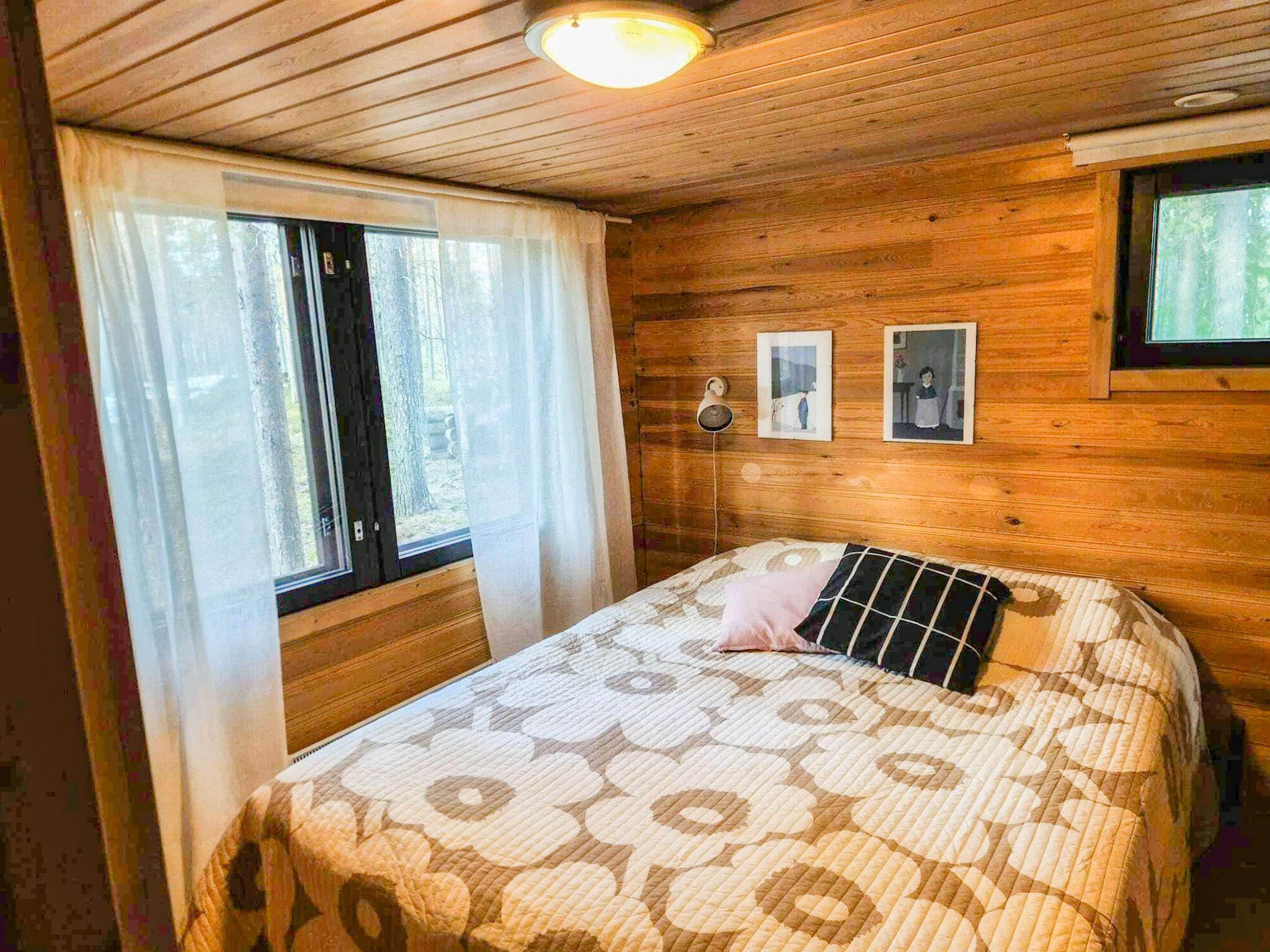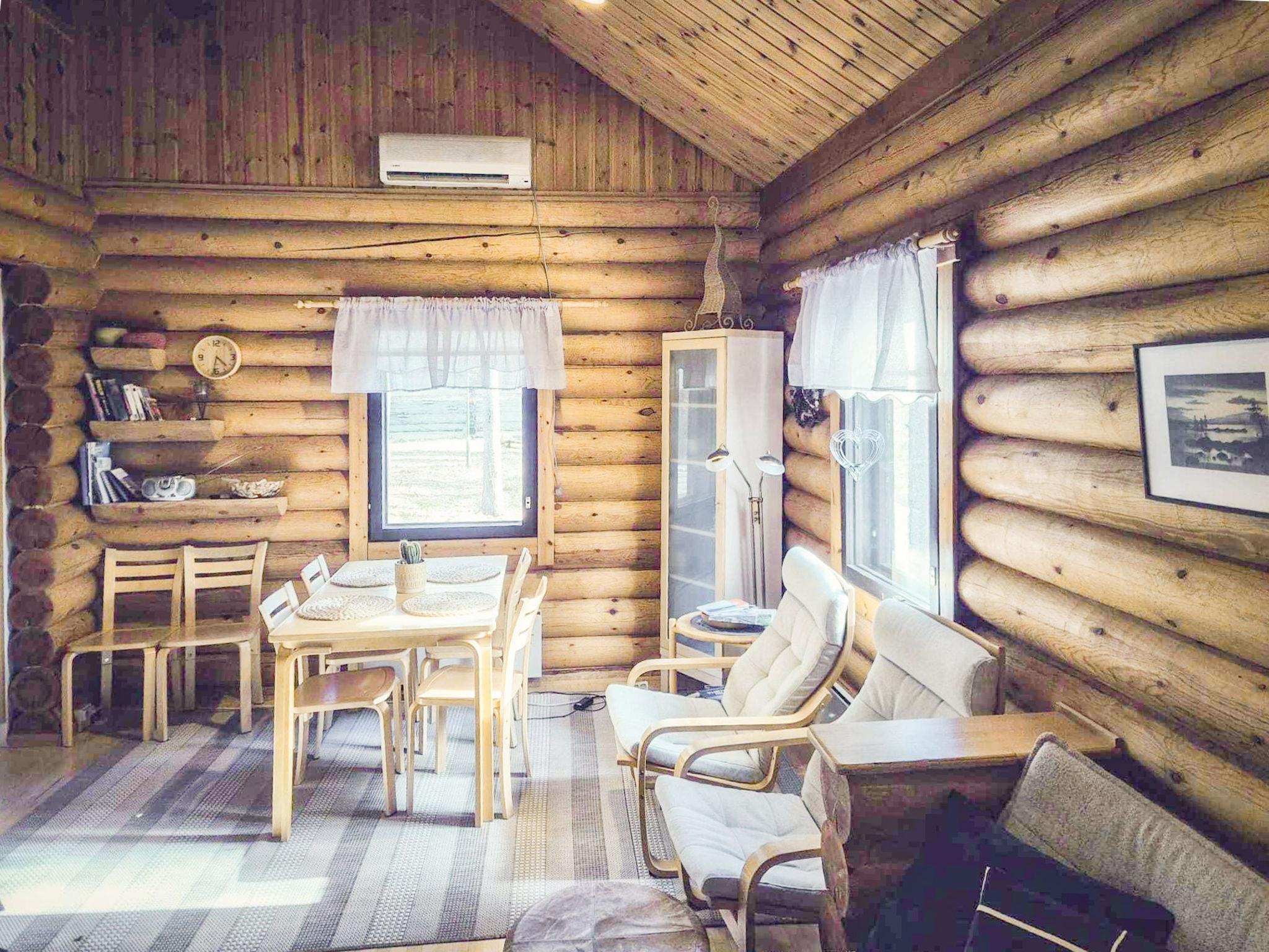 45 km north of Kemijärvi. Log cabin built in 1988. Kitchen alcove, living room, bedroom with double bed, low loft with two double beds, washroom, sauna (elec. stove), open porch.