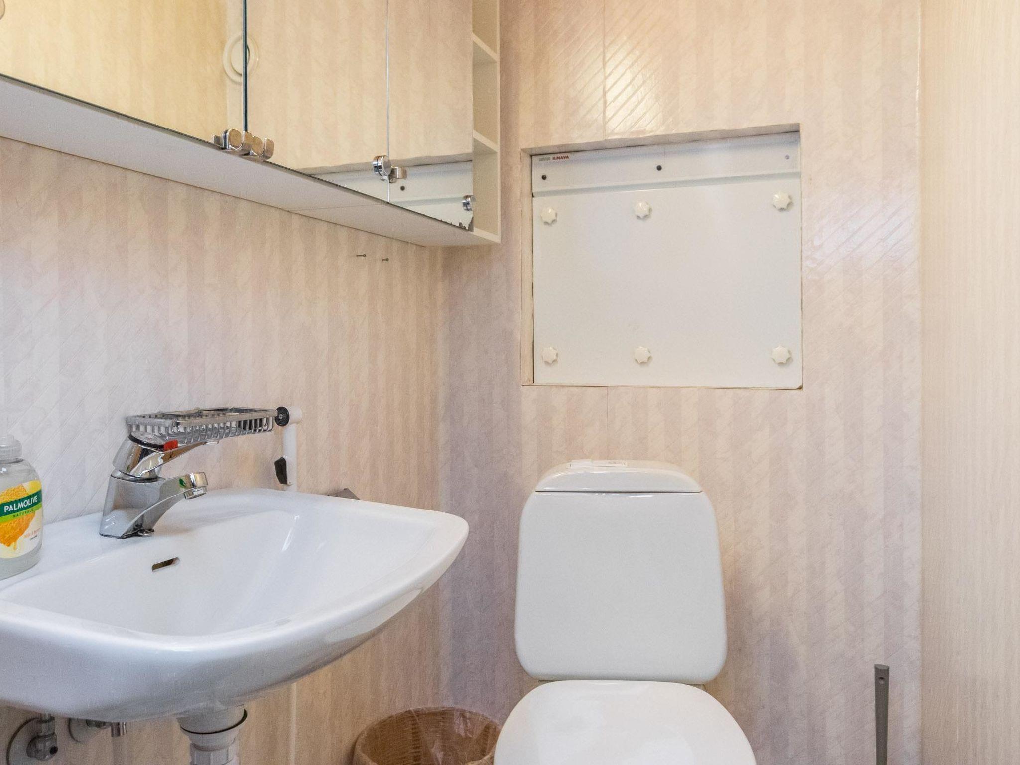 Row house apartment, built in 1991, with living room/ kitchen, small bedroom bunk bed (lower bed 120*200cm), sauna (electric stove) and washroom. Upstairs there is a sleeping loft with 2 beds and 2 sprung mattresses. There is a separate oven in the apartment.
