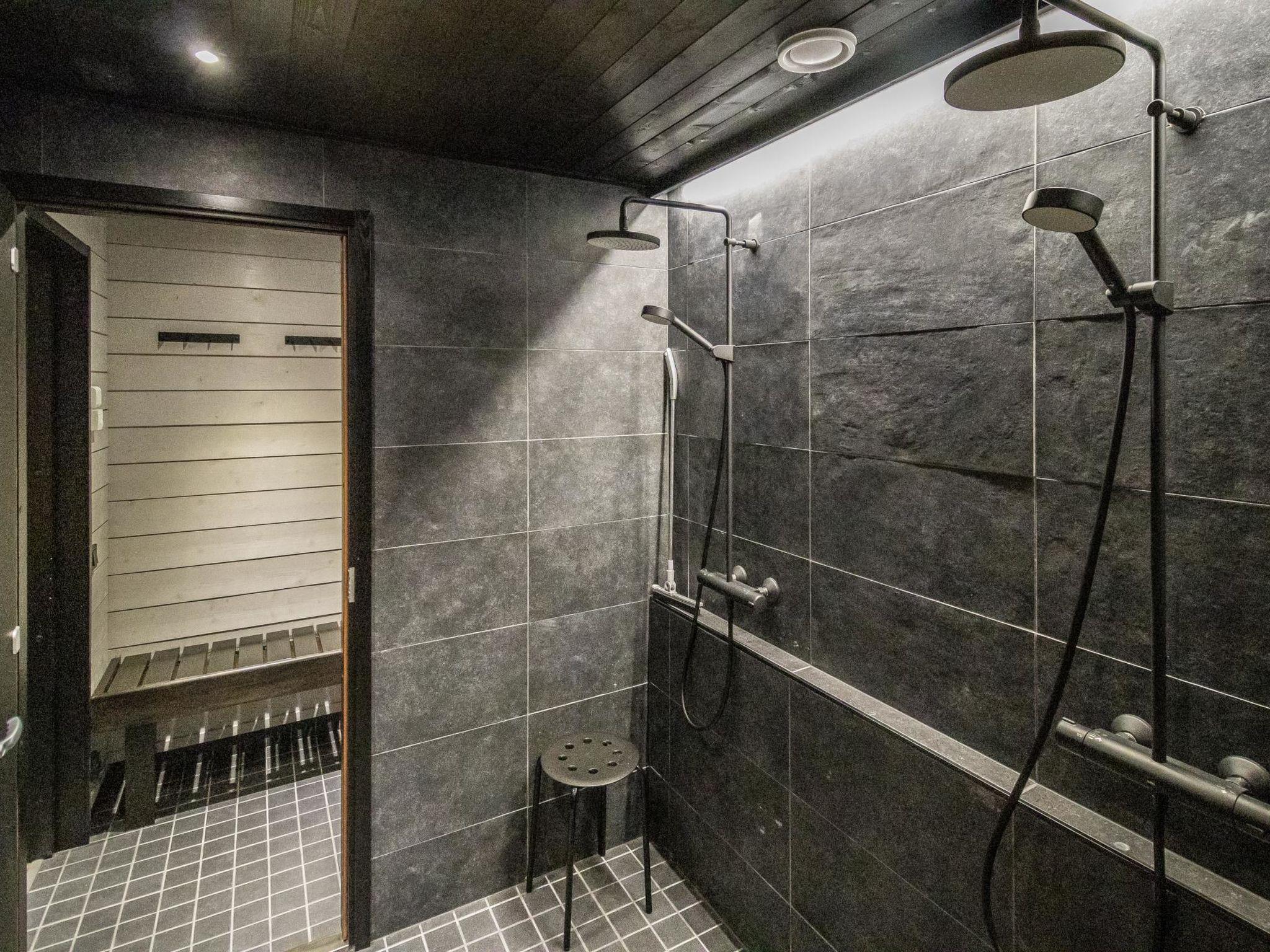 Large living room/kitchen with fireplace. 4 bedrooms, three of them have two box spring beds and the fourth has three box spring beds. Space for 9 people. The third bedroom has two additional beds suitable for children. The extra beds are pulled out from under the box spring beds. 2 WCs, sauna, washroom with two showers and dressing room. Large room for drying and storing clothes and sport equipment. Large 3 0m² terrace with terrace furniture. Air source heat pumps in both floors.