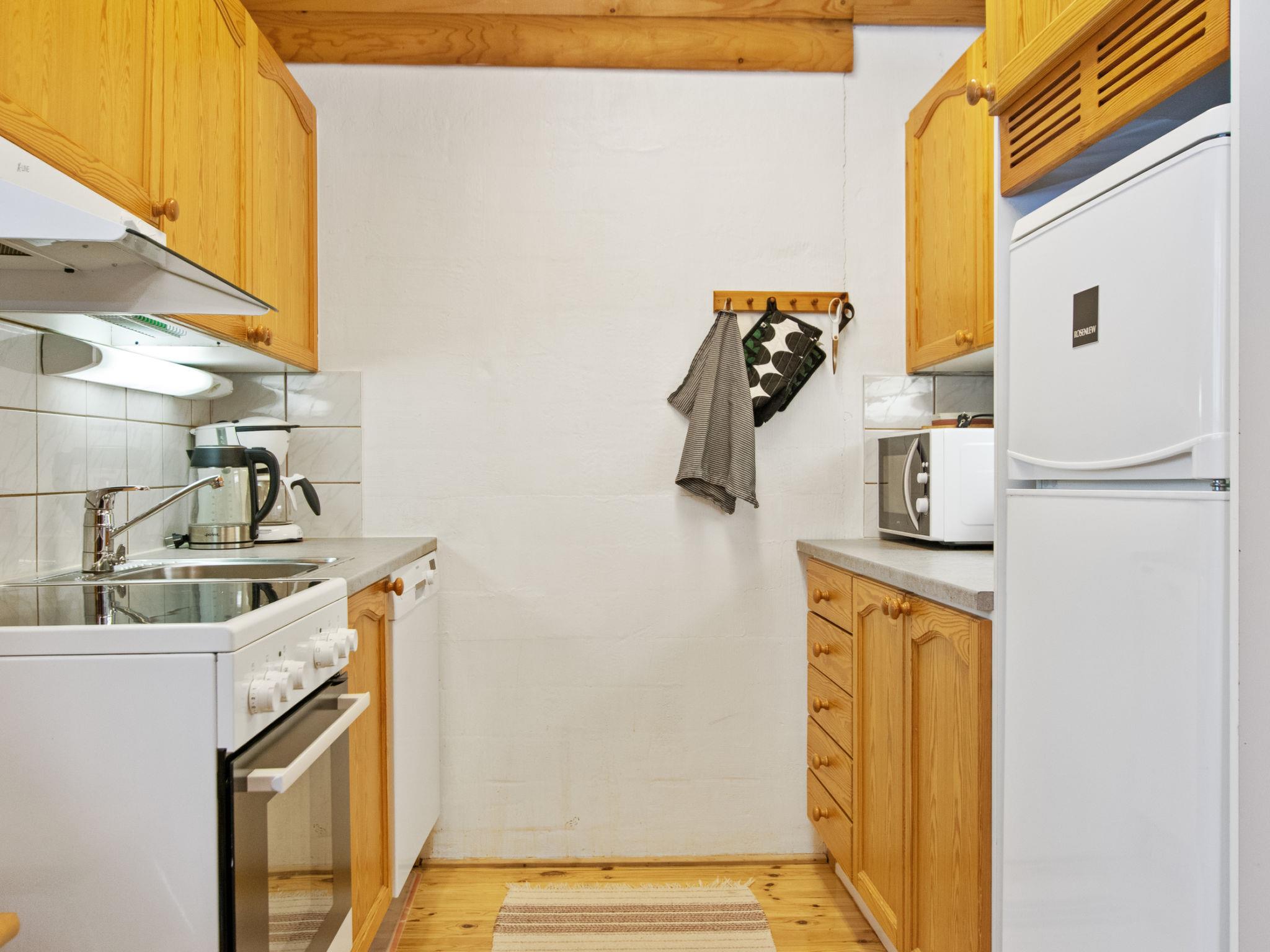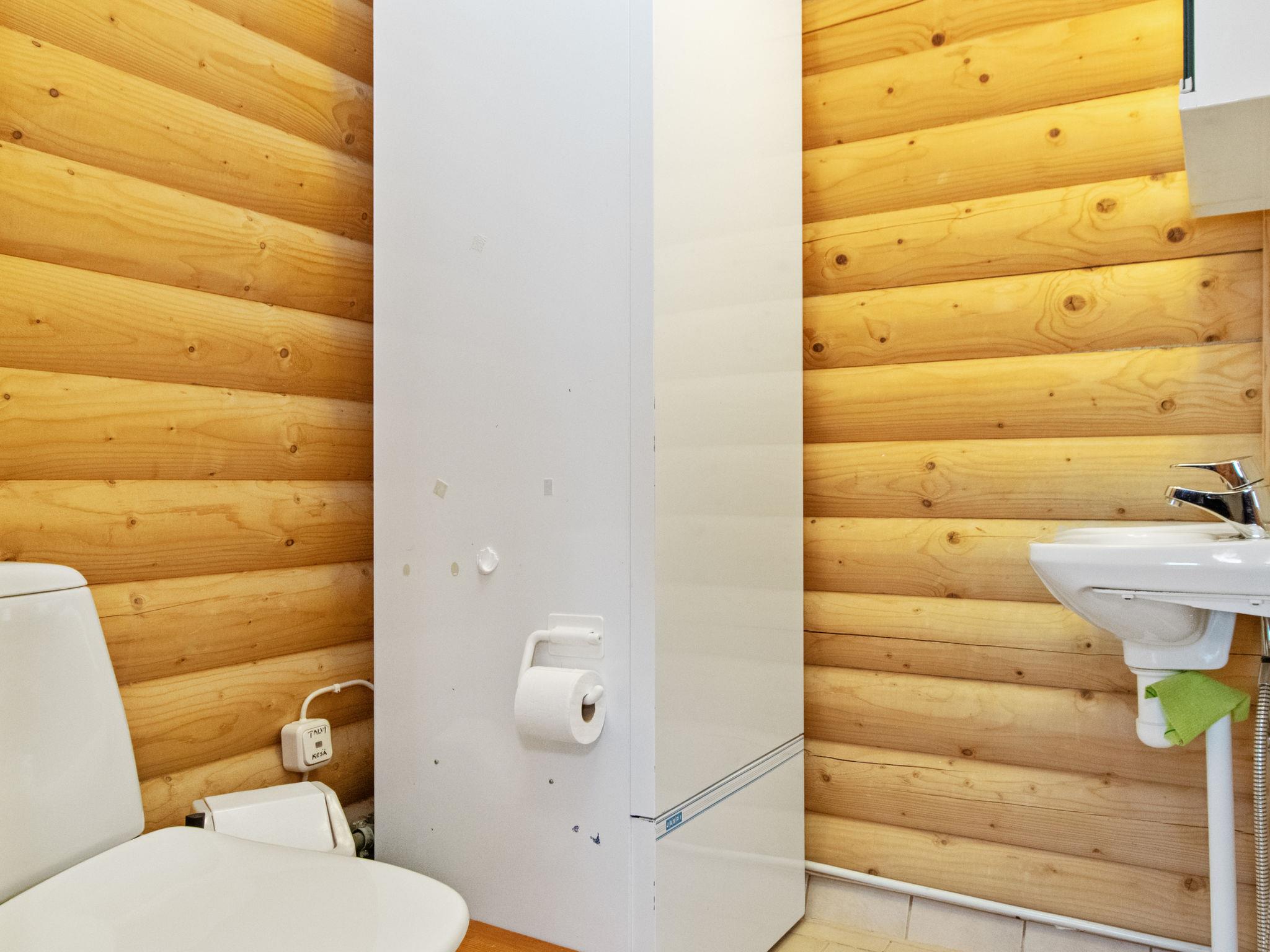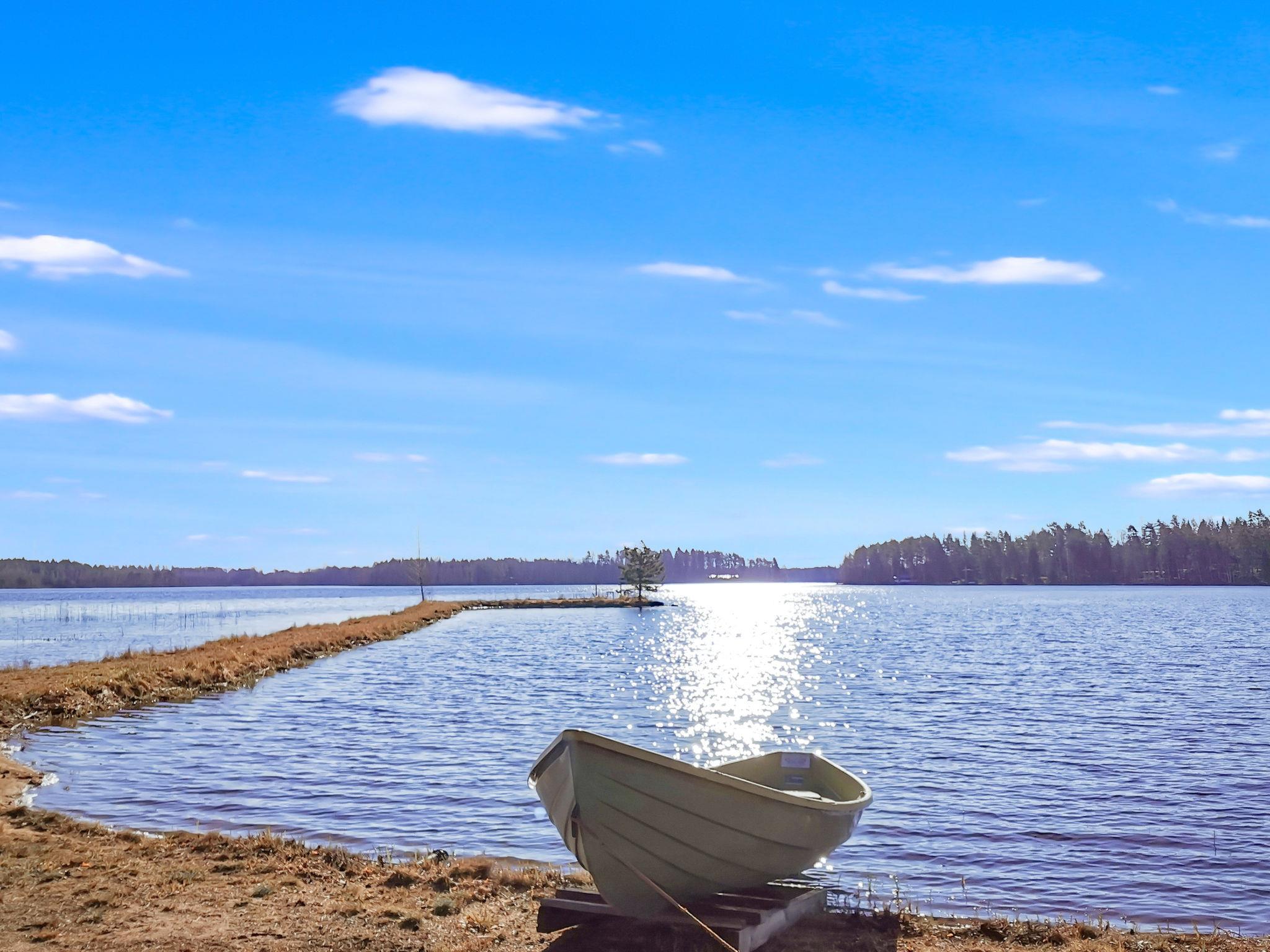 There are two bedrooms, each with a comfortable double bed, and the sofa bed in the living room provides additional space for two. The kitchen is fully equipped, and the wood-heated sauna invites you to relax at the end of the day. On the covered terrace, you can enjoy peaceful moments while admiring the lake view. An air source heat pump keeps the cabin's temperature pleasant year-round.
