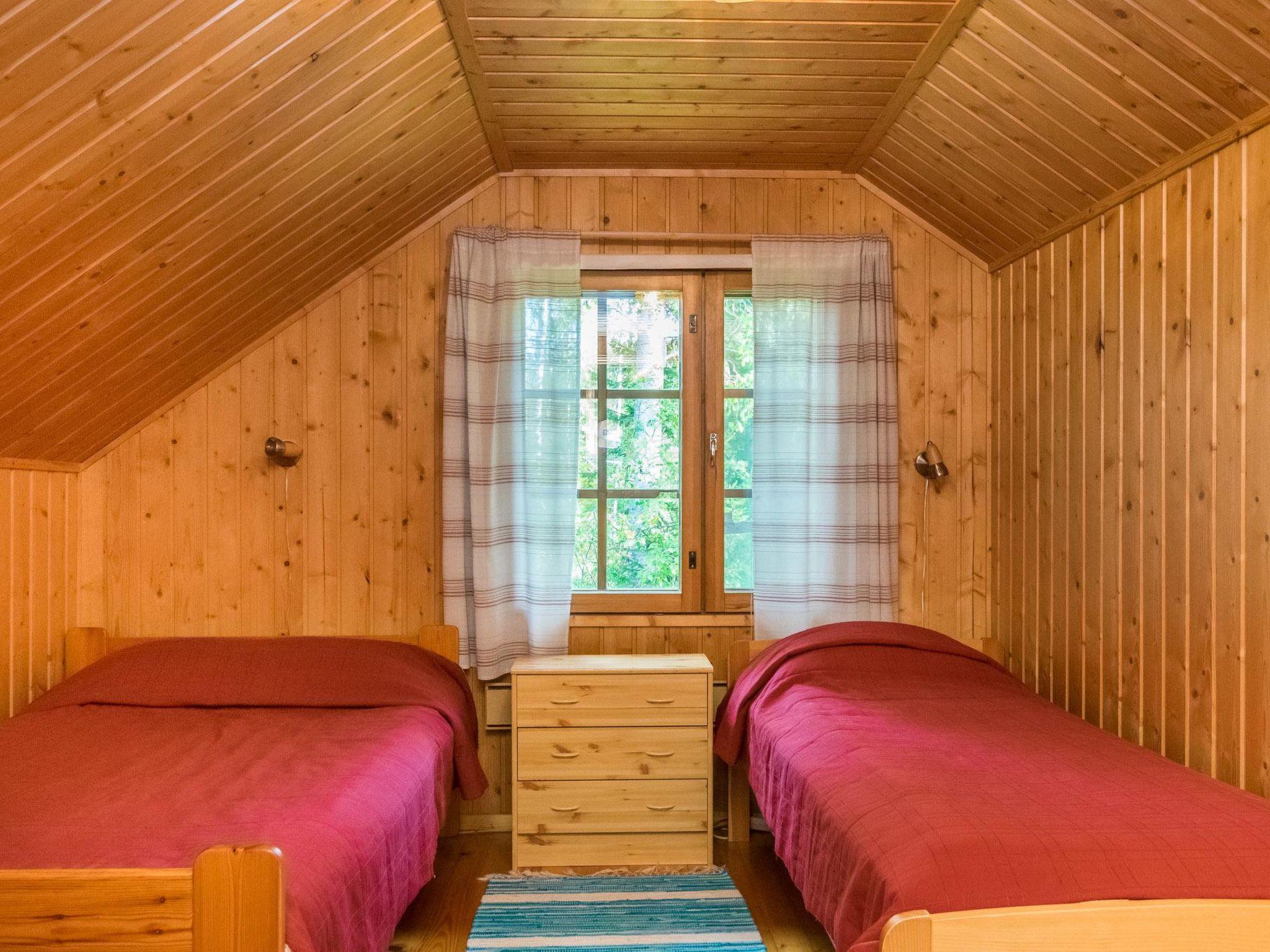 Log cabin 1993, living room/kitchen with convertible sofa, bedroom with 2 beds, sauna, dressing room/foyer, washing room (toilet), veranda.