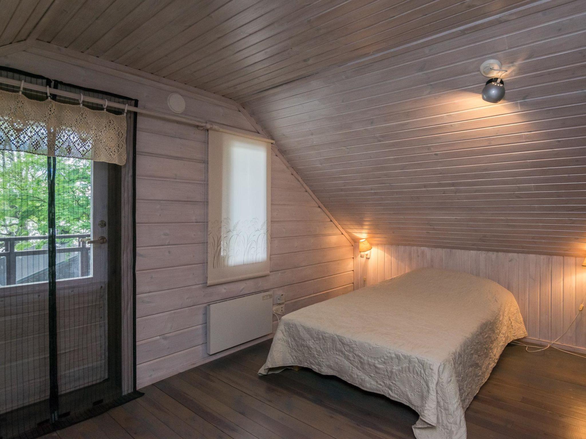 Log cottage 1992, renovated and extended in 2013. Kitchen, dining room, living room, bedroom with double bed, separate toilet, covered porch. Upstairs there are three beds (one 120 cm wide, two 80 cm wide) and a balcony. Air source heat pump.
