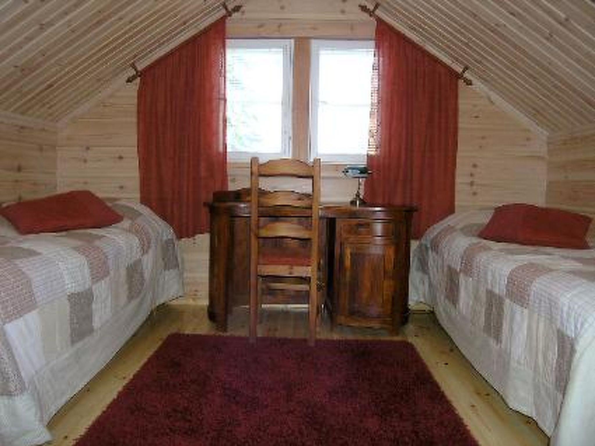 Log cottage 2010, kitchen, bedroom with double bed, bedroom with 2 beds, upstairs bedroom with 2 beds, hall (upstairs) with bed and double bed (120 cm), shower, electricsauna, 3 terraces.