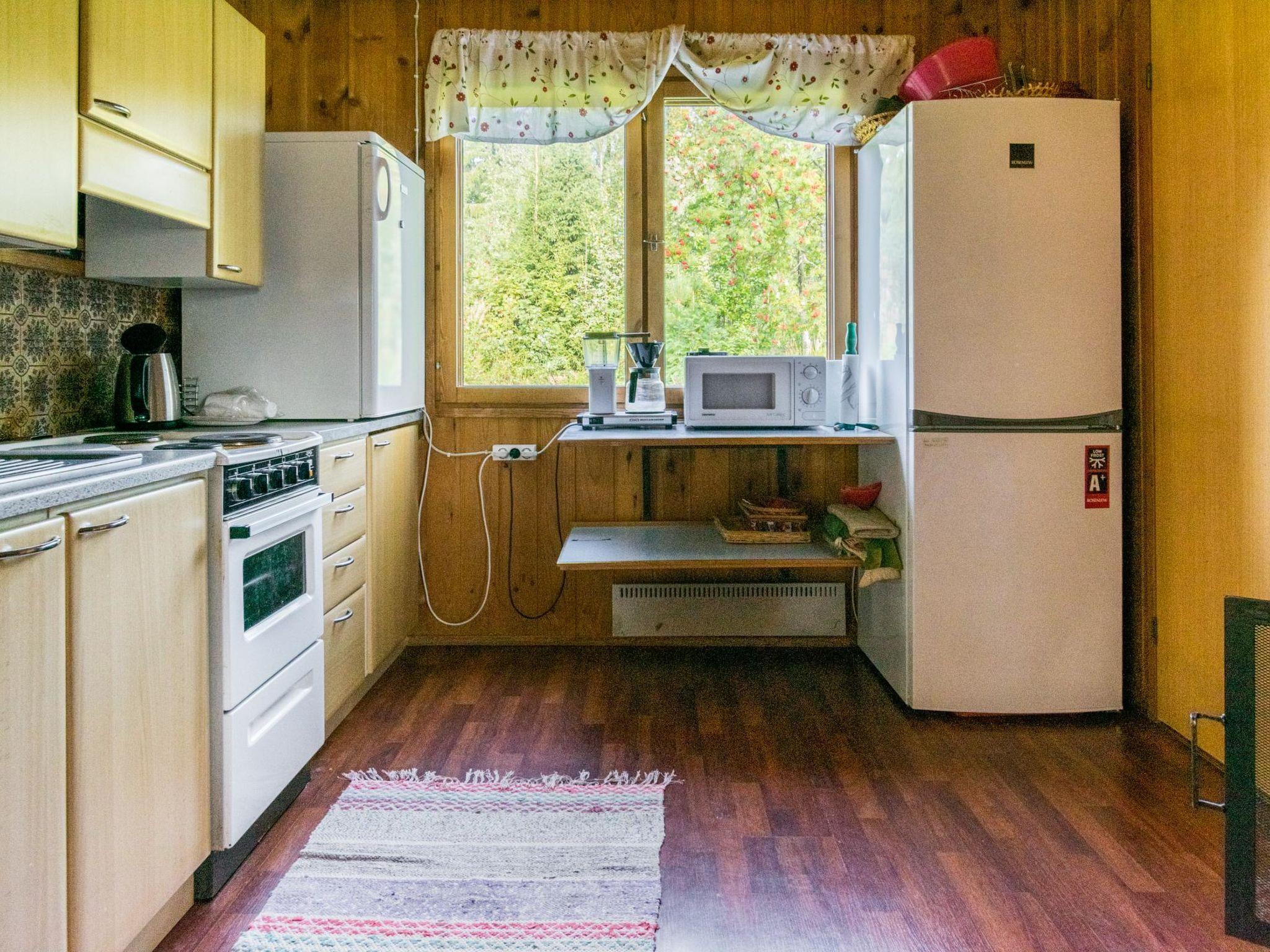76 km west of Kuopio, L.Nilakkajärvi 15 m, shallow, hard sanded clay bottom, own boat. Wooden cottage 1983, living room/kitchen extra bed for 2, 2 bedrooms each with 2 beds, washroom, sauna, open porch.