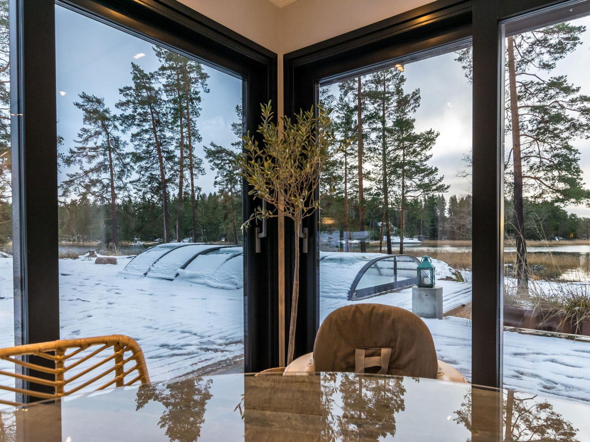 The living room has an atmospheric, modern circulation fireplace. You can enjoy great sea views in the wood-heated sauna and bathroom. Bathroom with rain shower, WC, washing machine and tumble dryer.