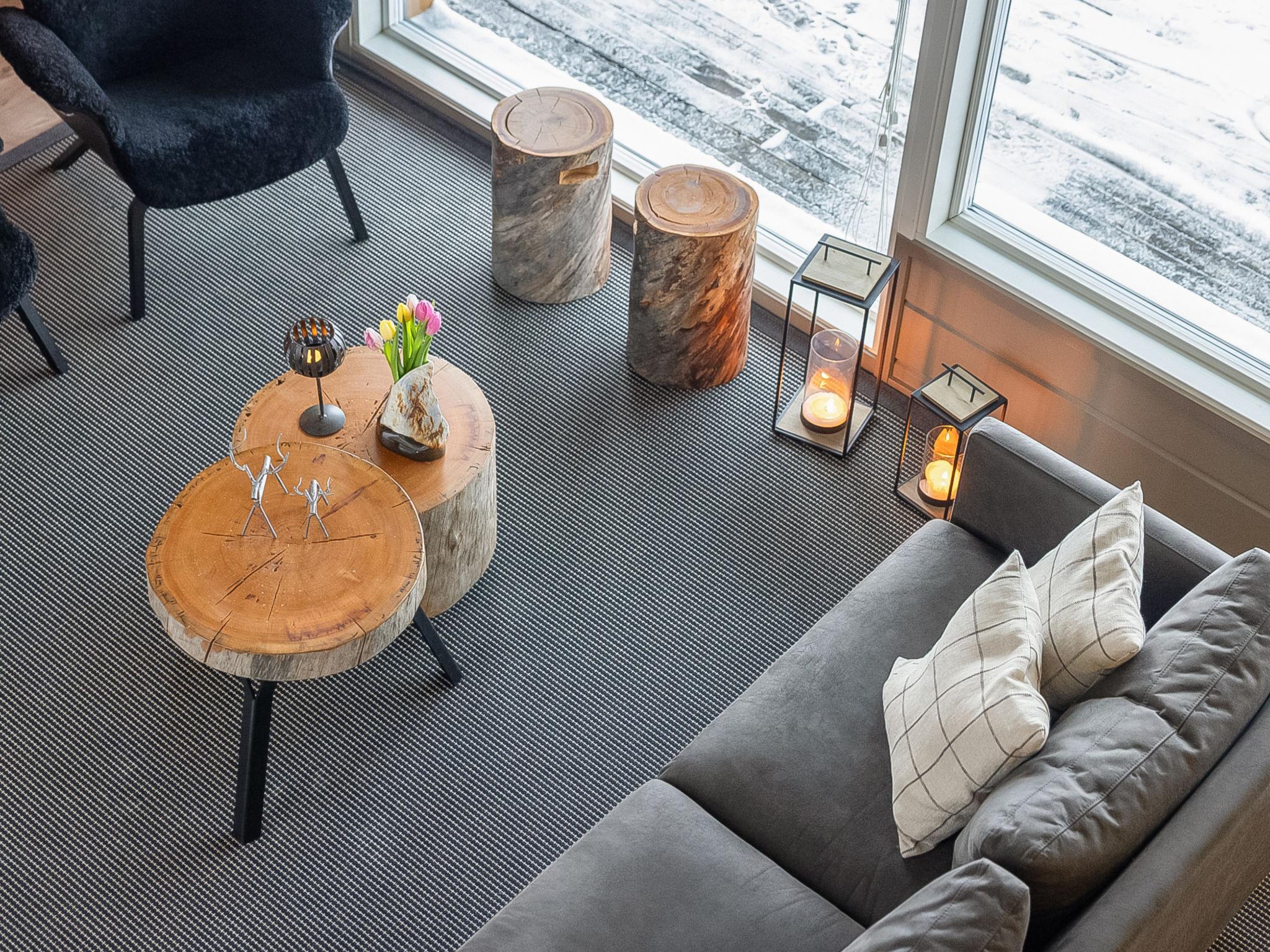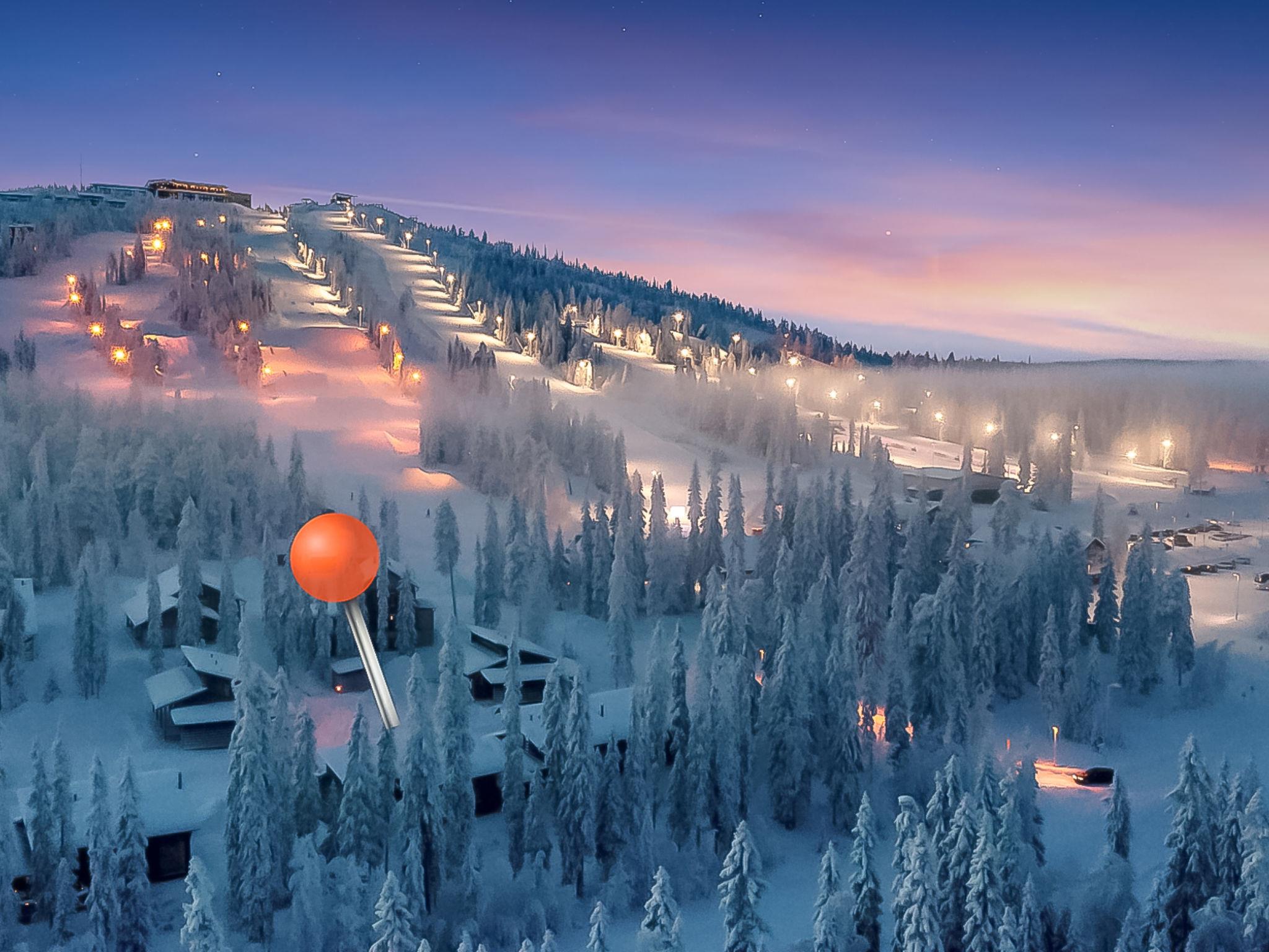 140 km to the northeast from Oulu, in Iso-Syöte tourist center. Ski lifts and ski slopes are near (150 m).