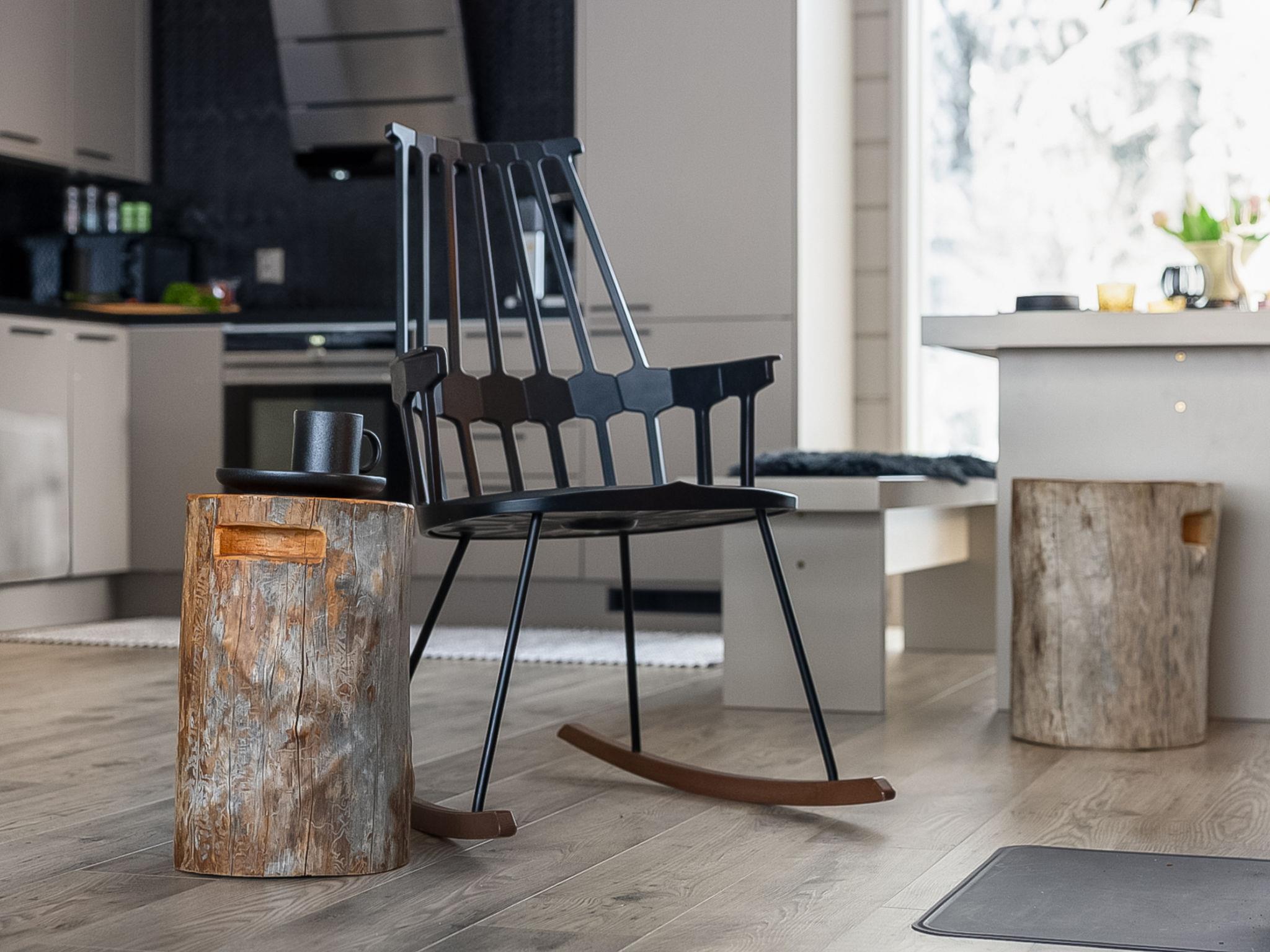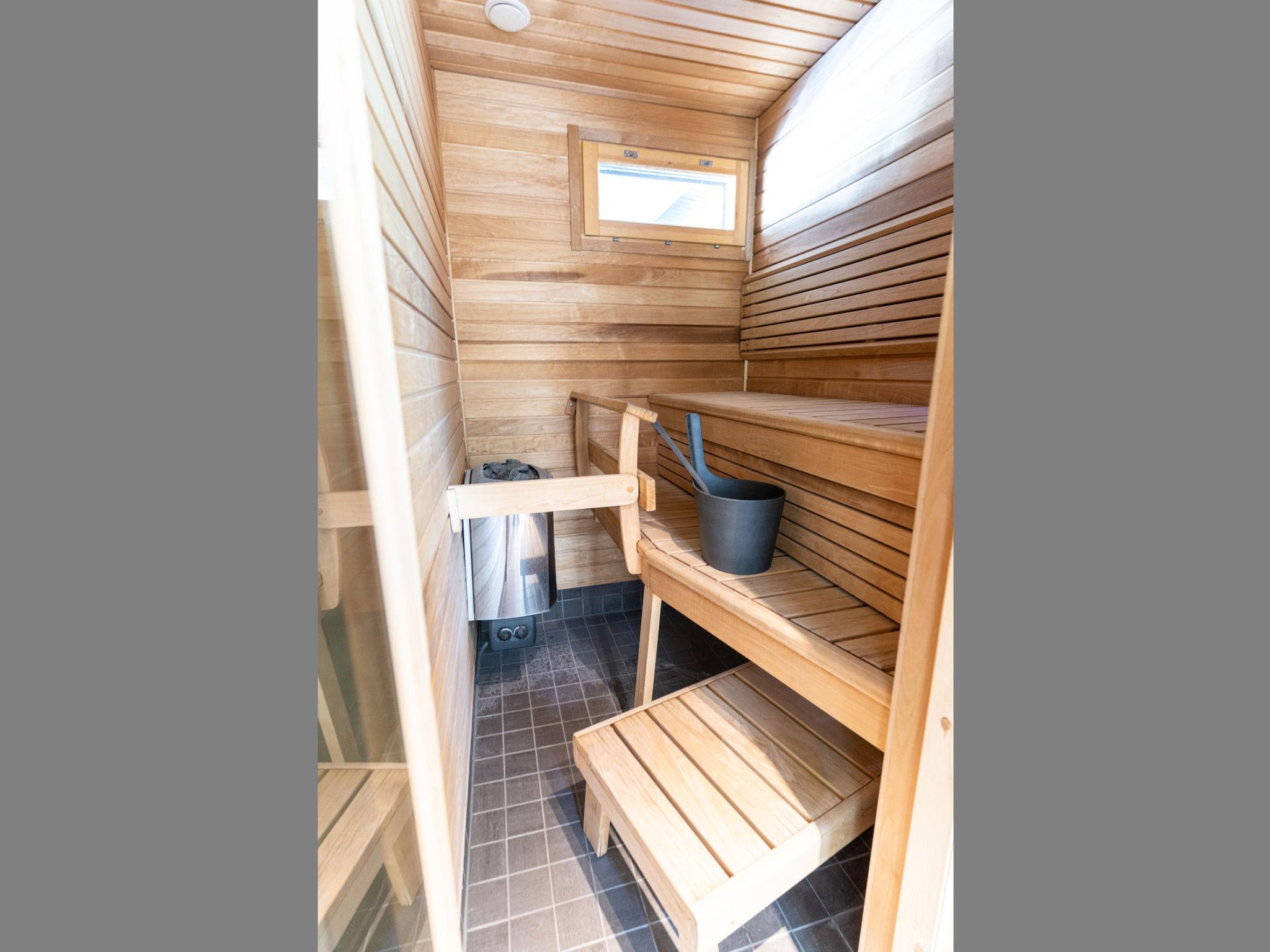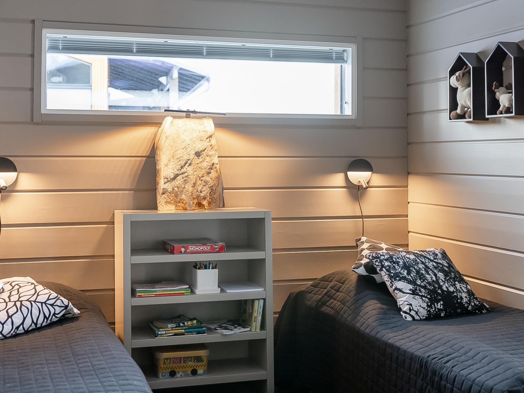 Wooden villa, built in 2007, surfaces and kitchen are renovated in 2020. Living room/kitchen, three bedrooms, one with double bed and two others with two single beds in each. Loft with 2 beds and sofa bed, sauna, washroom, separate WC and covered terrace. Playroom for children in the loft. Car shelter.