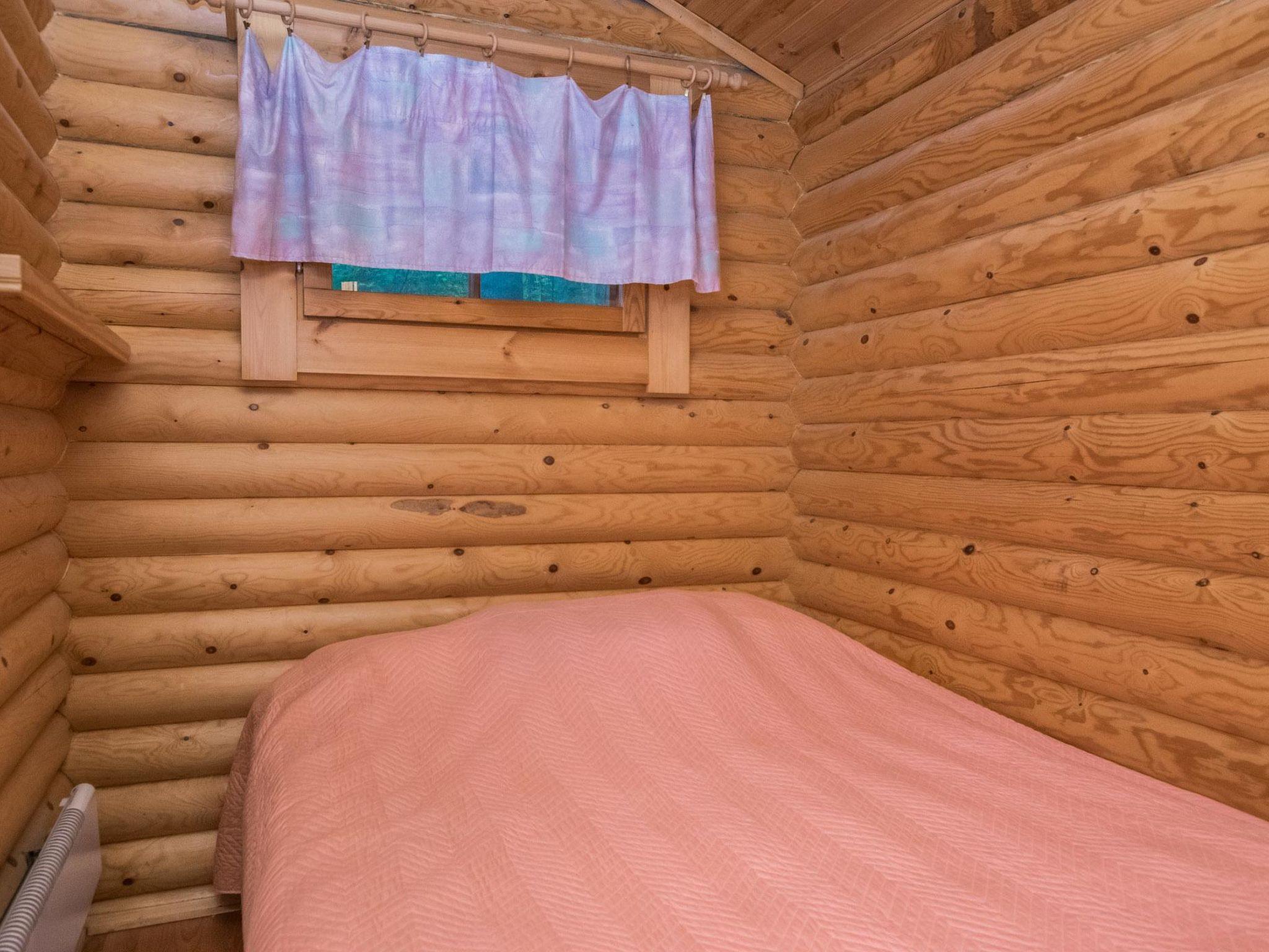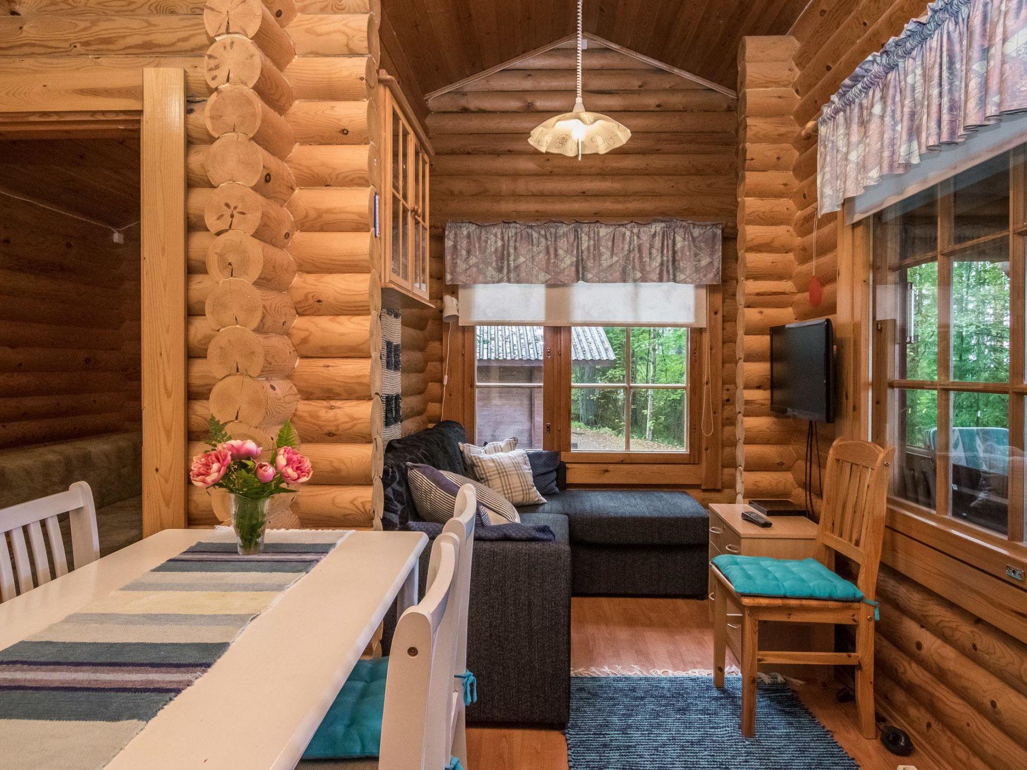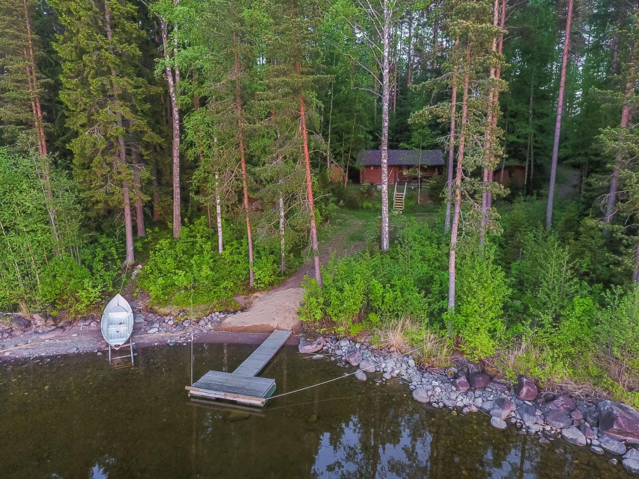 56 km south of Savonlinna. Lake Saimaa/Pihlajavesi 20 m, shallow water, firm sand/gravel bottom. Own boat. Log cabin 1988, kitchen/living room, sleeping alcove with 1 bed (width 120 cm), sleeping alcove with convertible sofa, sauna (electric sauna stove), washroom, foyer, open veranda.