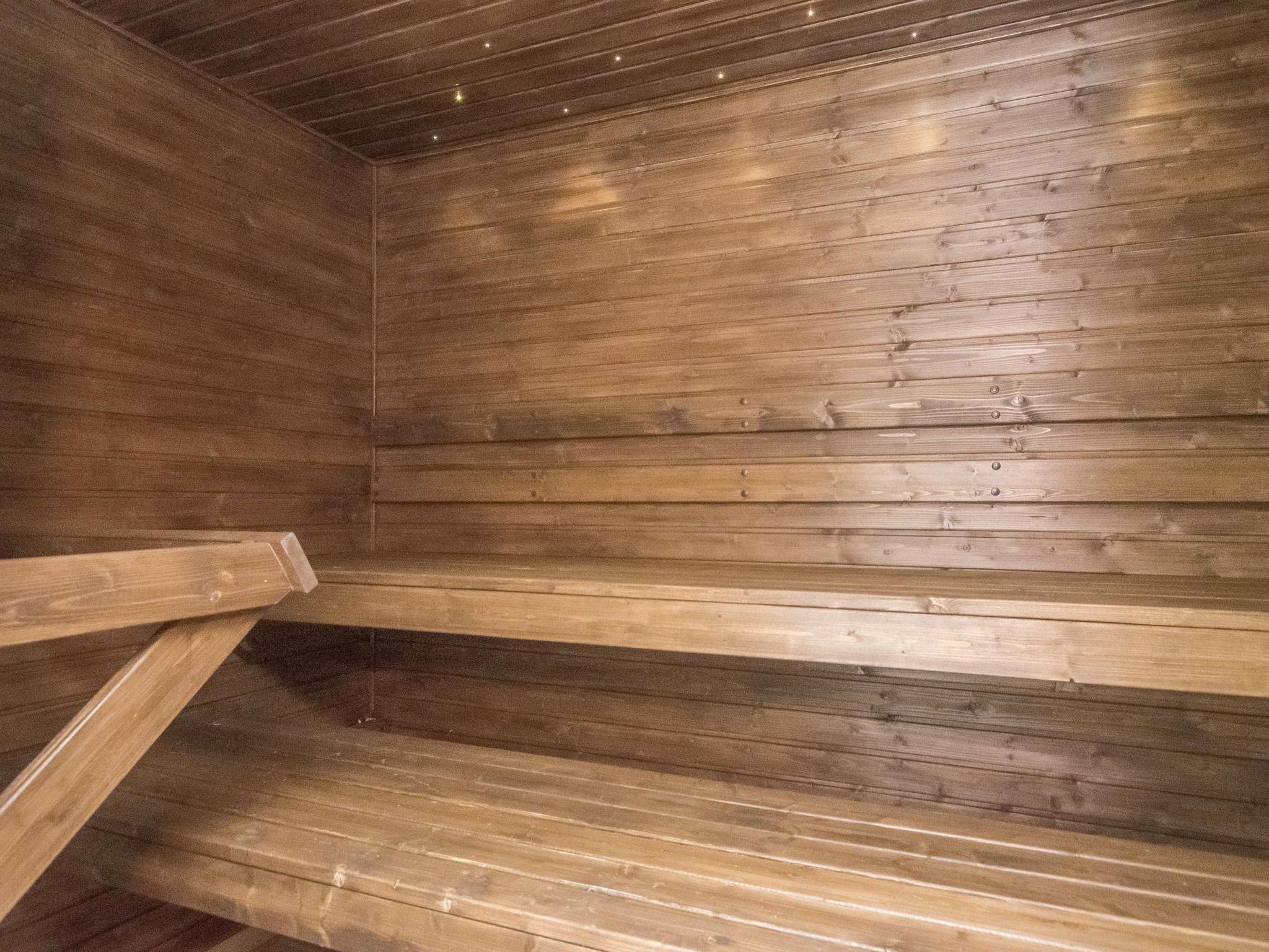 Sauna facilities shared by nine apartments. Sauna facilities includes dressing room, washroom, electric sauna stove, cooling terrace and washing machine. Sauna sessions (included in the price) can be booked at the reception.