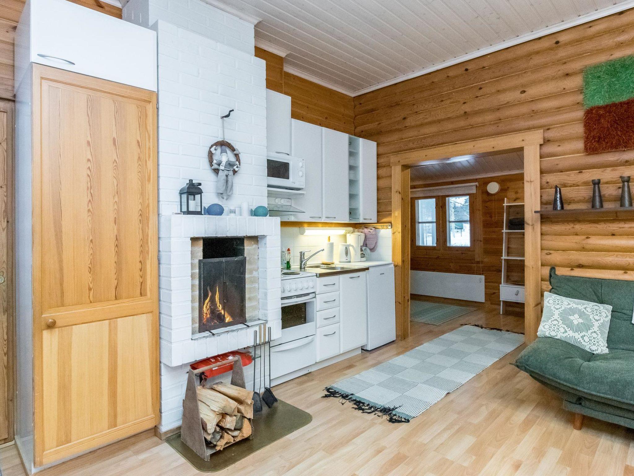Situated 27 km to the east from Savonlinna, Saimaa 200 m, shared beaches 300 m away . Round log apartment in a row house, built in 1982, features a living room/kitchen, a sleeping alcove with two beds and a bunk bed, a bathroom with a shower and WC, an electric sauna, and a covered porch.