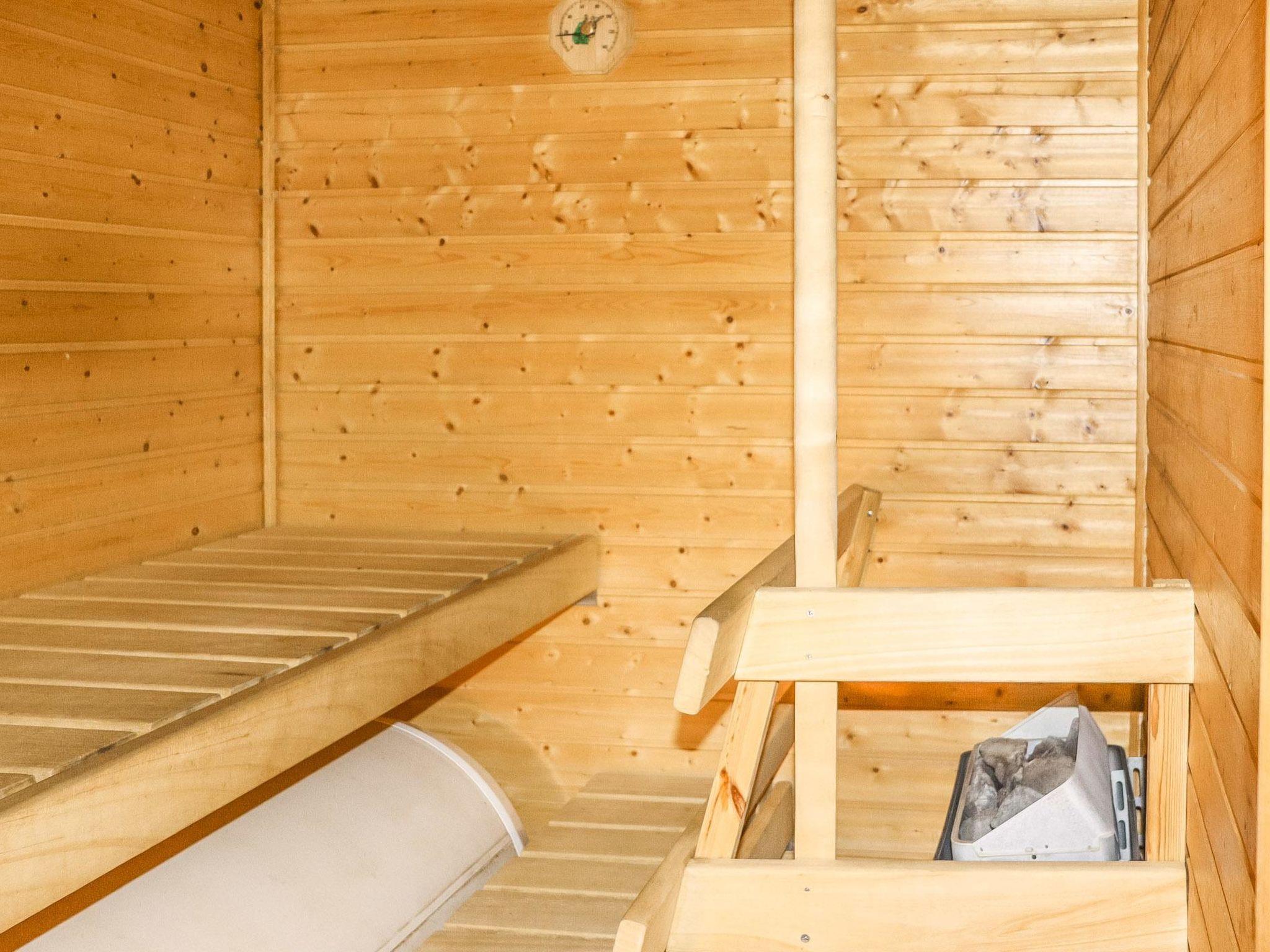 Living room with a sofa bed and a kitchenette, sauna with adjoining dressing room/WC, 2x90 cm bed, 2x80 cm bed and sofa bed, ordinary mattresses in the attic.