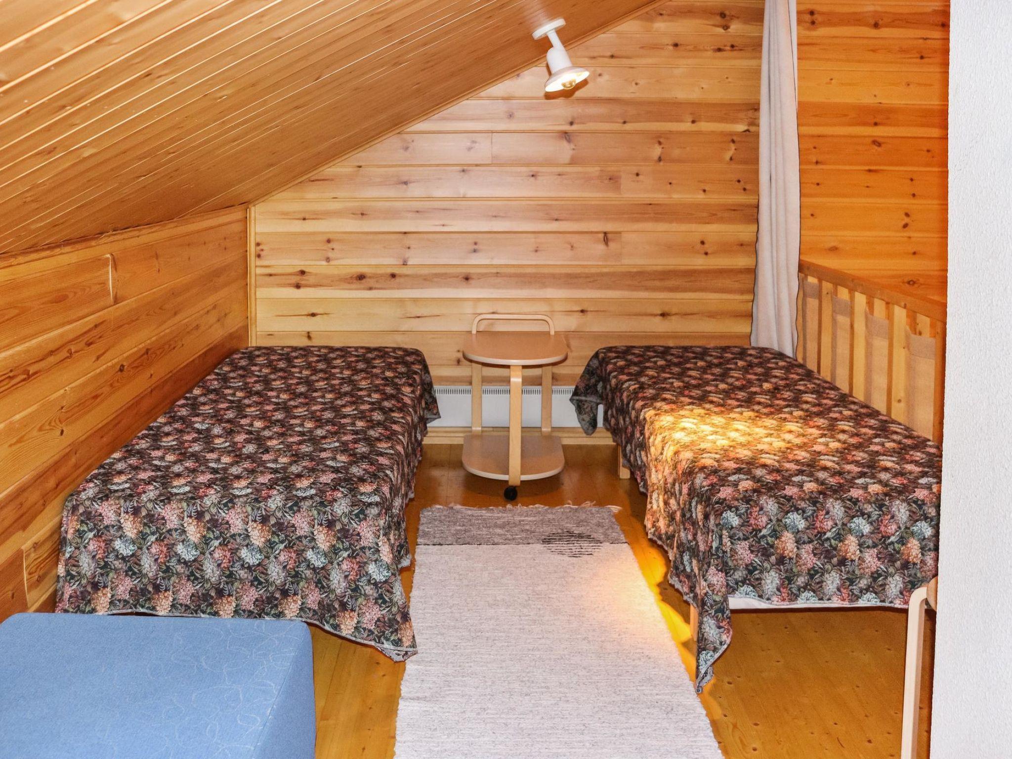 Km / 1.24 mi from Paljakka ski centre. Distance to Lake Rakennusjärvi 500 m / 547 yds (1 km / 0.62 mi long and 200 m / 219 yds wide). Semi-detached chalet of massive logs, built in 1991. Living room with a sofa bed and kitchenette, bedroom with 2x90cm bed, sauna with adjoining dressing room/WC, a sofa bed, 4 beds in the attic.