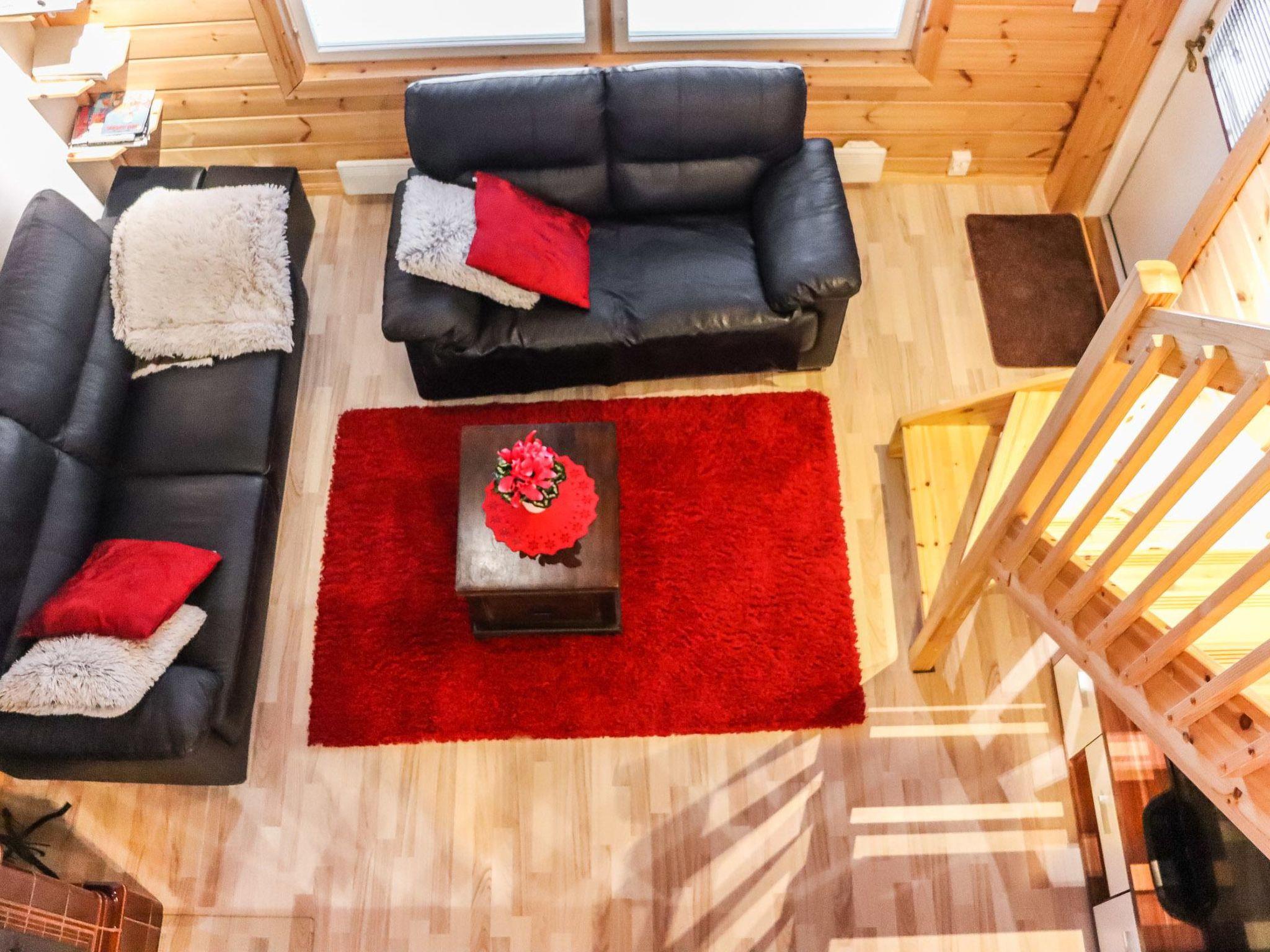 Living room and kitchenette, downstairs 2 bedrooms with double-beds. Sauna, 2 toilets. There are 4 beds on the upstairs. Wifi internet. Firewood includes in price.