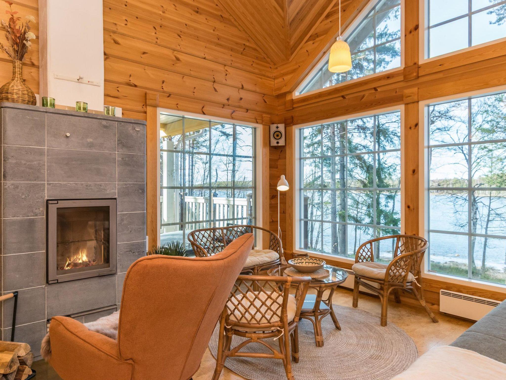 Villa Niemelänranta is a cozy rental cabin on Lake Saimaa, located along the boat route, making it a great spot to watch passing boats from the shore. This log cabin is situated in Niinisaari, Puumala, accessible year-round via a continuously operating ferry.